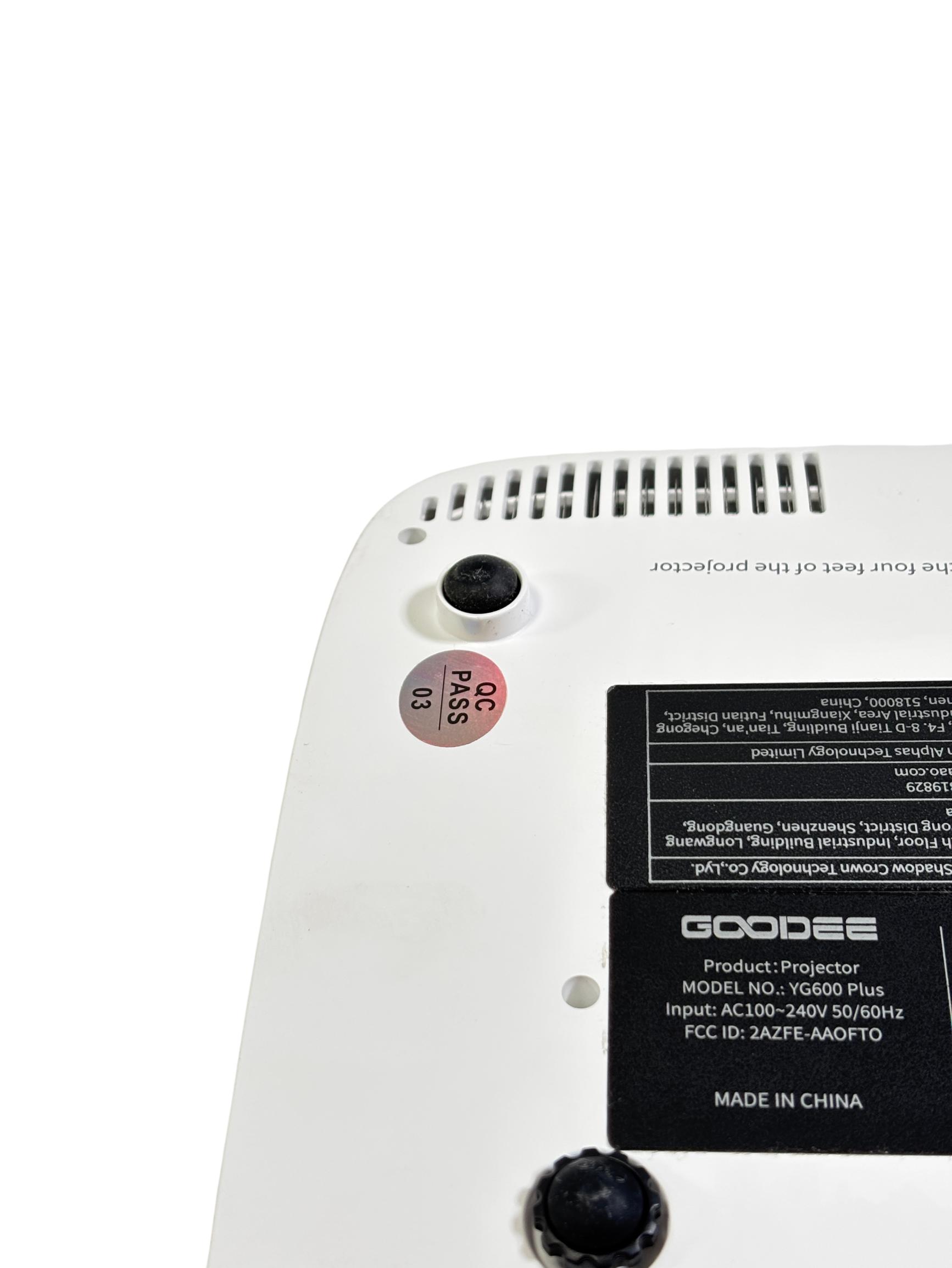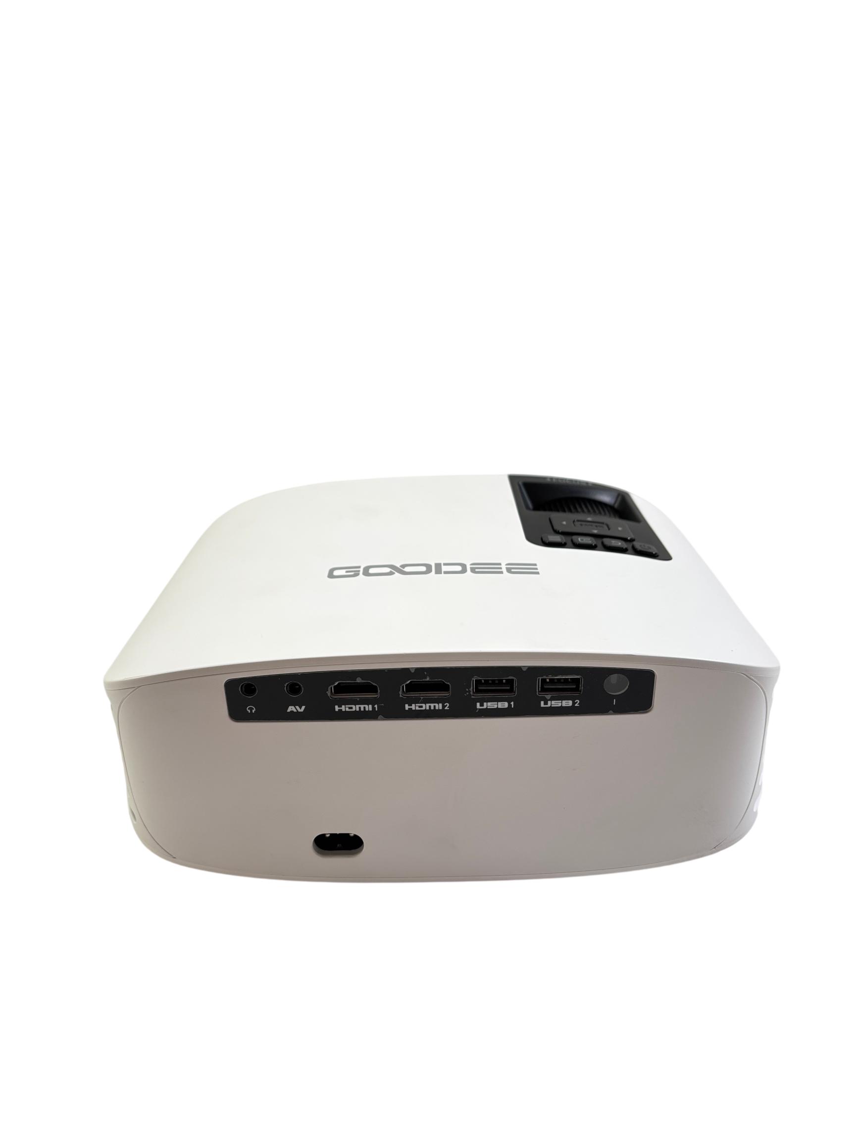 GooDee YG600 Plus 4K Smart Projector with 5G WiFi and Bluetooth delivers vibrant 4K resolution with versatile connectivity options including AV, HDMI, and USB ports. This sleek white projector features precise focus adjustment and supports wireless streaming via 5G WiFi and Bluetooth, making it ideal for home entertainment and presentations.