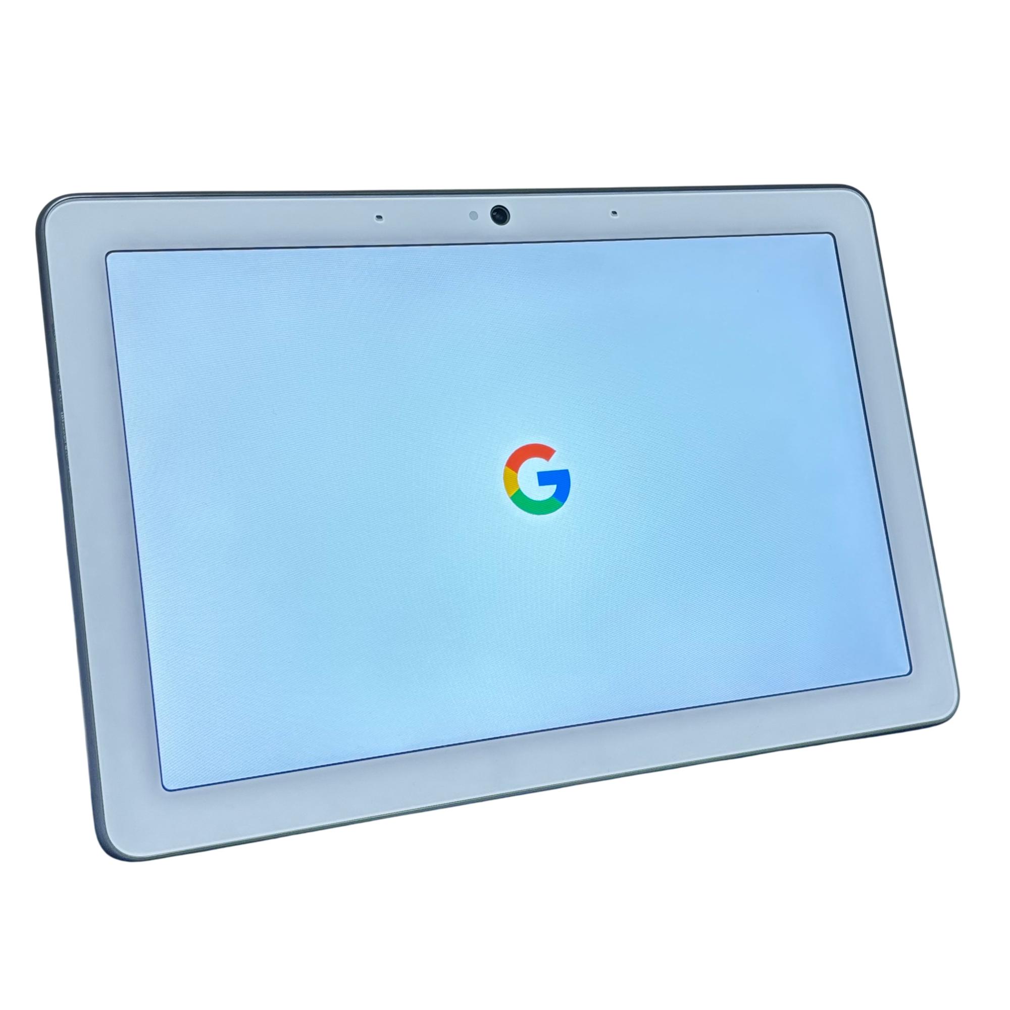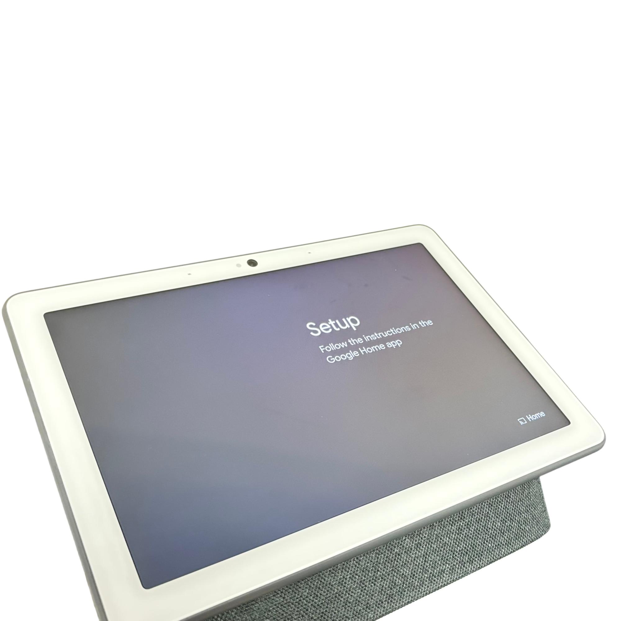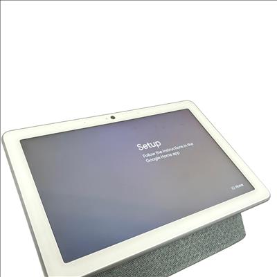 Google Nest Hub Max Smart Display (H2A, White) features a sleek white design with a large touchscreen that integrates seamlessly into any smart home setup.