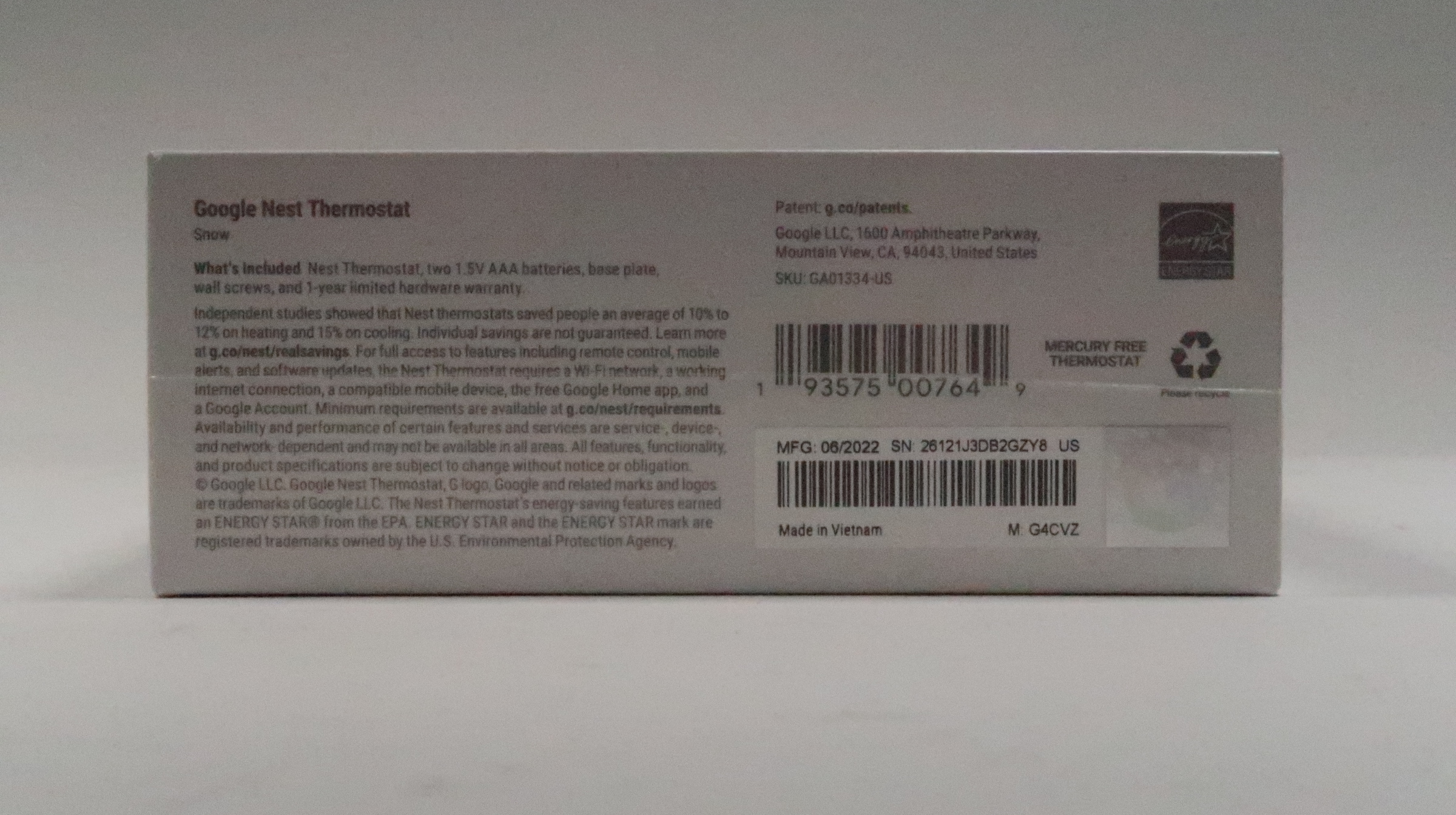 The Nest Thermostat is designed with recycled materials to reduce waste. Its plastic parts contain 49% recycled post-consumer plastic.