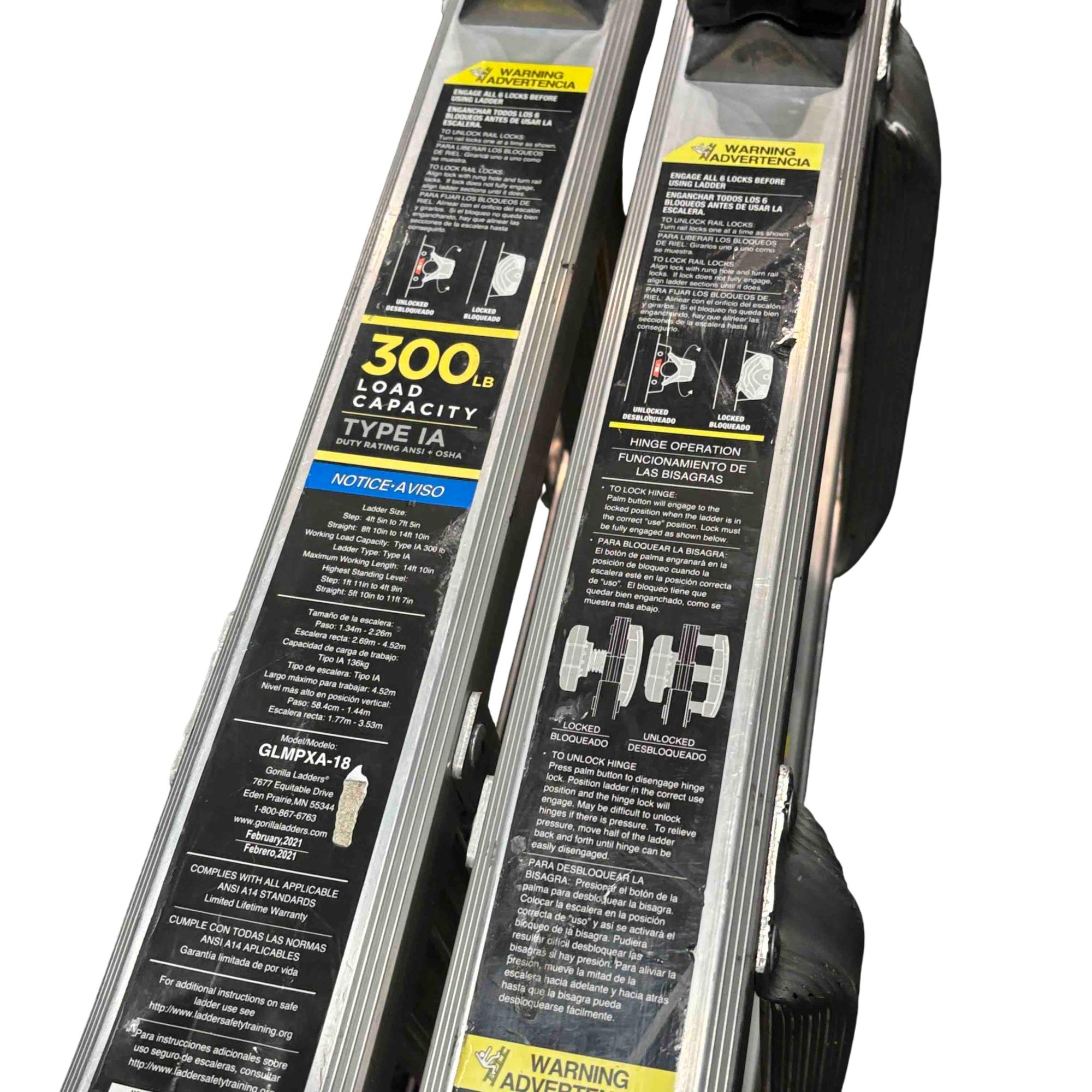*This Gorilla Ladders GLMPXA-18 Type IA 300-lb Load Ladder is available for Local Pick-up Only at our Coon Rapids, Minnesota location. Previously owned. A moderate to heavy amount of scratches and scuff marks are on the Gorilla Ladders GLMPXA-18 Type IA 300-lb Load Ladder from past use and handling. See photos for details; photos provided show the actual items for purchase.