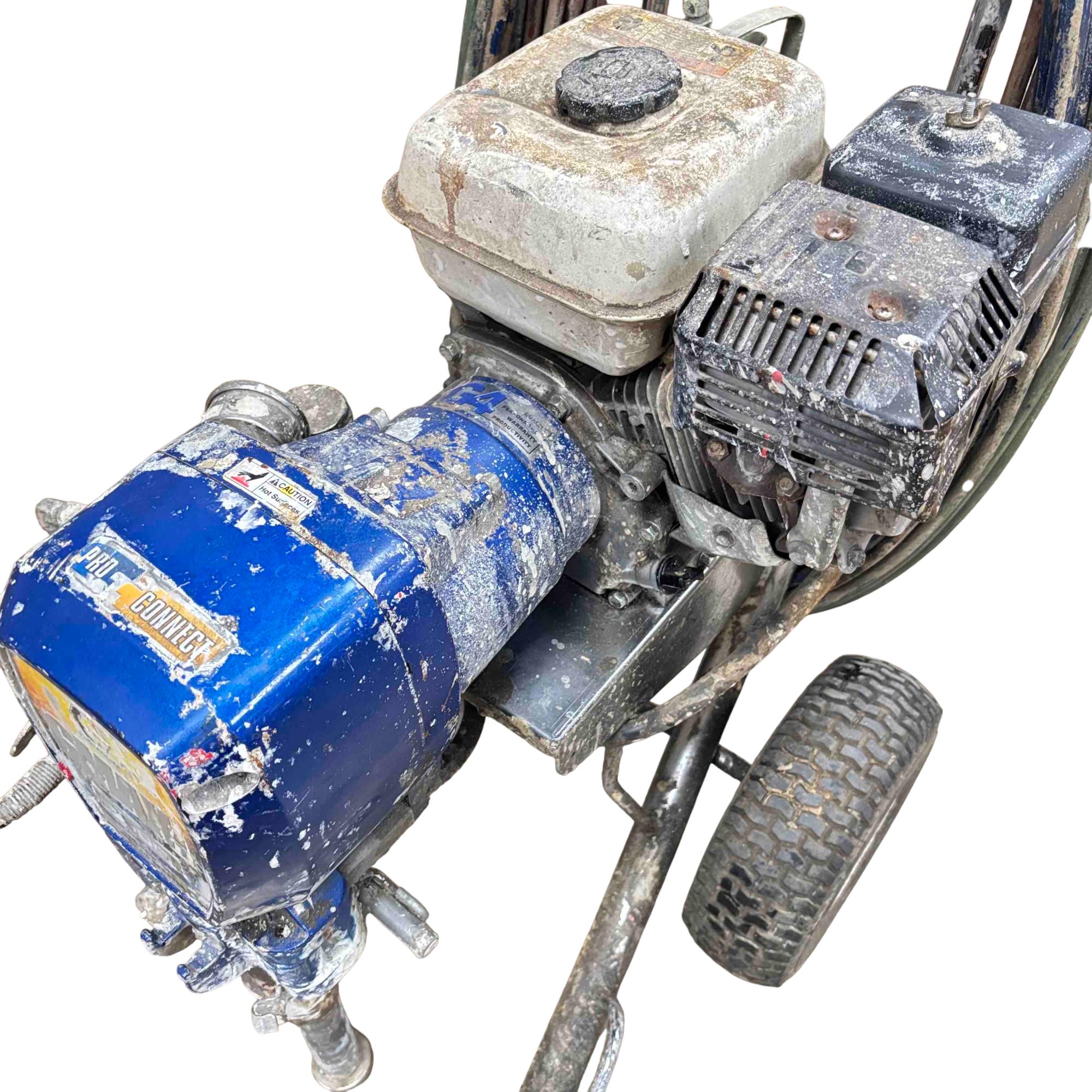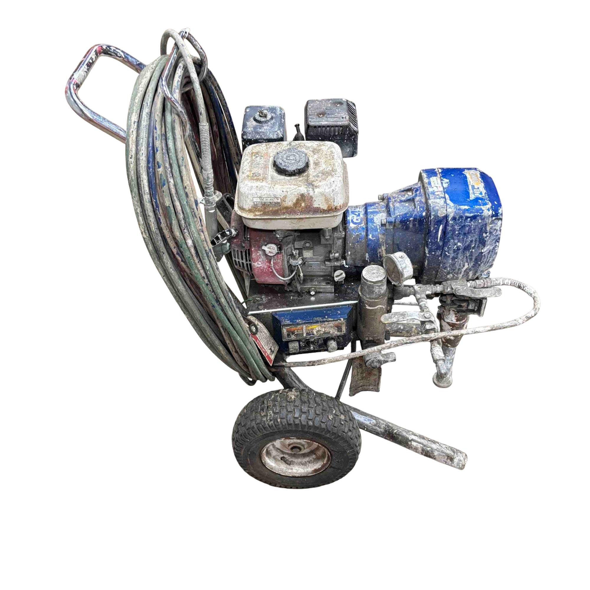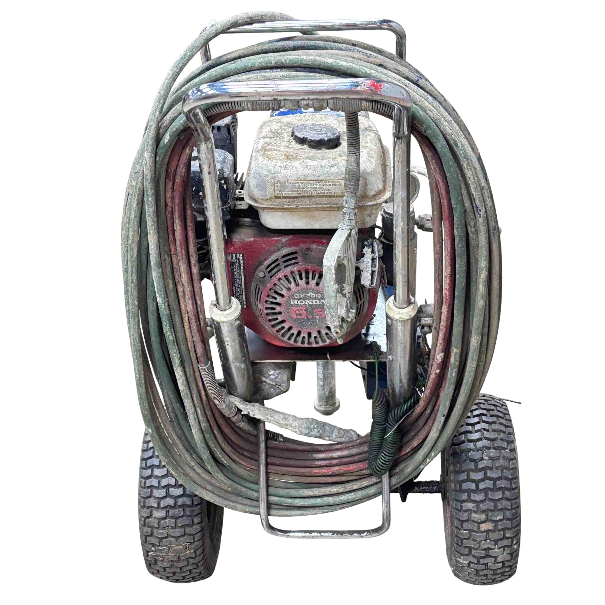 This professional-grade Graco GMAX II 7900 gas-powered airless paint sprayer provides robust power and reliability for heavy-duty painting jobs. It features a durable Honda engine and is built for high efficiency and superior finish, making it ideal for contractors tackling large-scale commercial or residential projects. The Hi-Boy design allows for easy maneuverability and convenient hose management.