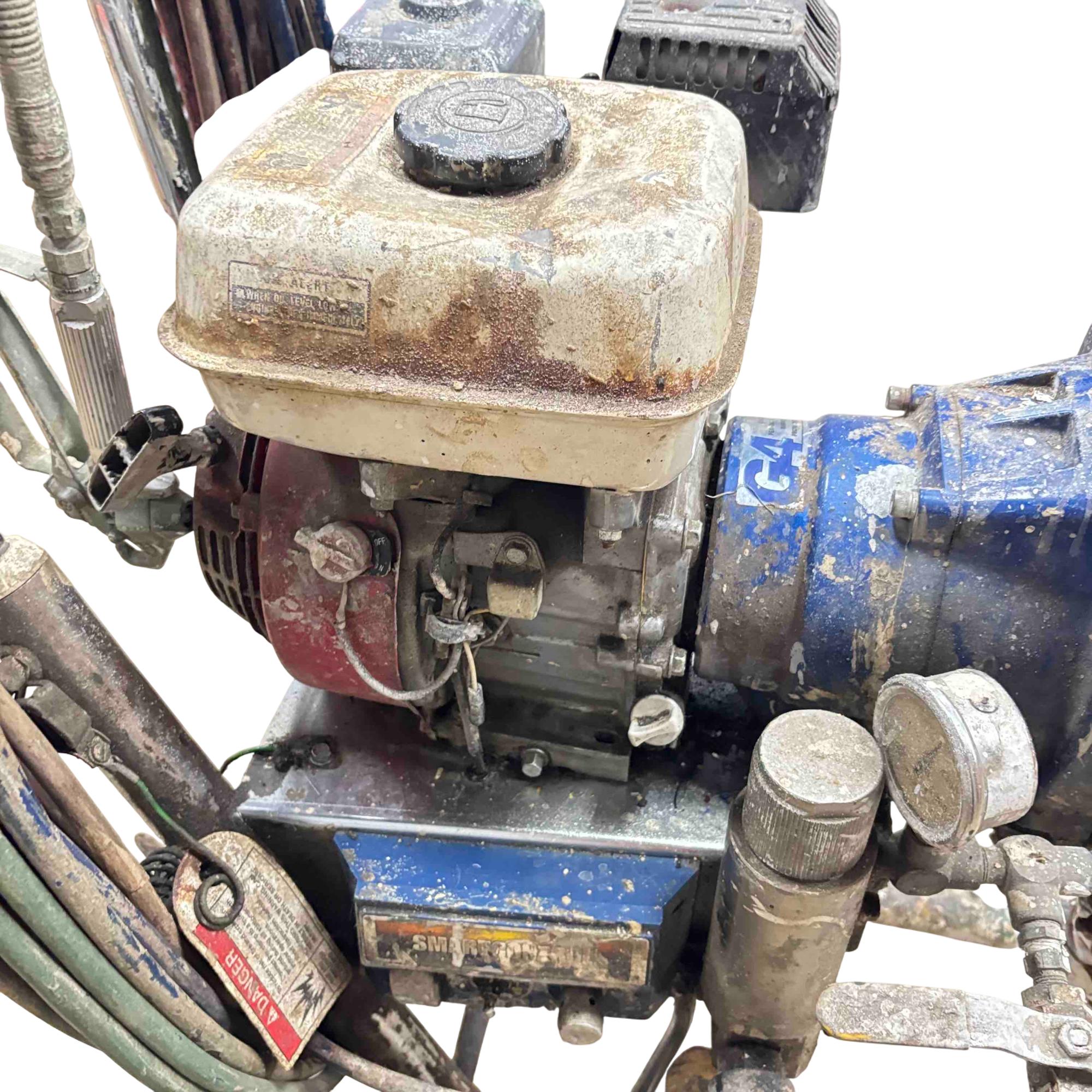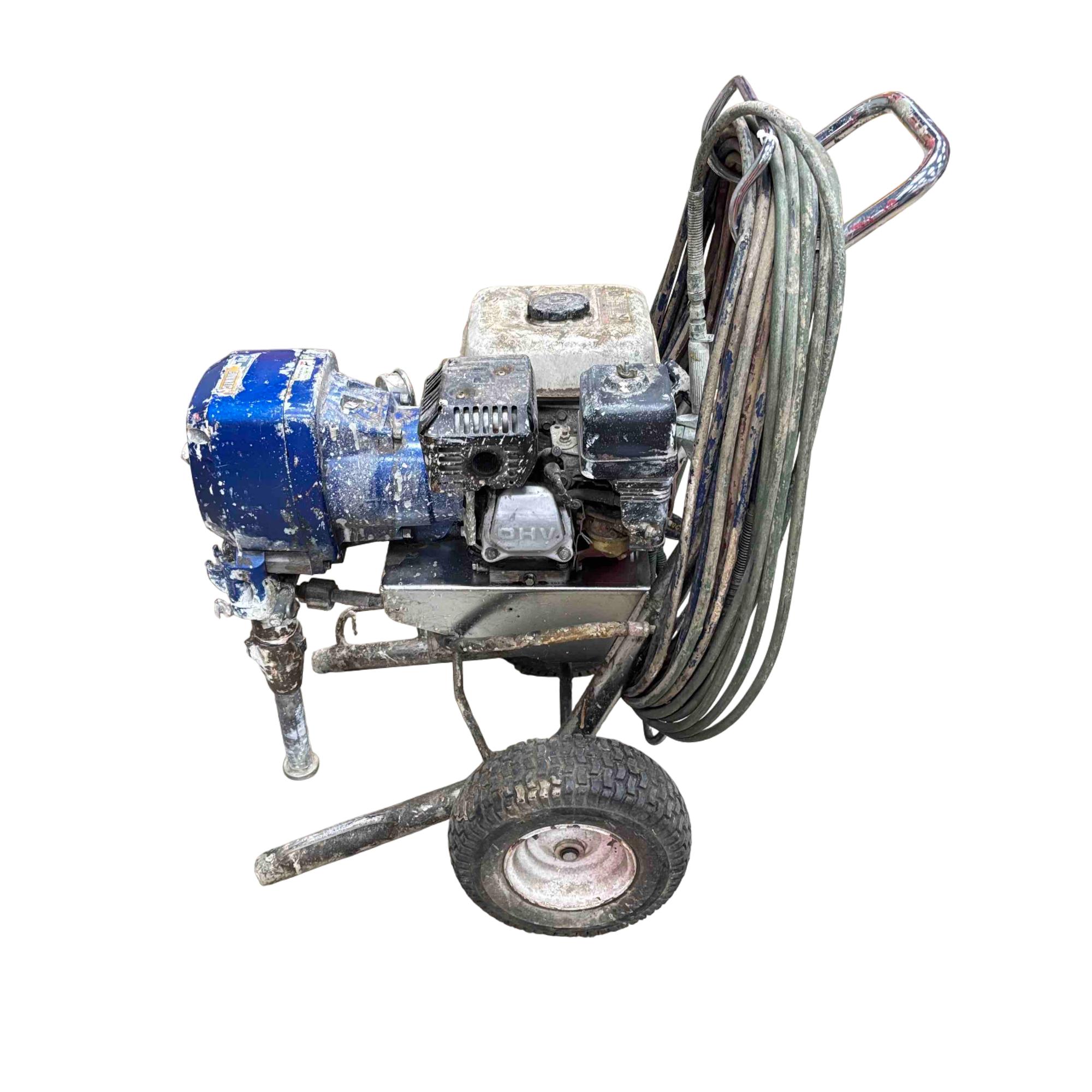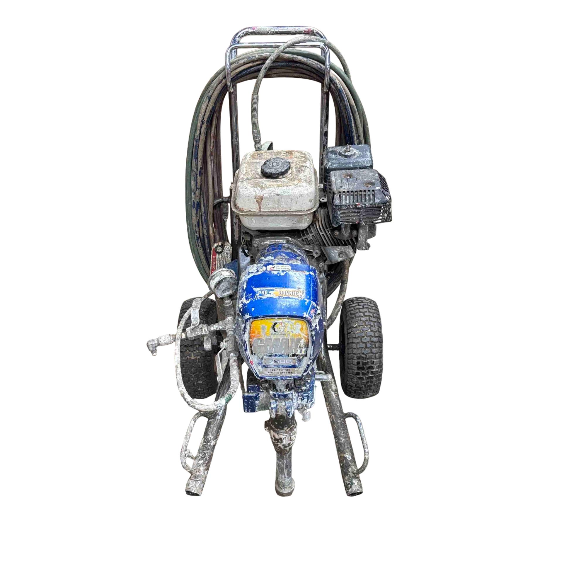 This professional-grade Graco GMAX II 7900 gas-powered airless paint sprayer provides robust power and reliability for heavy-duty painting jobs. It features a durable Honda engine and is built for high efficiency and superior finish, making it ideal for contractors tackling large-scale commercial or residential projects. The Hi-Boy design allows for easy maneuverability and convenient hose management.