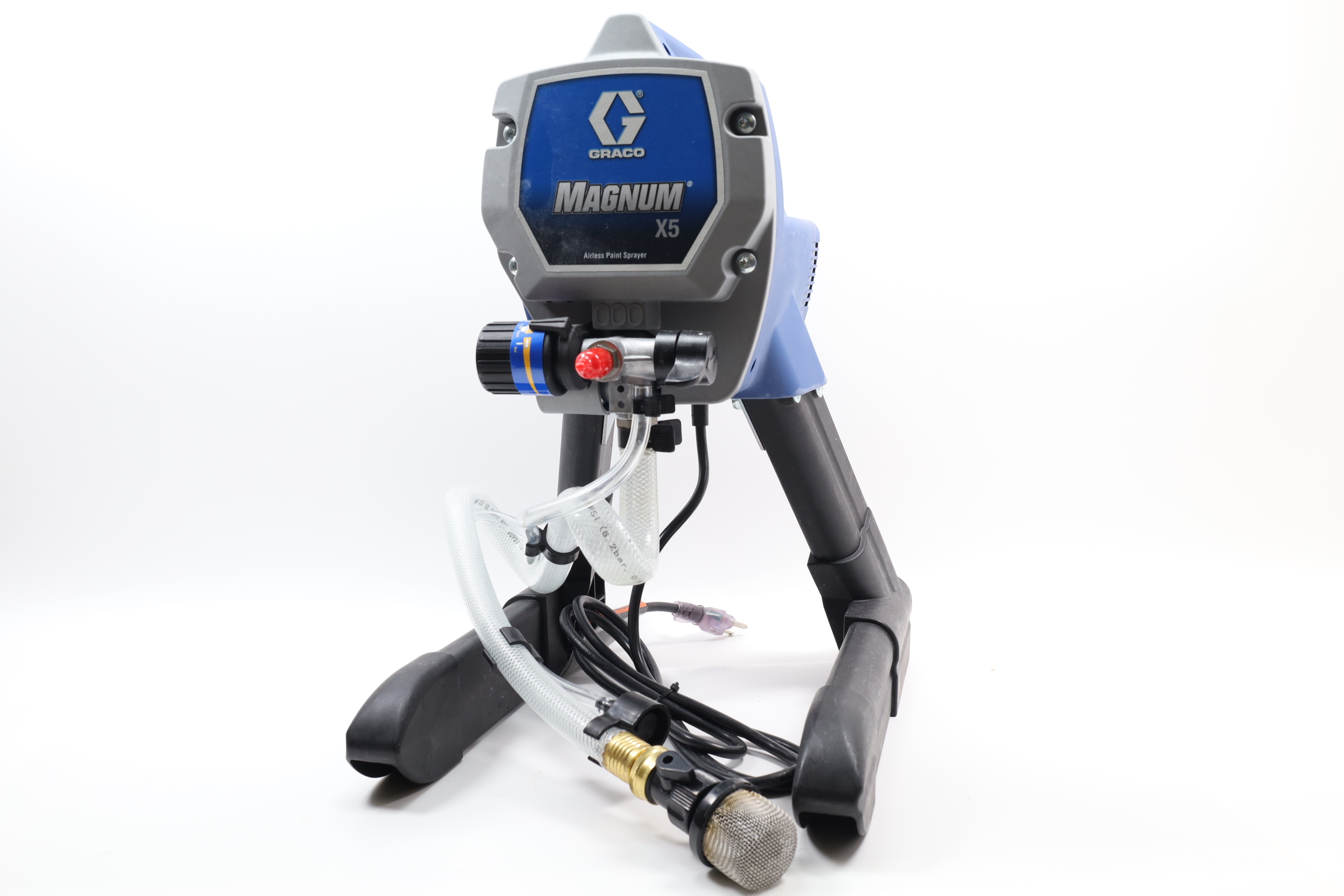 A versatile airless paint sprayer designed for medium duty projects, making it suitable for DIY homeowners and remodelers. This sprayer is capable of handling up to 10 gallons, ideal for multiple annual projects. It features fully adjustable pressure, allowing for a professional finish with various materials like paint or stain on different surfaces, including decks, fences, sheds, and walls. The unit boasts a 3000 psi stainless steel piston pump for efficient atomization without the need for thinning paints or stains. It accommodates up to 75 ft of hose, enabling easy reach to higher areas. The SG2 Metal Spray Gun included comes with an integrated filter to prevent tip clogging, while the flexible Suction Tube works with both 1 and 5-gallon paint buckets. For ease of cleaning, it includes a PowerFlush adapter for connection to a garden hose. The sprayer supports 10 TrueAirless Spray Tips and a maximum spray tip size of 0.015 in, providing flexibility and efficiency for a variety of projects.