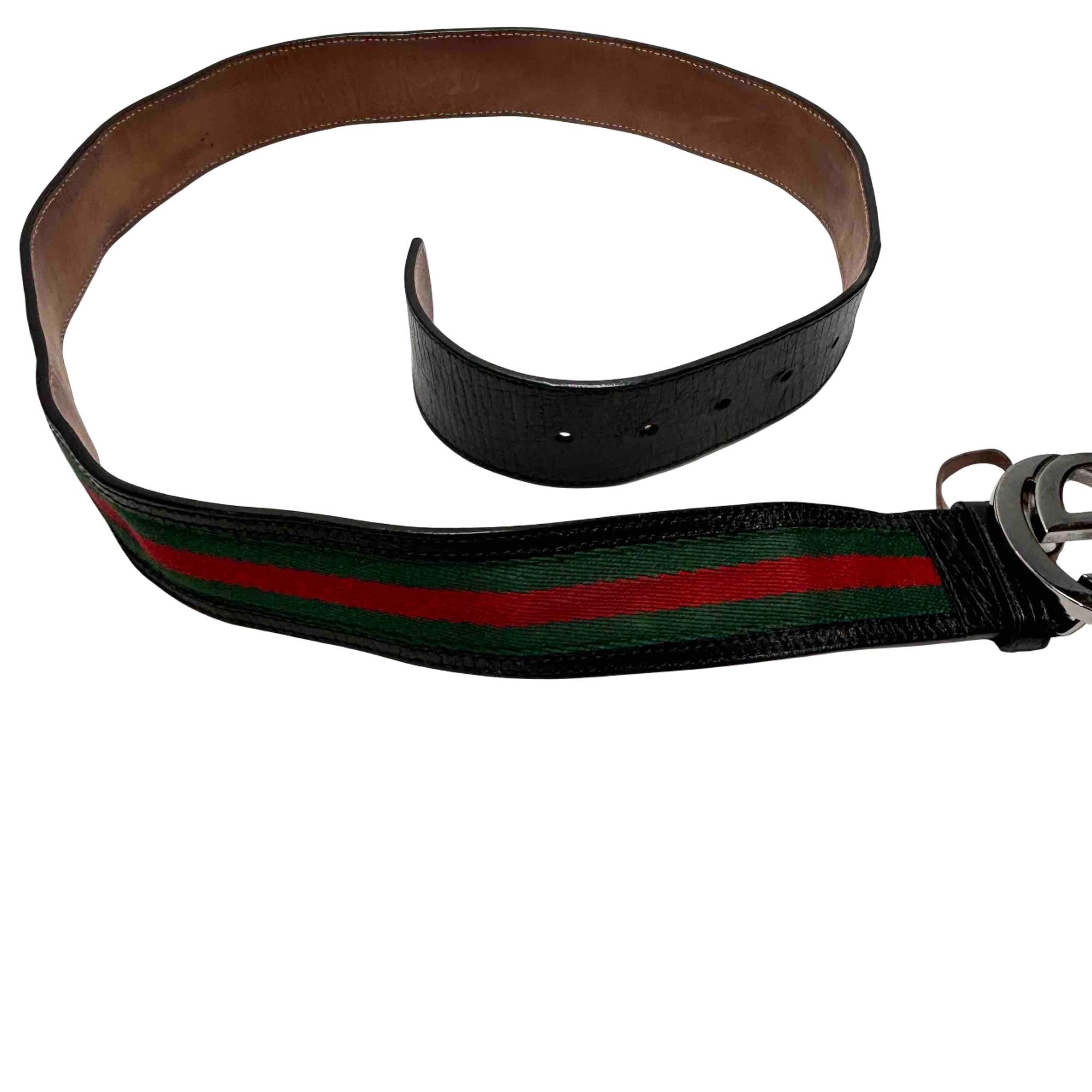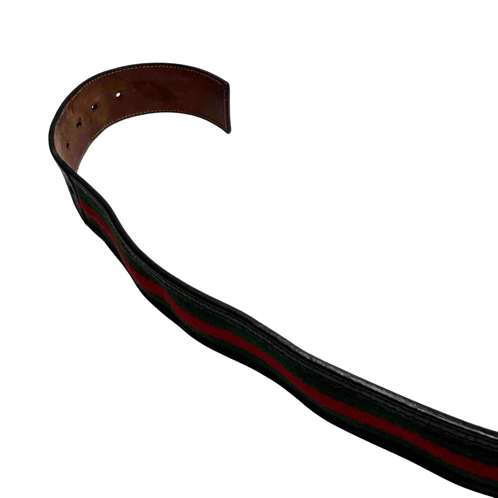 Step up your style game with this authentic Gucci 114984 mens belt, featuring iconic black leather, a signature red and green fabric stripe, and a striking silver interlocking GG buckle. This designer accessory effortlessly combines luxury and versatility, making it the perfect addition to both casual and dressier outfits. Elevate your wardrobe with a piece that showcases world-renowned Italian craftsmanship.