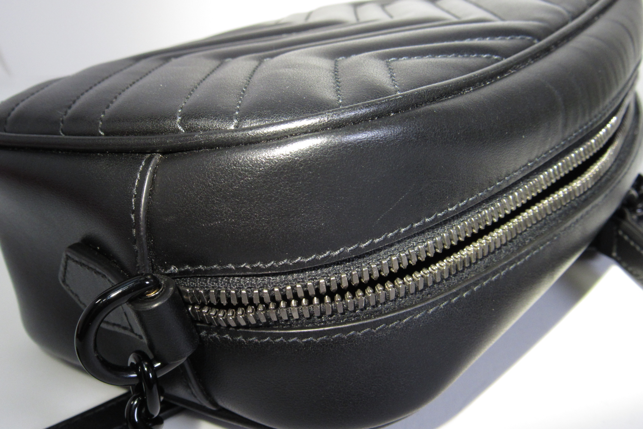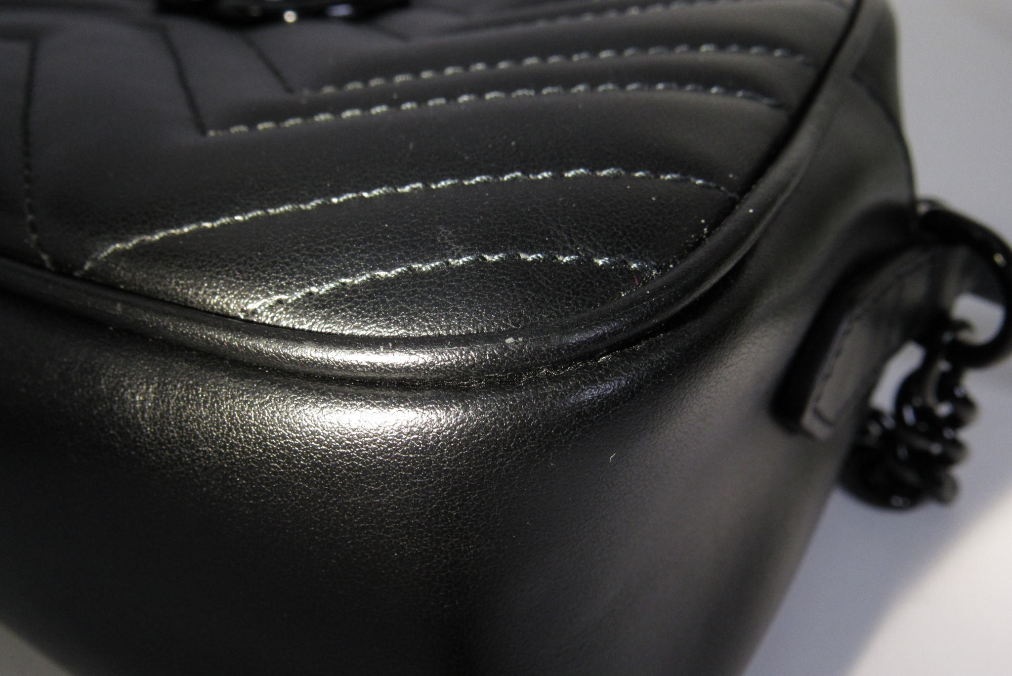 Black matelassé chevron leather