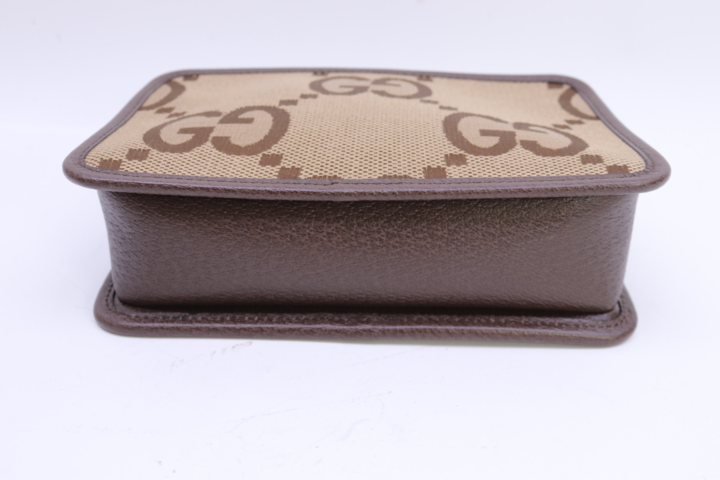 Marking the House’s first in-person fashion show since February 2020, Gucci Love Parade unfolded along Los Angeles' walk of fame. Inspired by the timeless nature of old-Hollywood glamour, the collection presents contemporary takes on traditional pieces. This mini bag is presented in GG canvas - a reimagination of Guccio Gucci's initials in a maxi size.