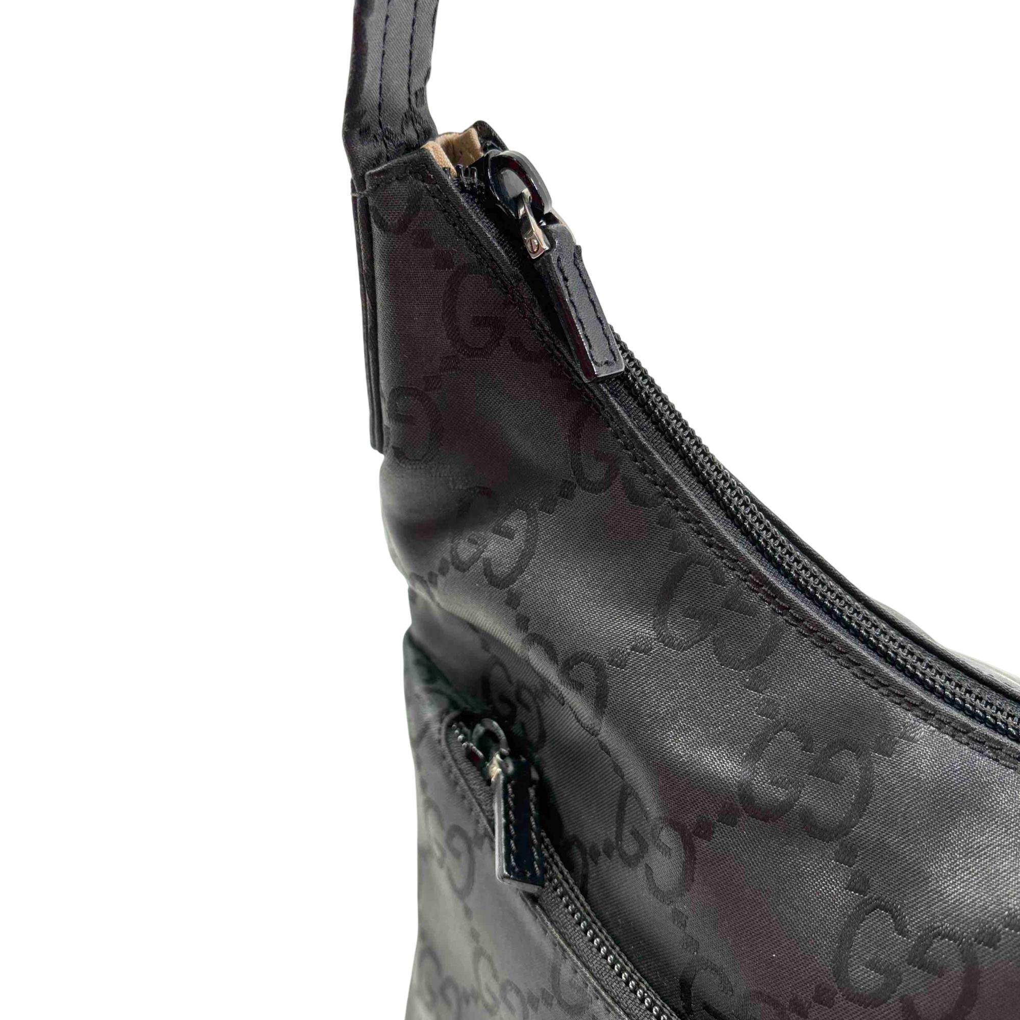 Elevate your style with the Gucci 0018386 Black GG Nylon Shoulder Bag. Crafted from high-quality nylon and featuring the iconic GG pattern, this bag is both contemporary and timeless. With a convenient zipper and a comfortable strap, its perfect for those who desire functionality combined with luxury.