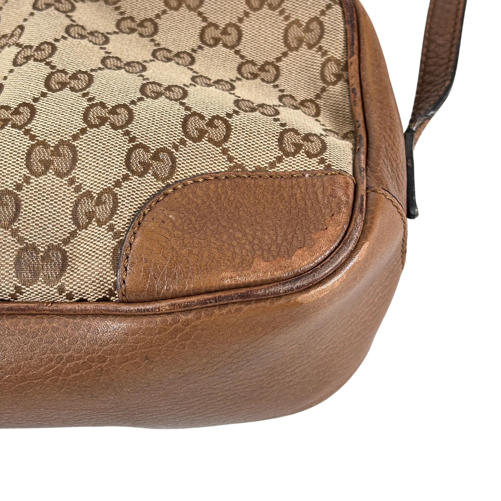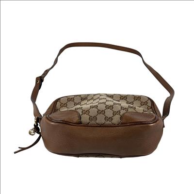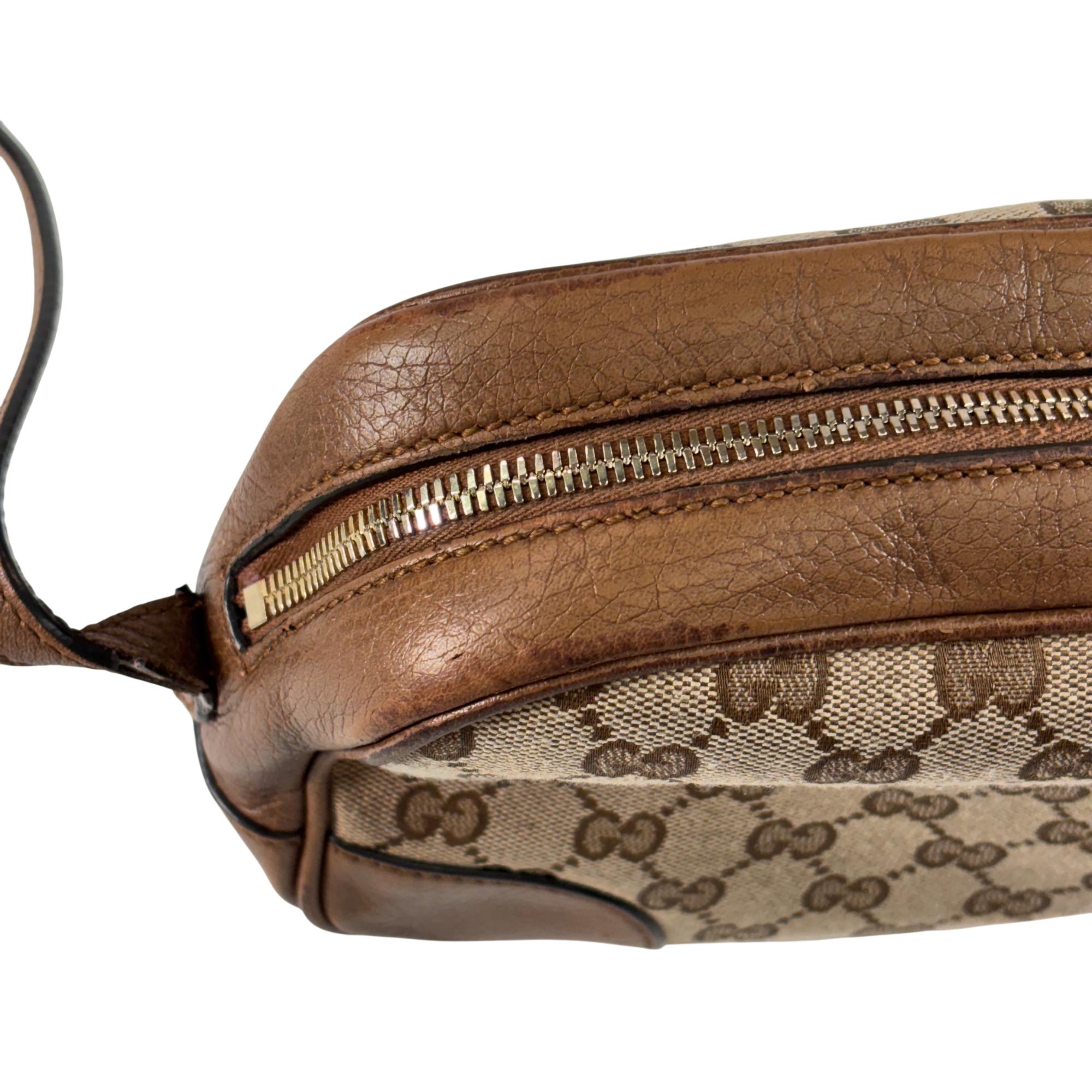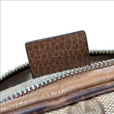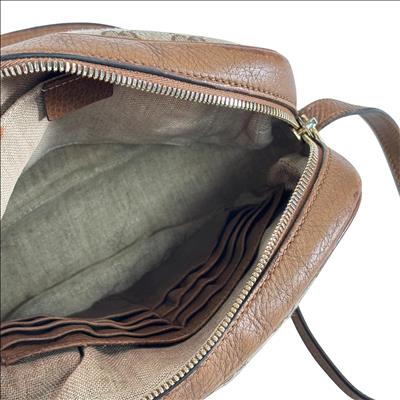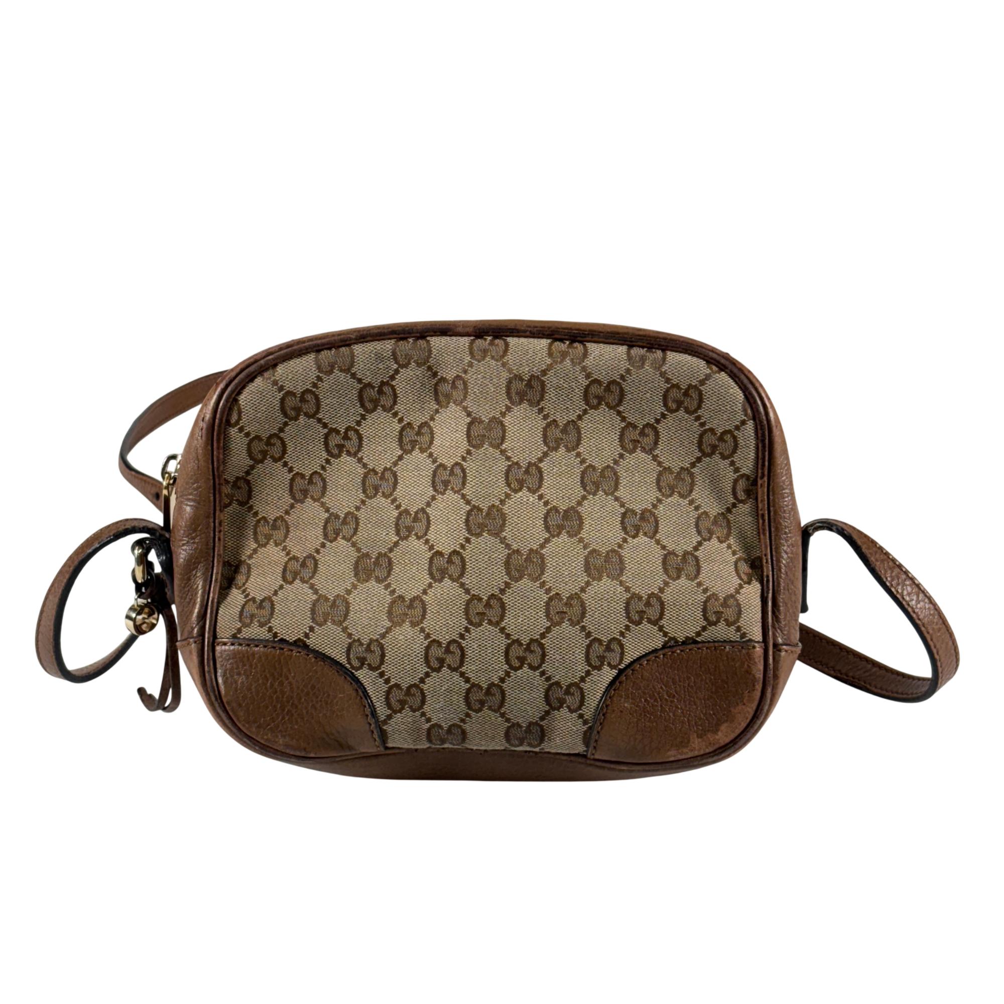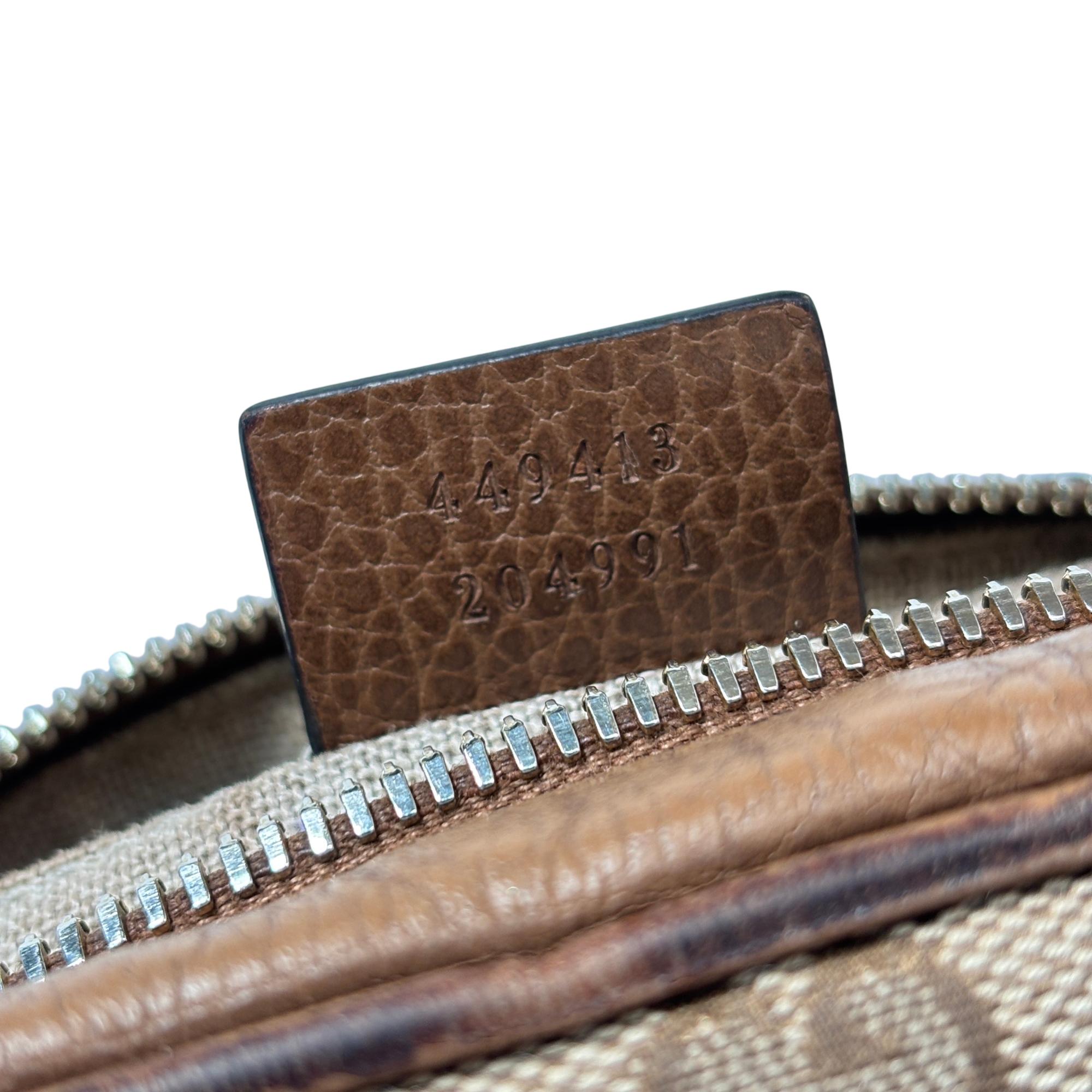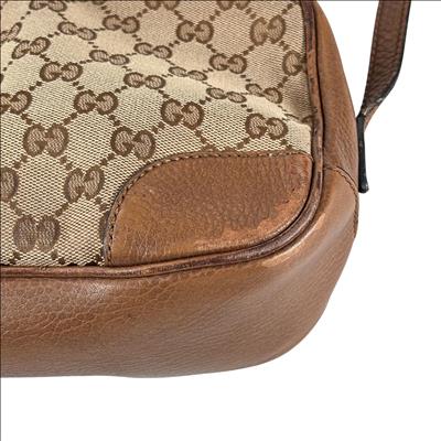 Featuring a distinctive GG canvas pattern combined with brown leather accents, this Gucci GG Canvas Bree Brown Leather Crossbody Bag (Model 449413 204991) offers refined craftsmanship and sophisticated style. The bag includes a sturdy zipper closure and a mix of durable fabric and smooth leather surfaces, making it an elegant and functional accessory for everyday use.