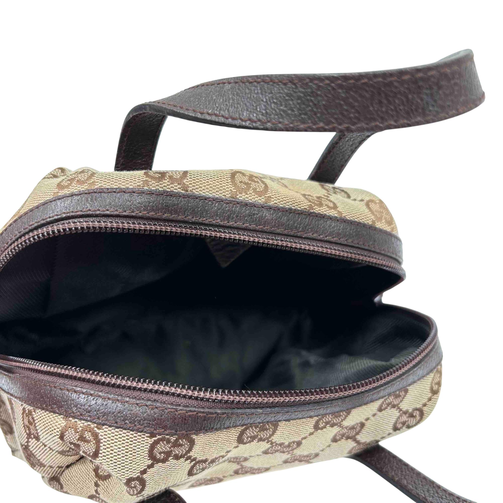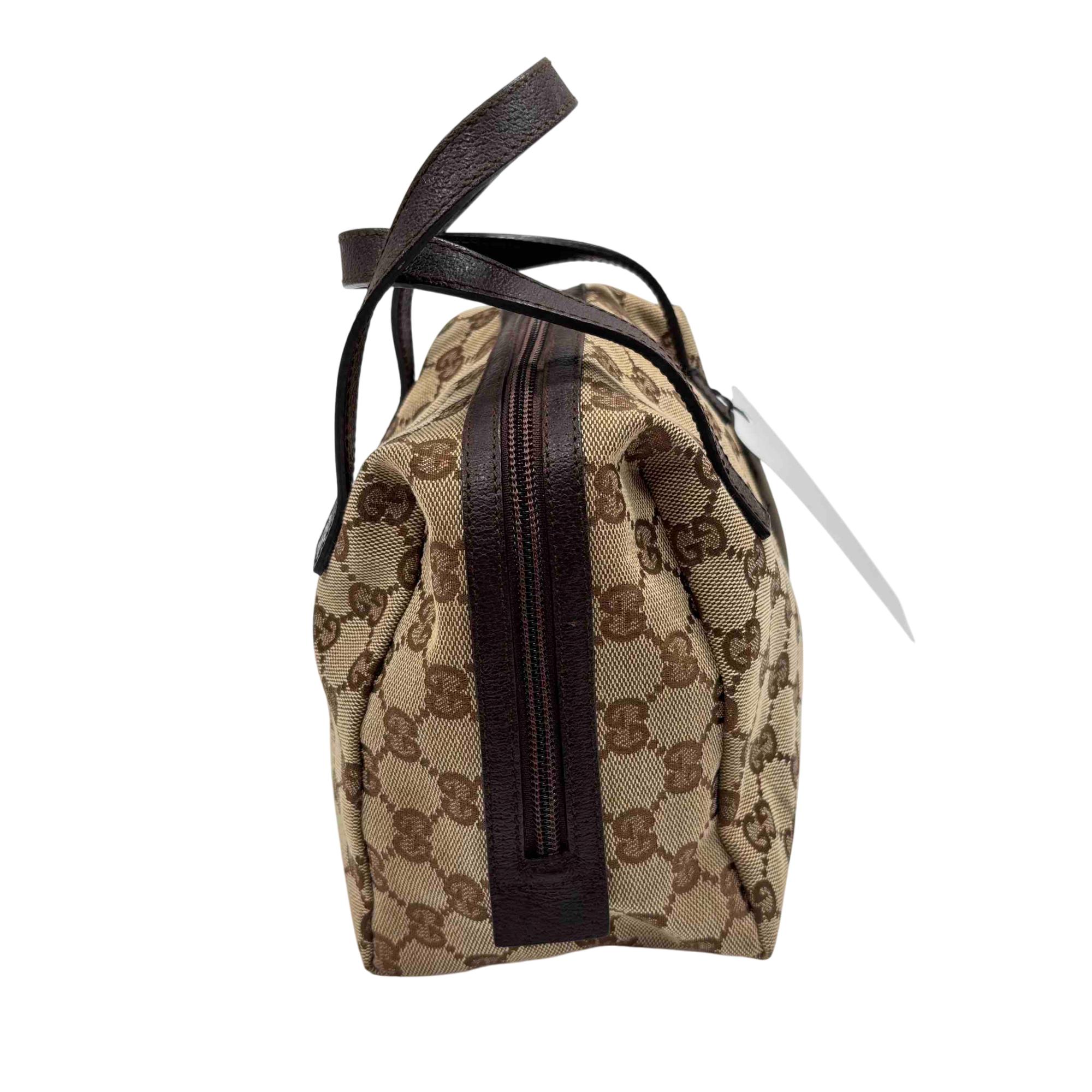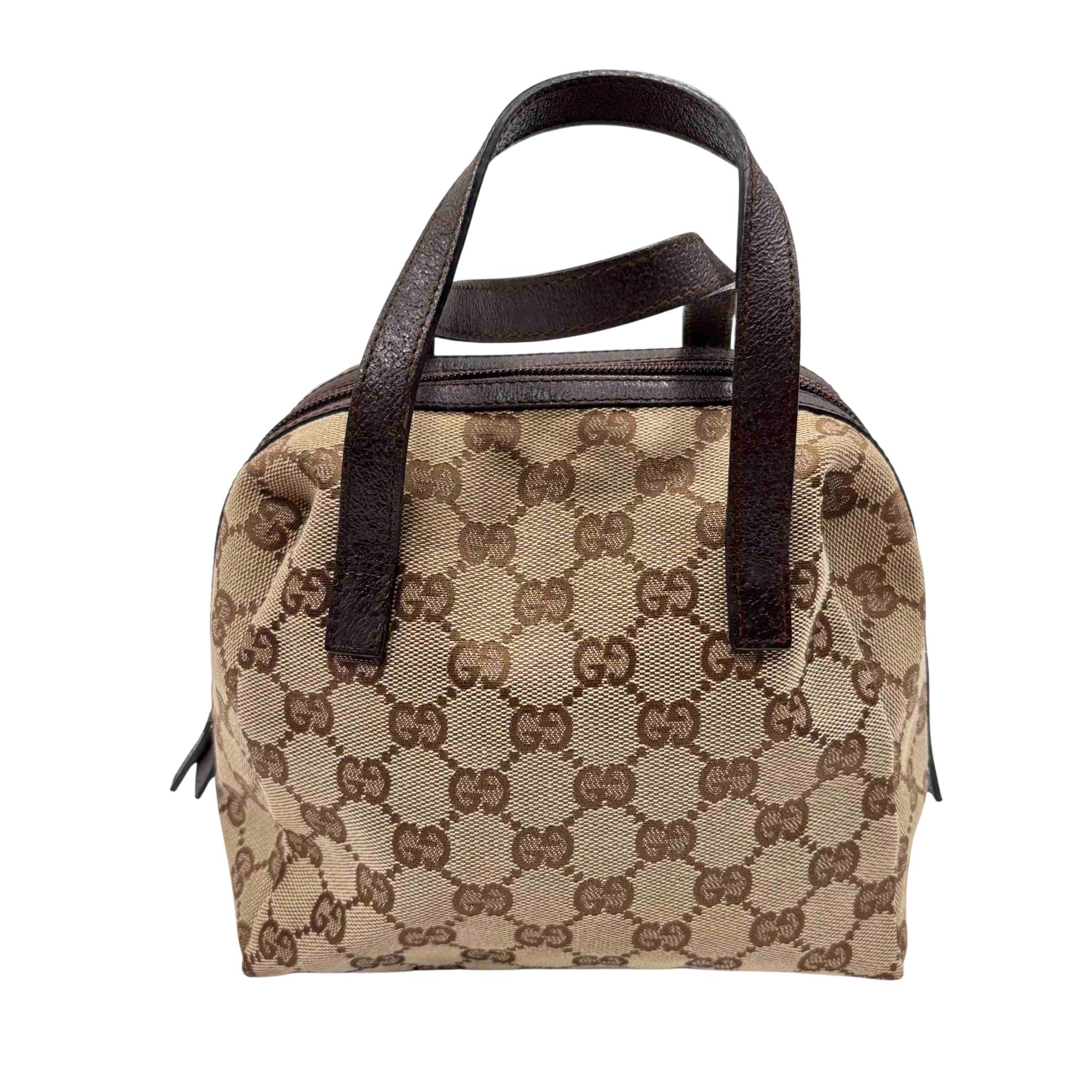 Experience the elegance of luxury fashion with the Gucci GG Canvas Mini Handbag. Crafted in a sophisticated blend of brown and black, this chic accessory is perfect for adding a touch of class to any outfit. Its compact size and iconic style make it a must-have addition for fashion enthusiasts.