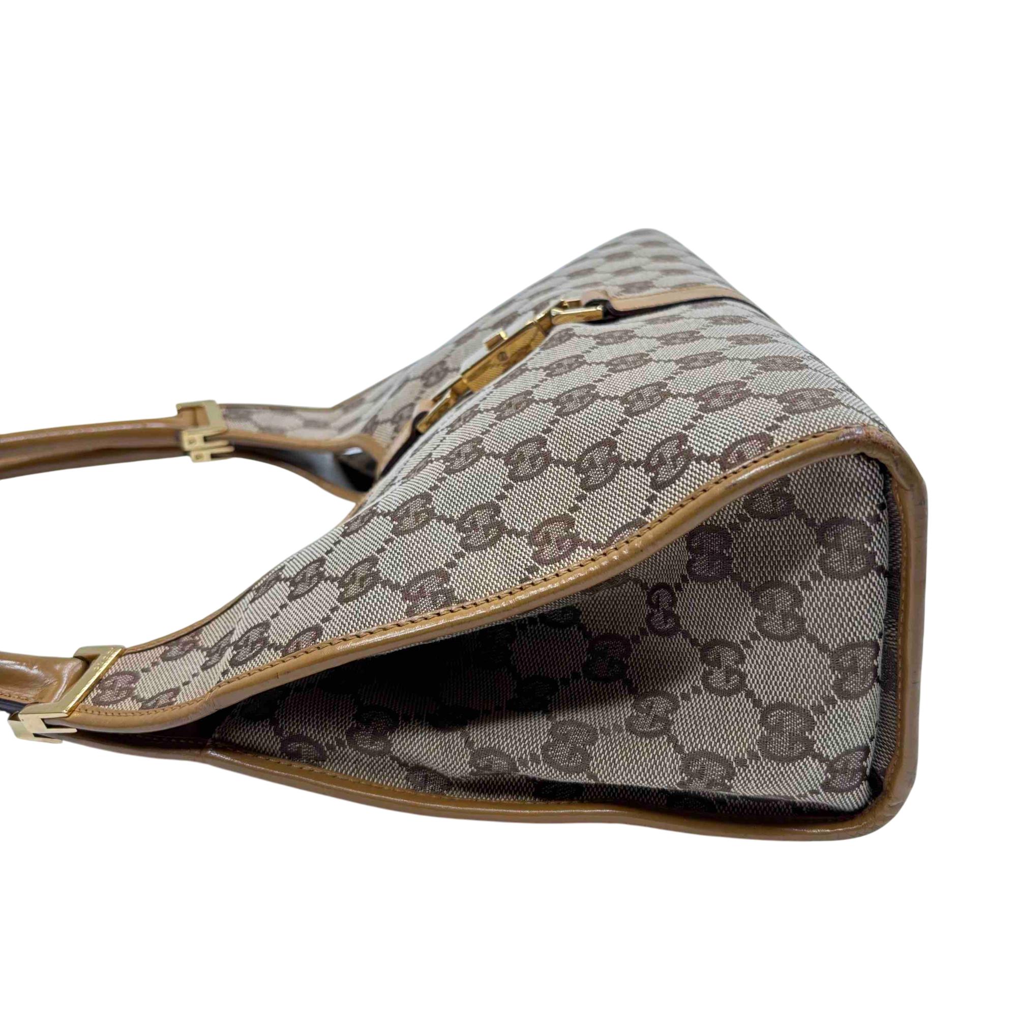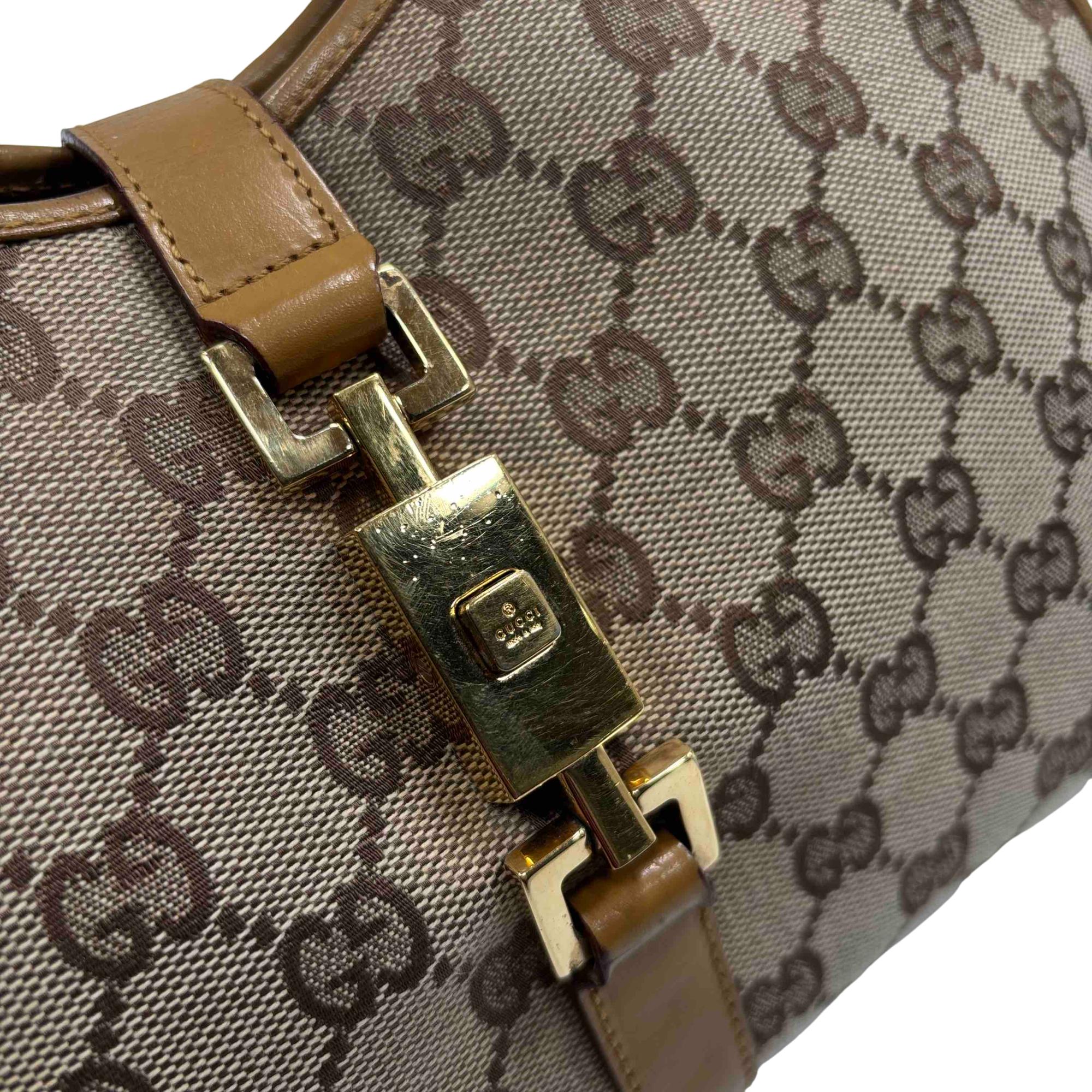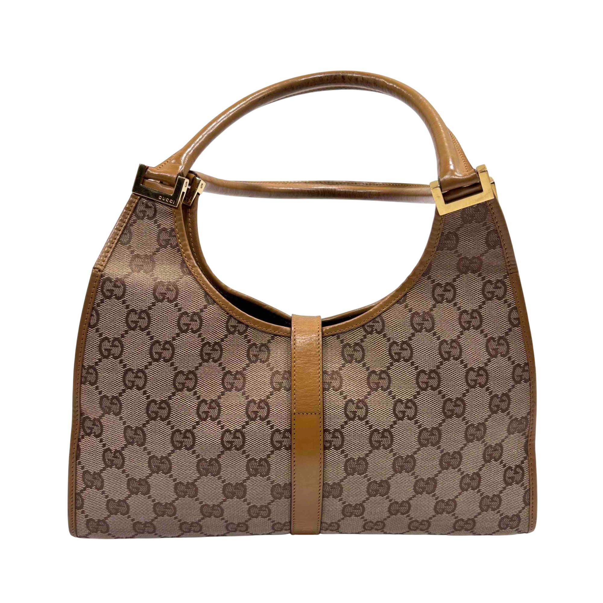 Elevate your style with the iconic Gucci Canvas Jackie Bag, a perfect blend of luxury and practicality. Crafted in Italy, this stunning handbag features a classic brown and tan design with elegant leather accents, making it a timeless addition to any wardrobe. With its signature gold hardware and spacious interior, the Jackie Bag provides both fashion-forward style and everyday functionality. Certified authentic by Entrupy.