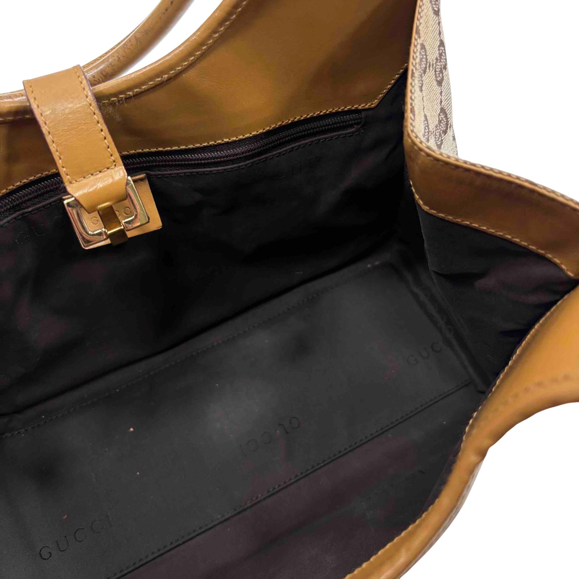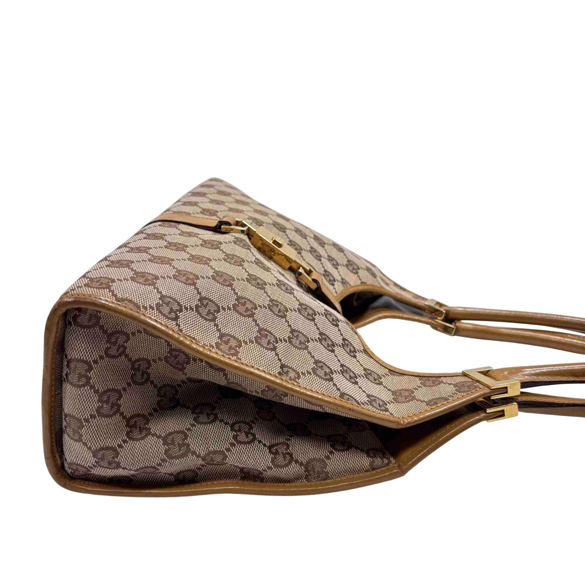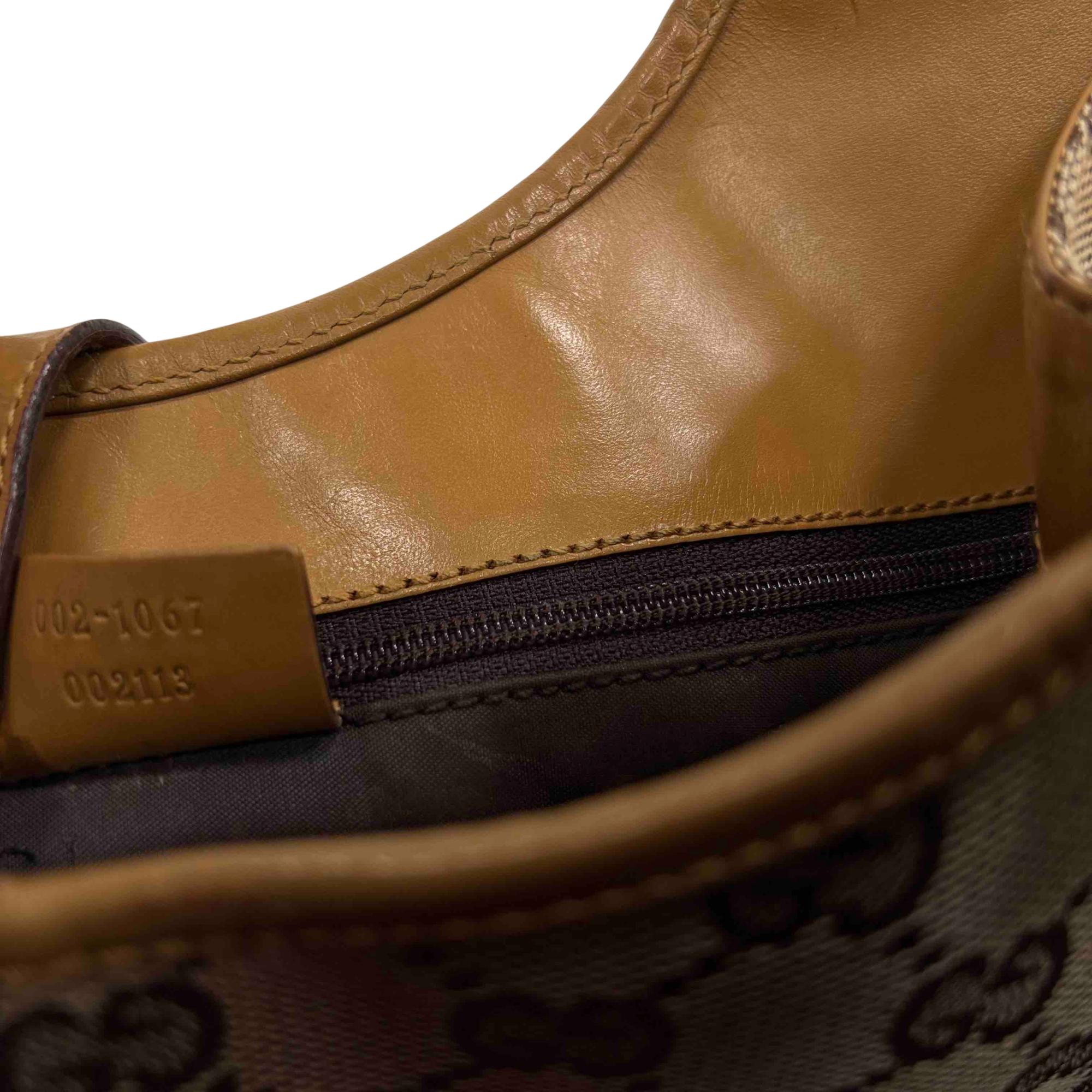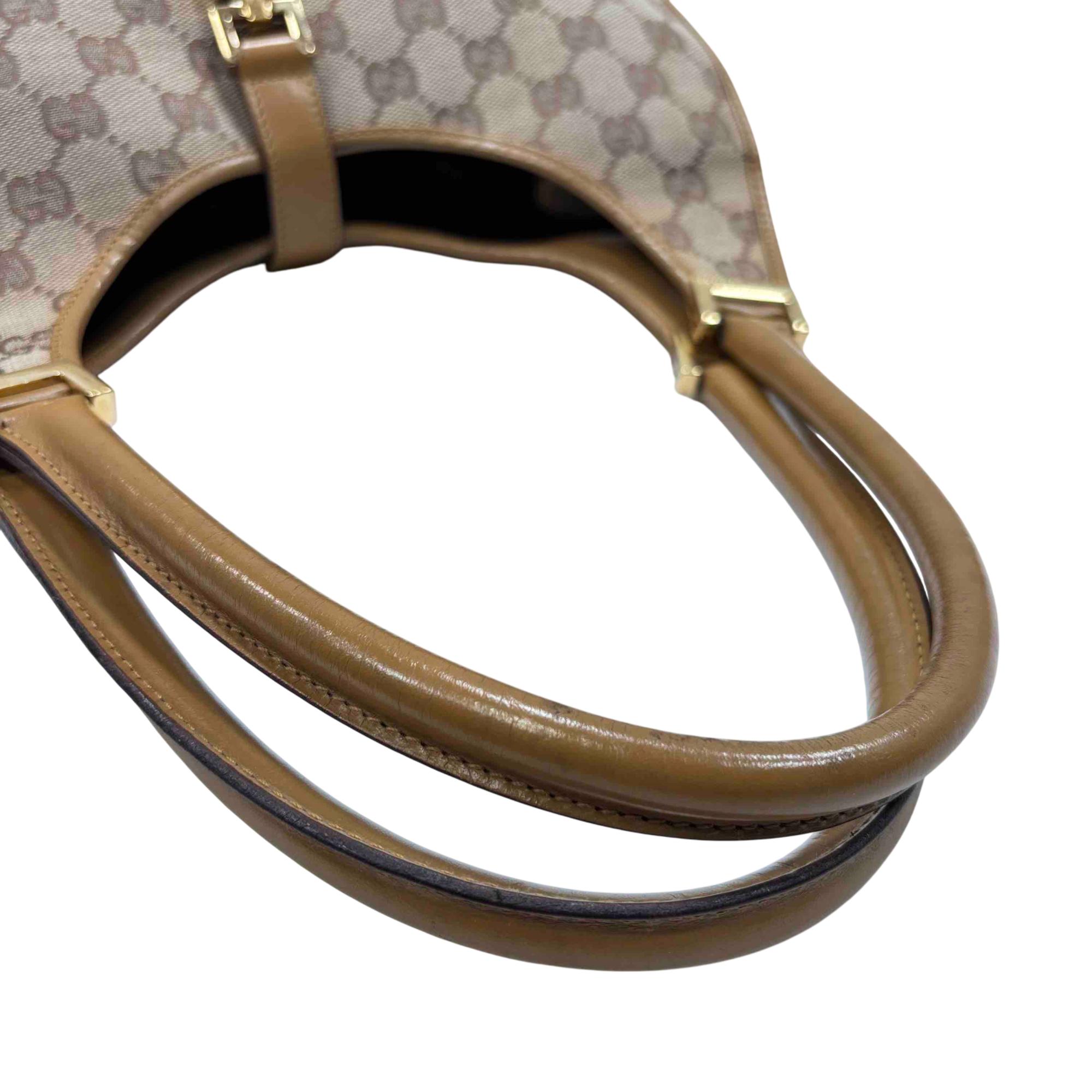 Elevate your style with the iconic Gucci Canvas Jackie Bag, a perfect blend of luxury and practicality. Crafted in Italy, this stunning handbag features a classic brown and tan design with elegant leather accents, making it a timeless addition to any wardrobe. With its signature gold hardware and spacious interior, the Jackie Bag provides both fashion-forward style and everyday functionality. Certified authentic by Entrupy.