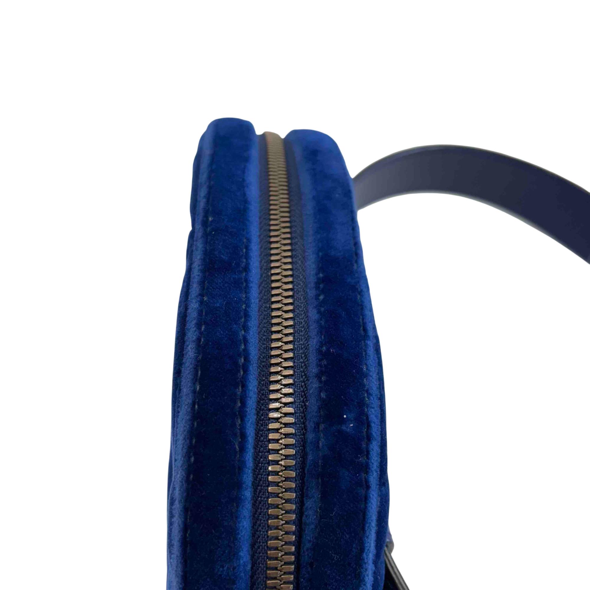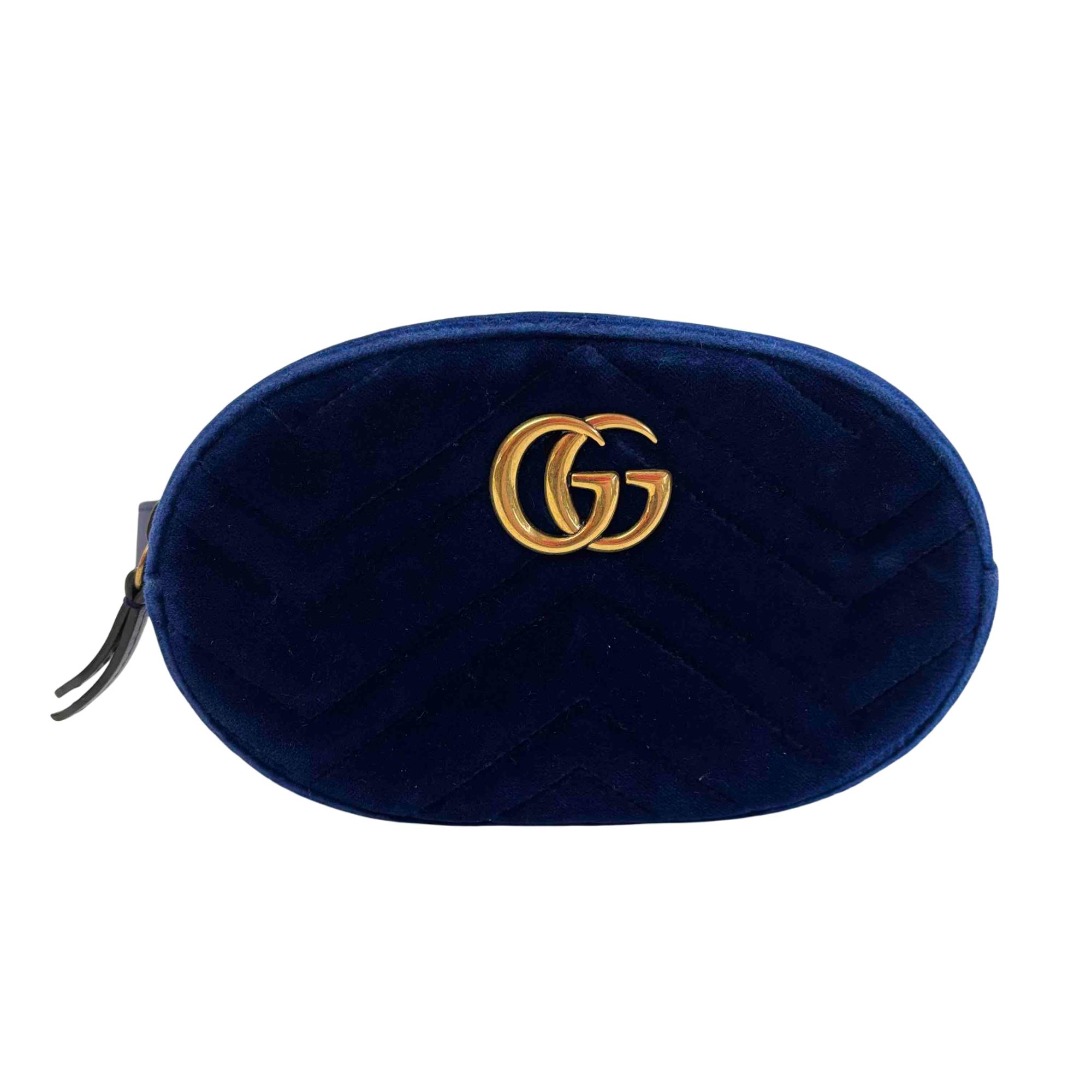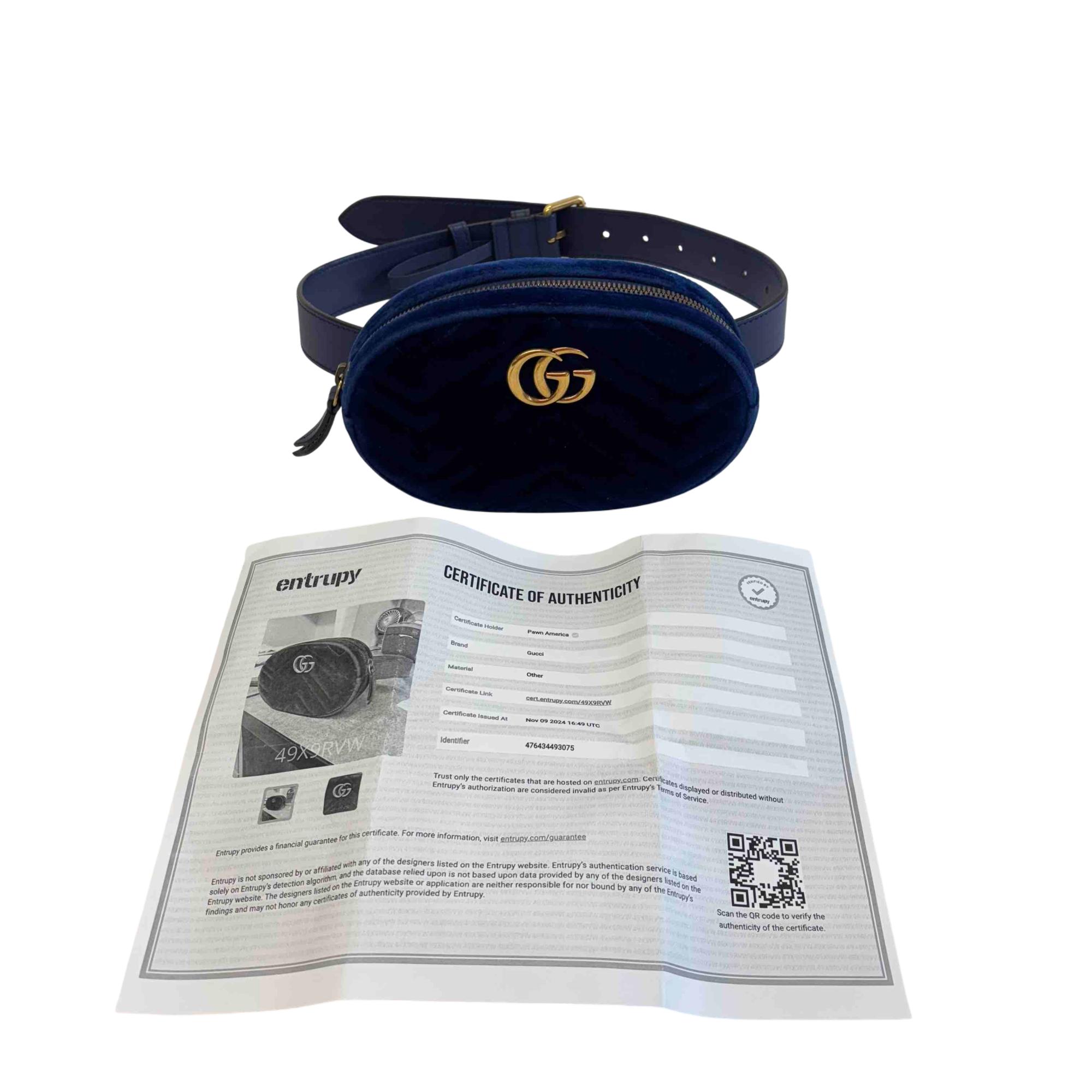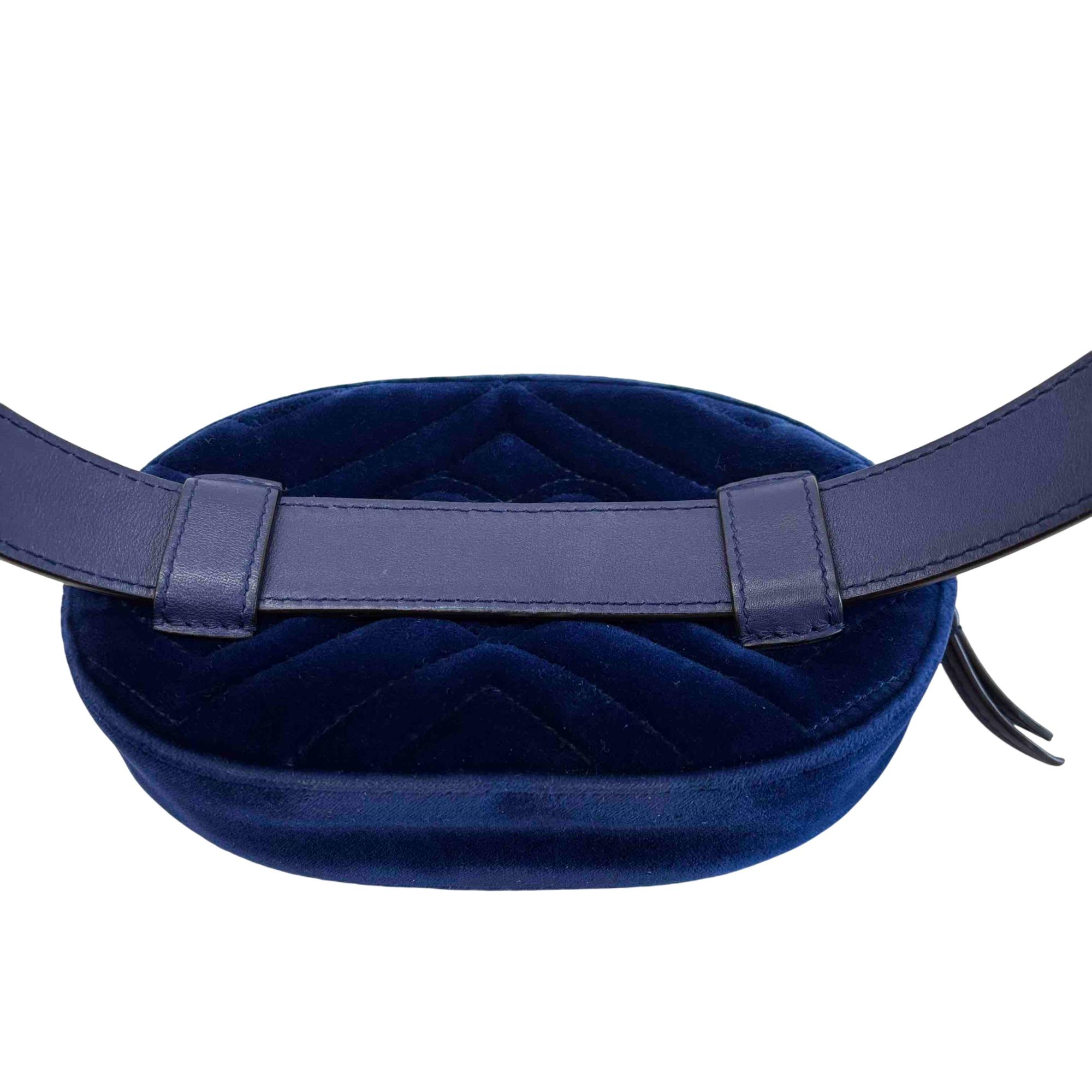 Step up your accessory game with this stunning Gucci GG Marmont Belt Bag, fashioned in luxurious blue velvet suede and accented with a sophisticated gold GG logo. This versatile waist bag combines timeless elegance with modern edge, making it perfect for both everyday wear and special occasions. Enjoy hands-free convenience and unmistakable Gucci style, all in one iconic accessory.