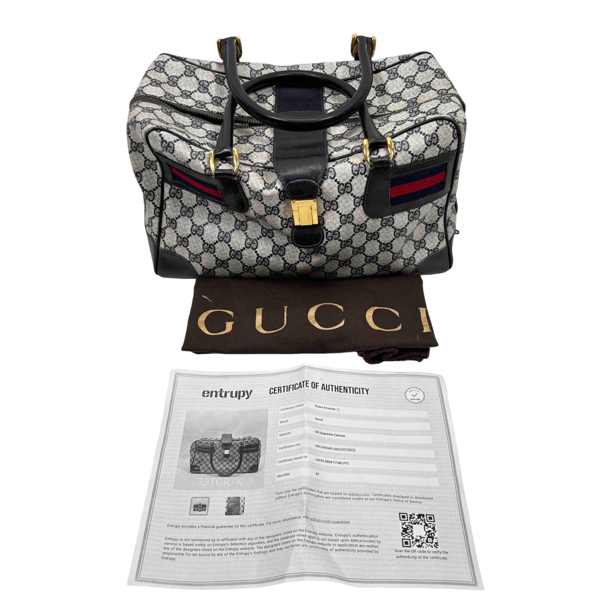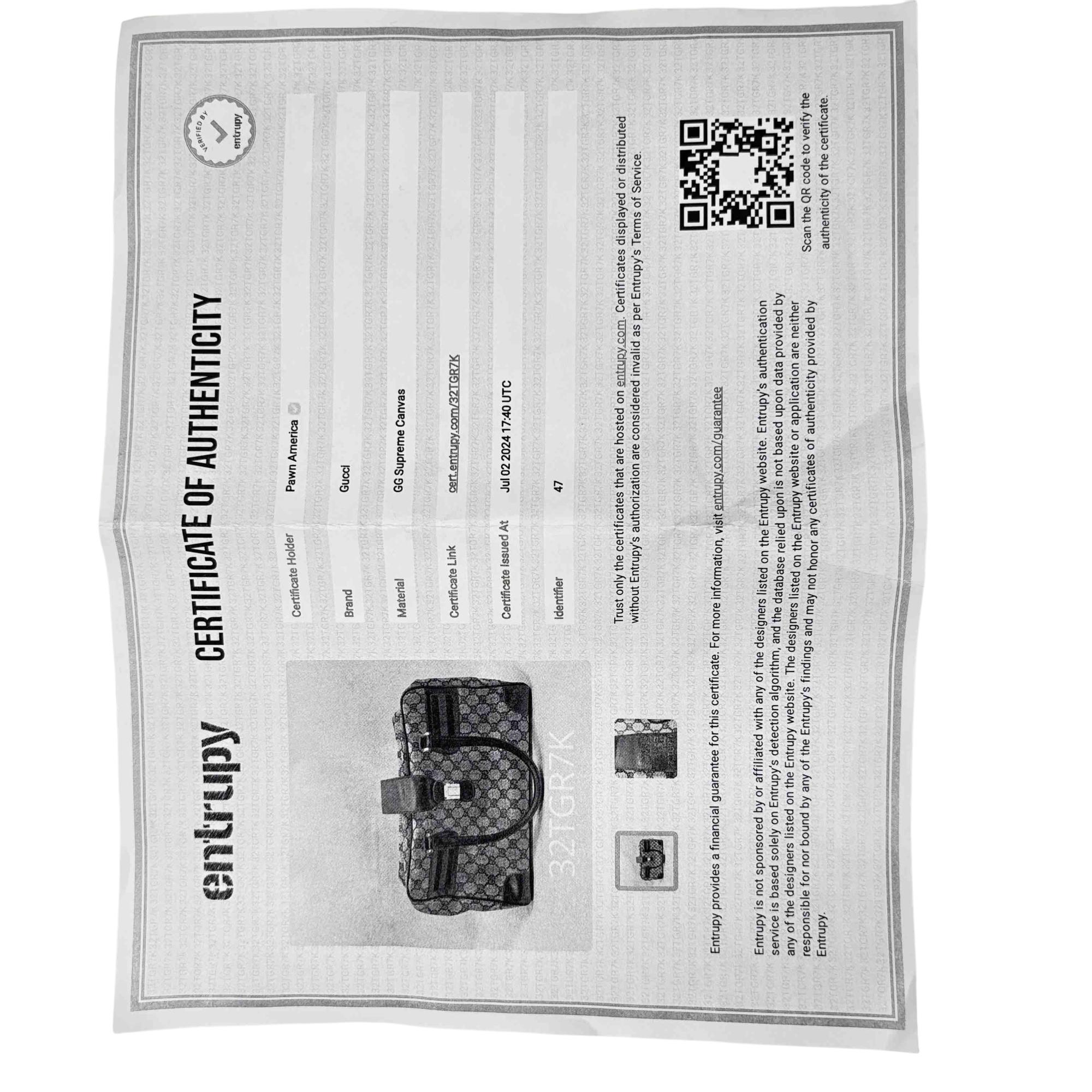 Introducing the luxurious Gucci GG Supreme Canvas Boston Bag, a perfect blend of style and sophistication. This authentic designer handbag features the iconic Gucci GG pattern and comes with a certified Entrupy Certificate of Authenticity. Ideal for fashion enthusiasts, this bag adds a touch of elegance to any outfit while ensuring authenticity and quality.