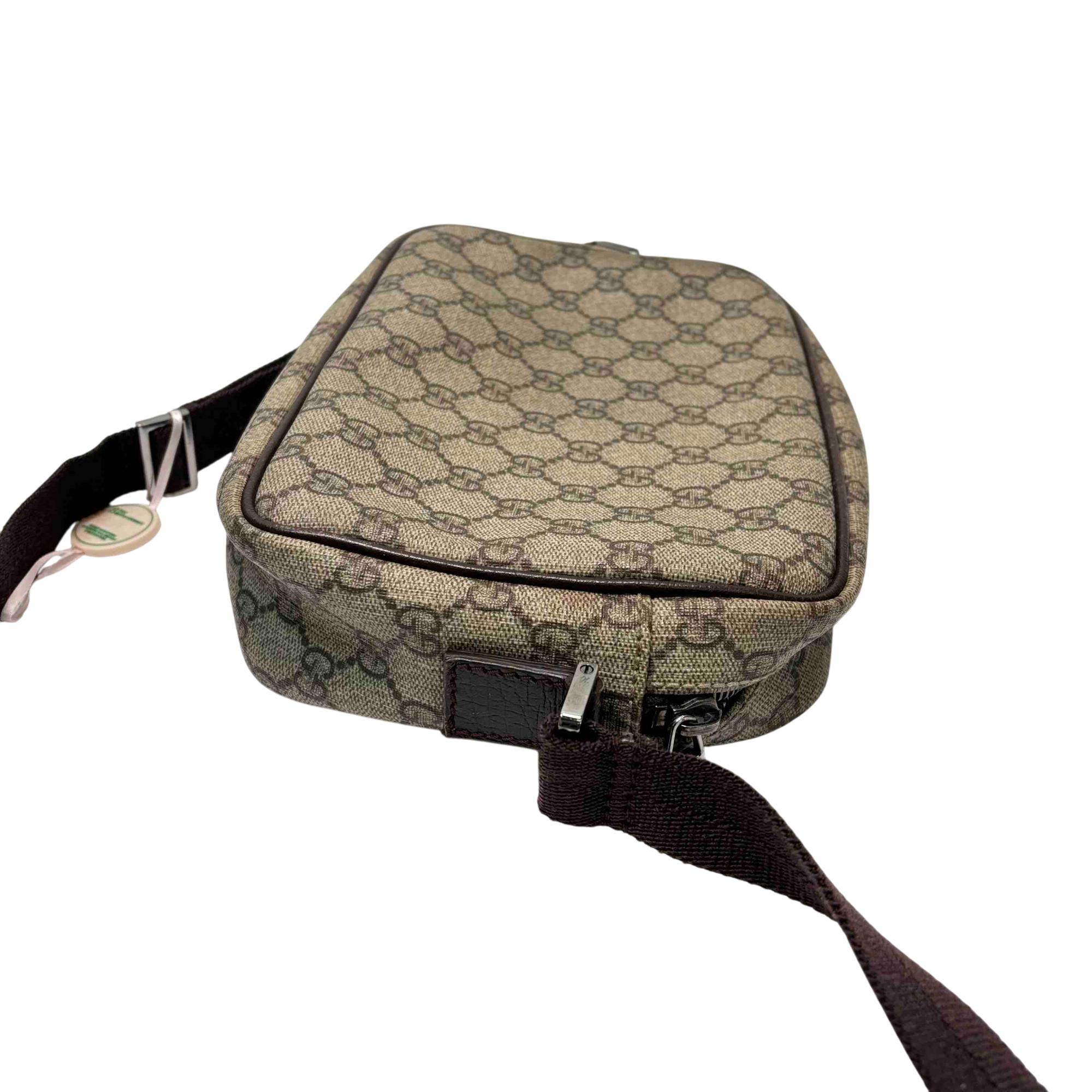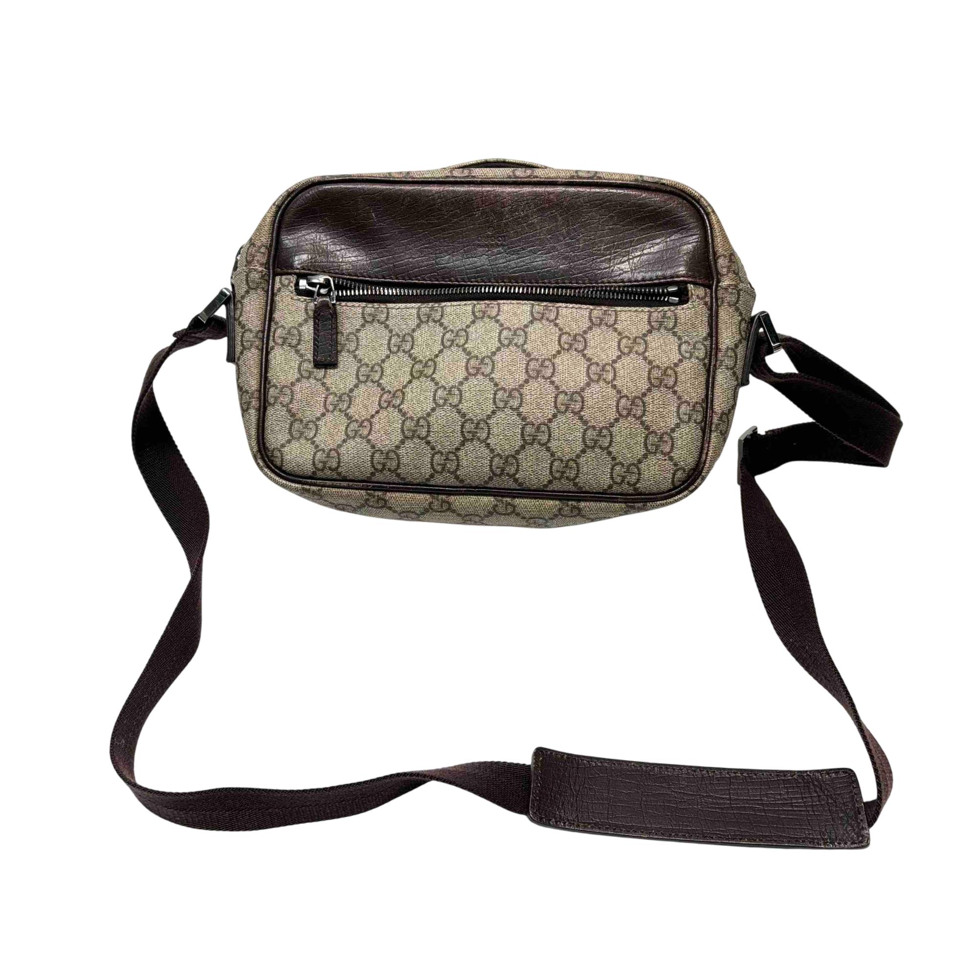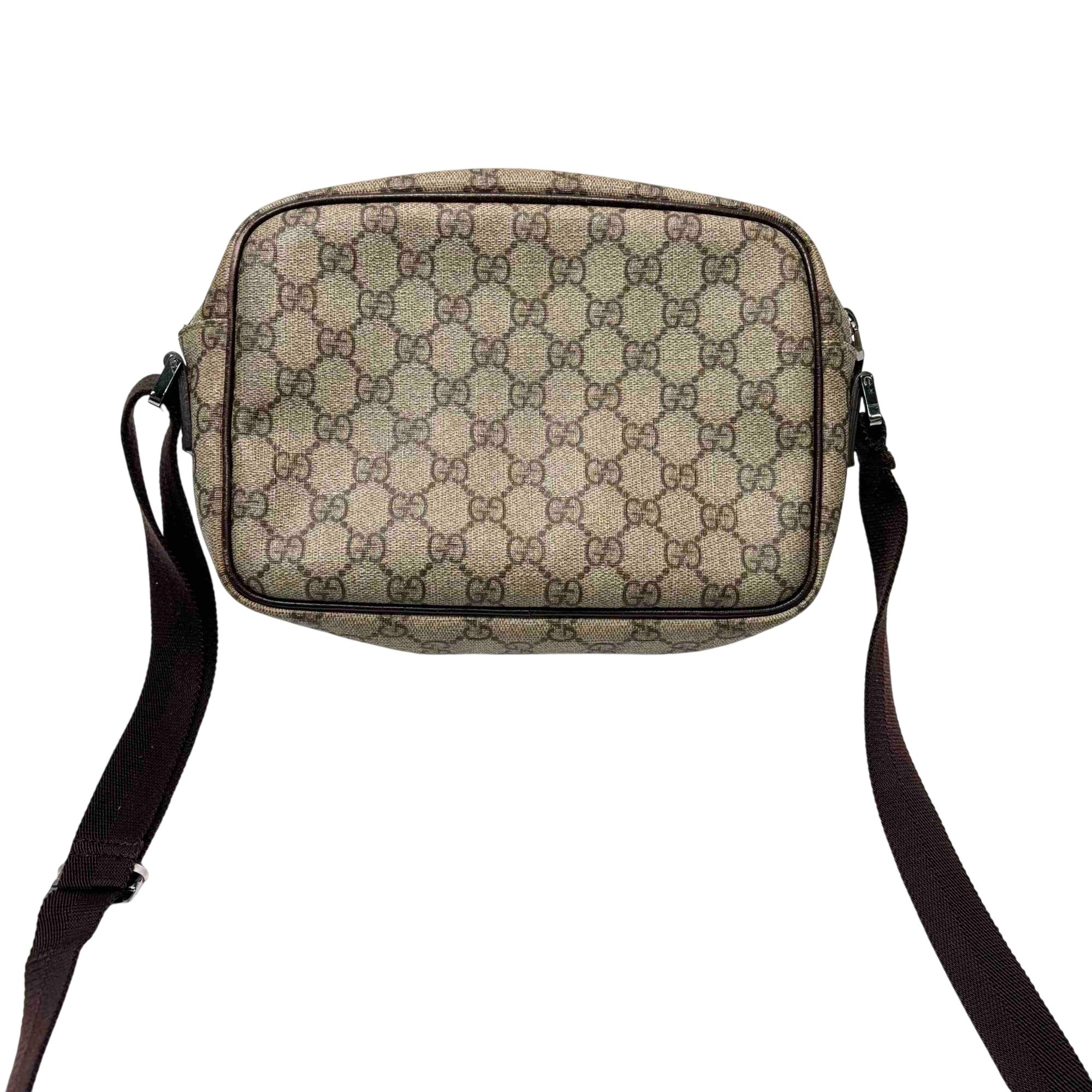 Elevate your style with the iconic Gucci GG Supreme Canvas and Leather Messenger Bag. This chic accessory combines the luxury of Gucci's signature canvas with sleek leather accents, showcasing a sophisticated black strap and a striking silver clasp. Perfect for any occasion, this messenger bag effortlessly fuses function with high fashion.