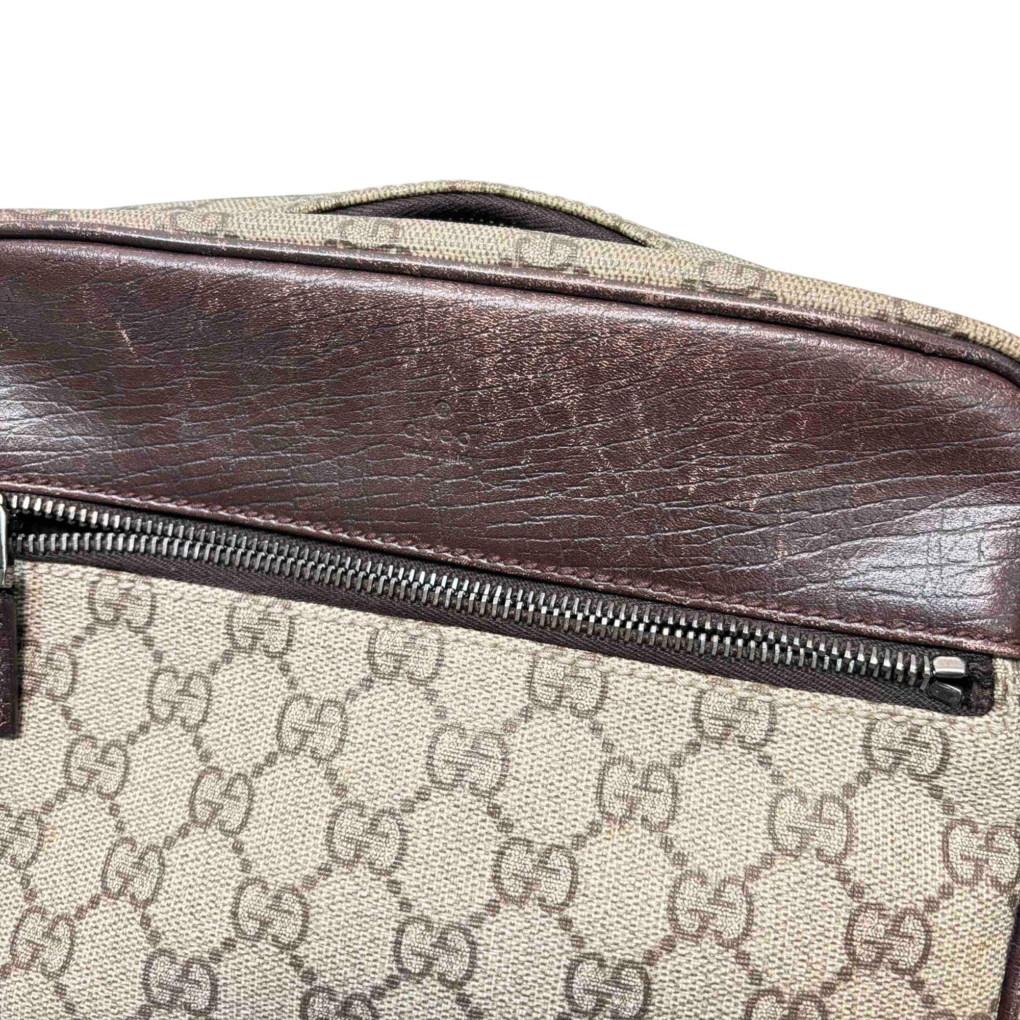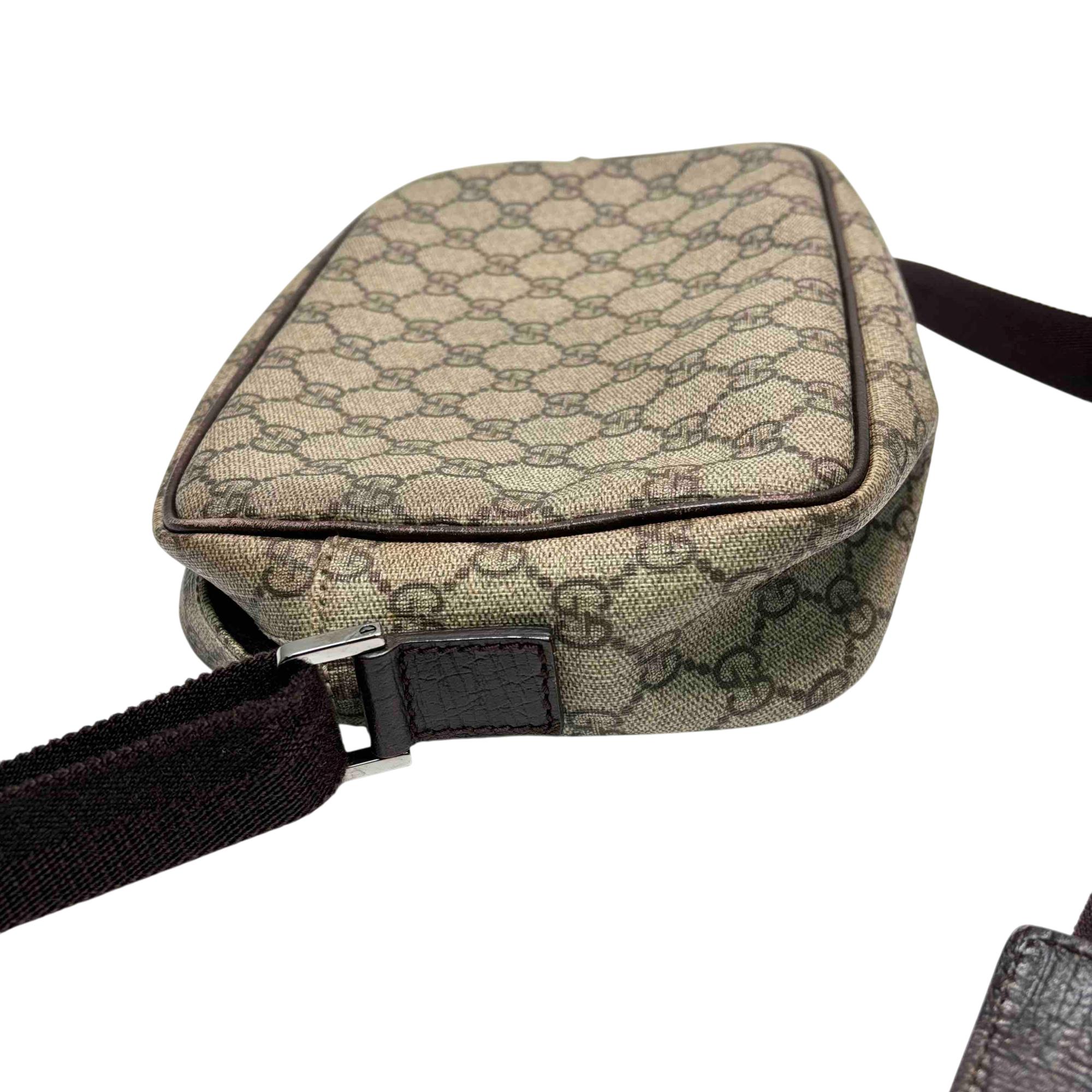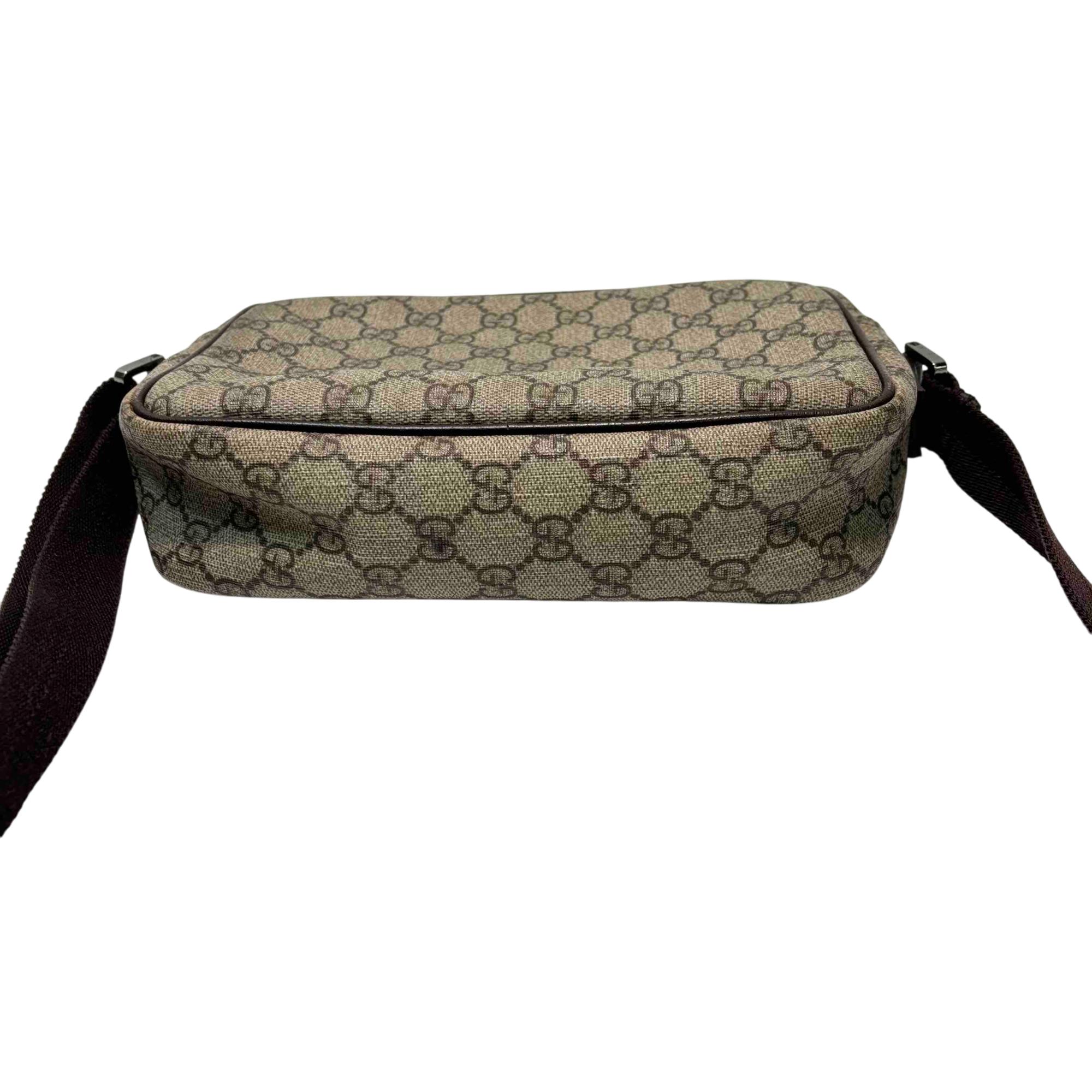 Elevate your style with the iconic Gucci GG Supreme Canvas and Leather Messenger Bag. This chic accessory combines the luxury of Gucci's signature canvas with sleek leather accents, showcasing a sophisticated black strap and a striking silver clasp. Perfect for any occasion, this messenger bag effortlessly fuses function with high fashion.