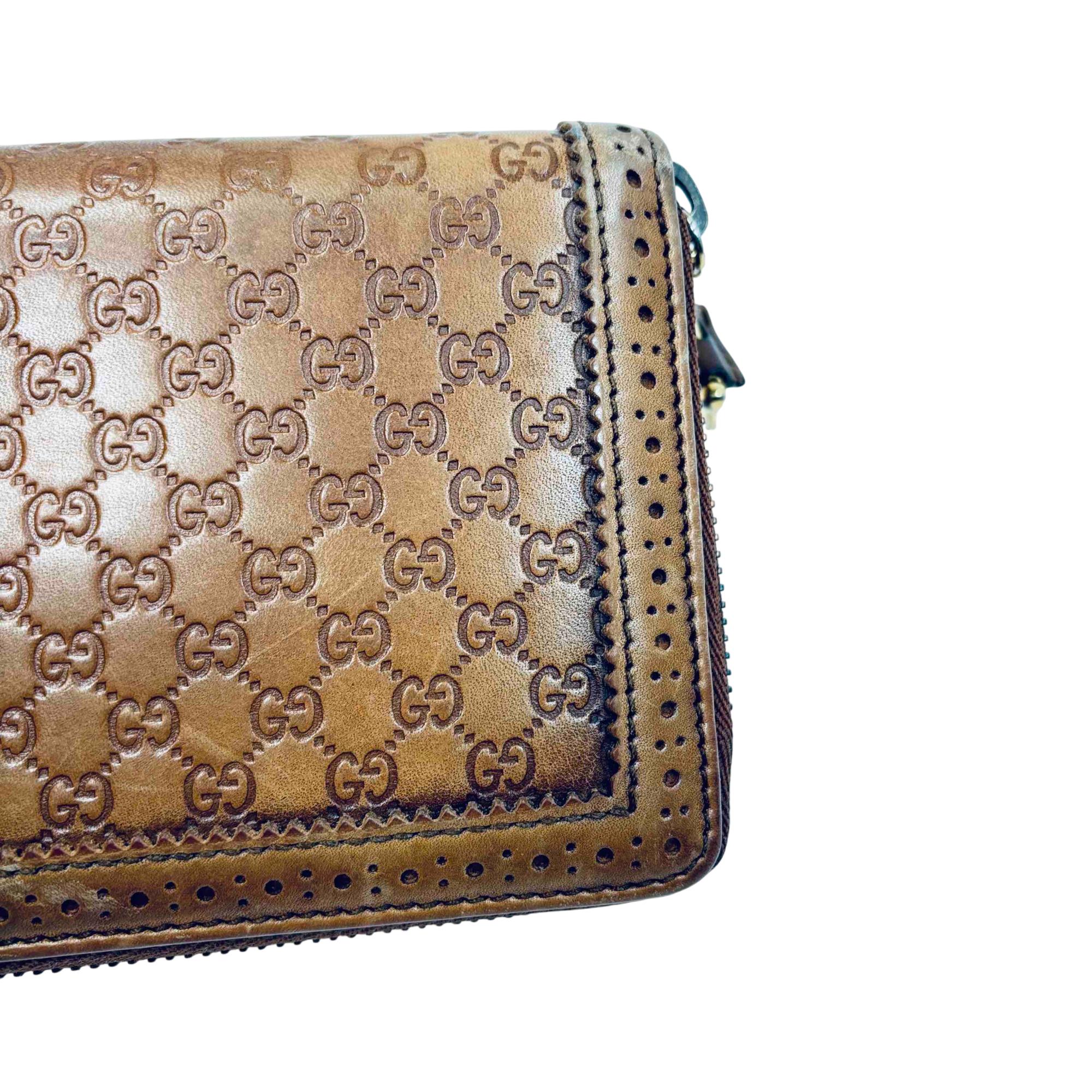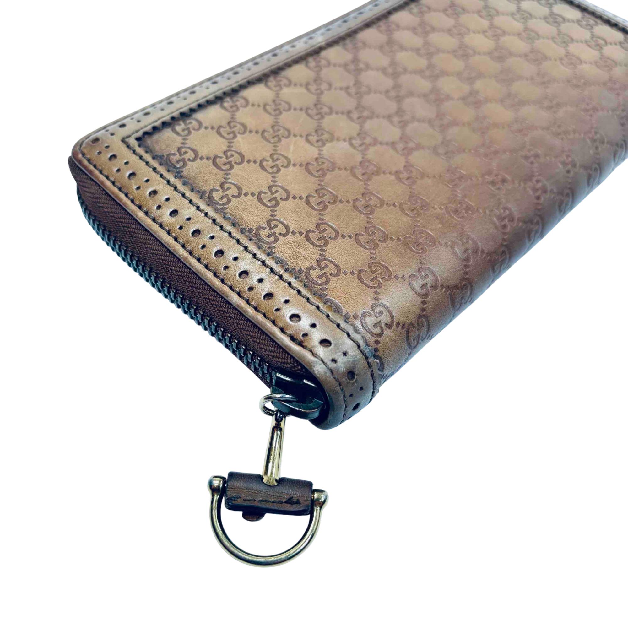 Elevate your style with this luxurious Gucci Brown Long Zip Wallet. Crafted from high-quality leather, it features Guccis iconic monogram design, offering both elegance and functionality in one sleek package. Perfect for organizing your essentials with spacious compartments and a secure zip closure, this wallet is a must-have accessory for any fashion-forward individual.