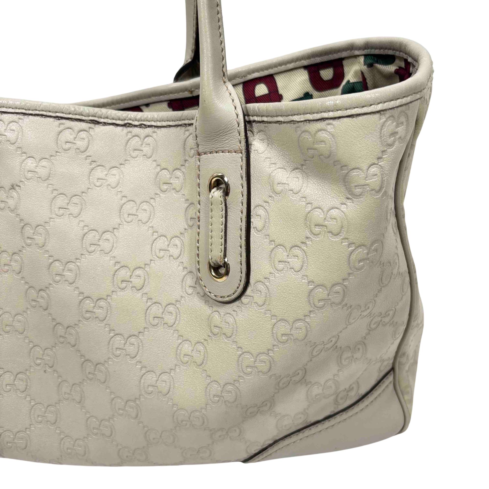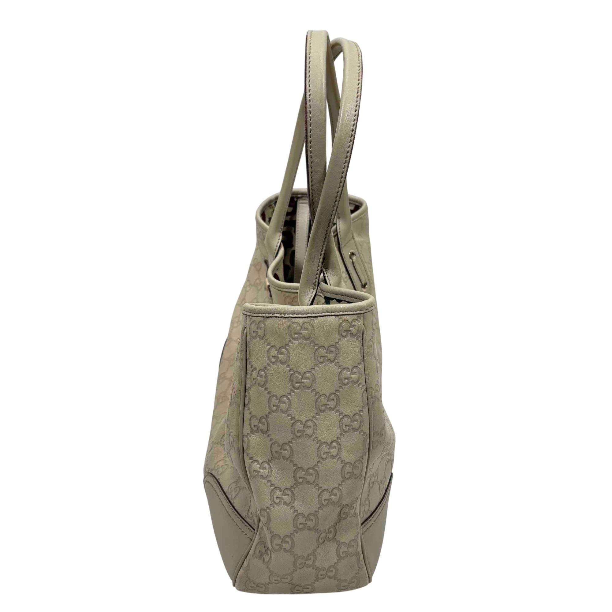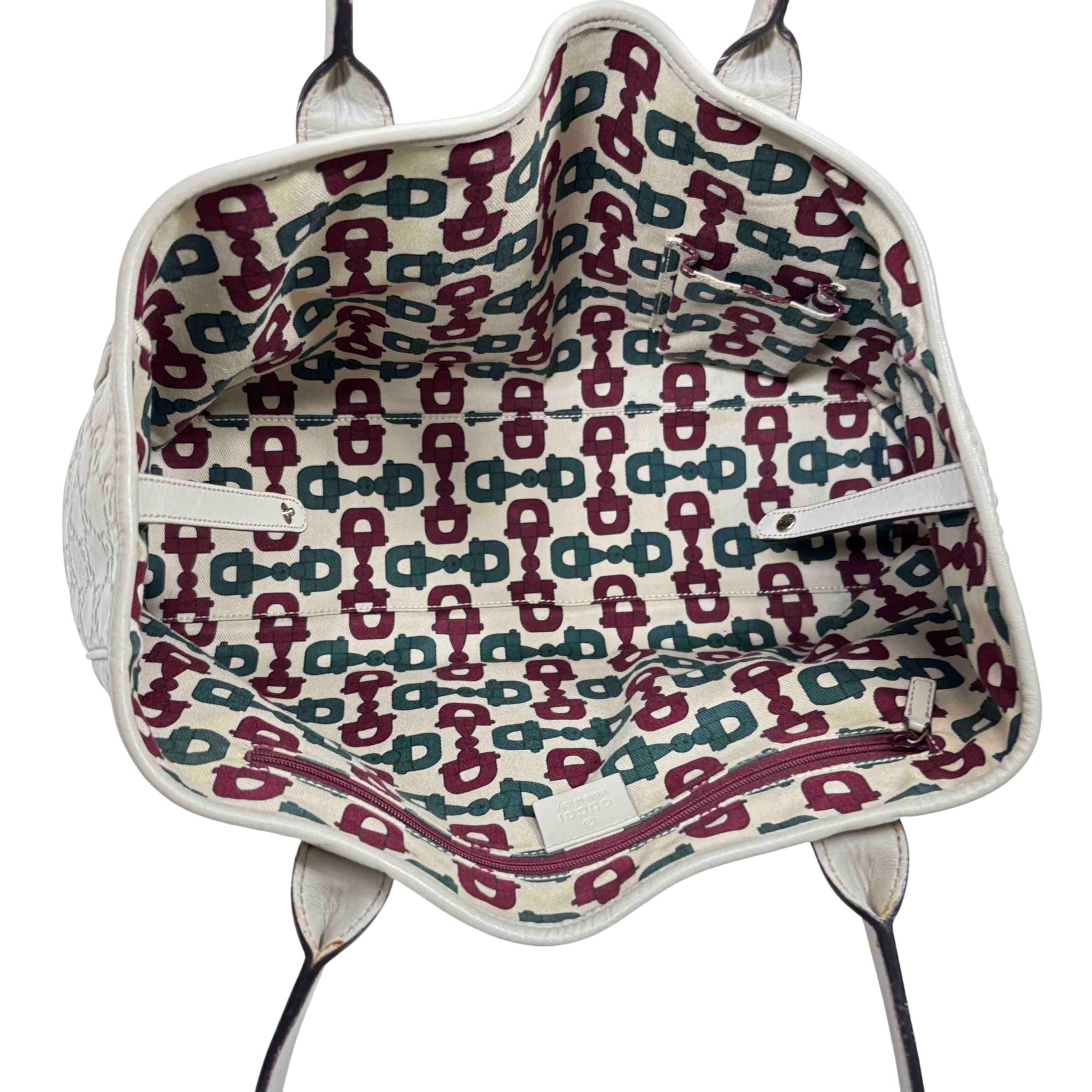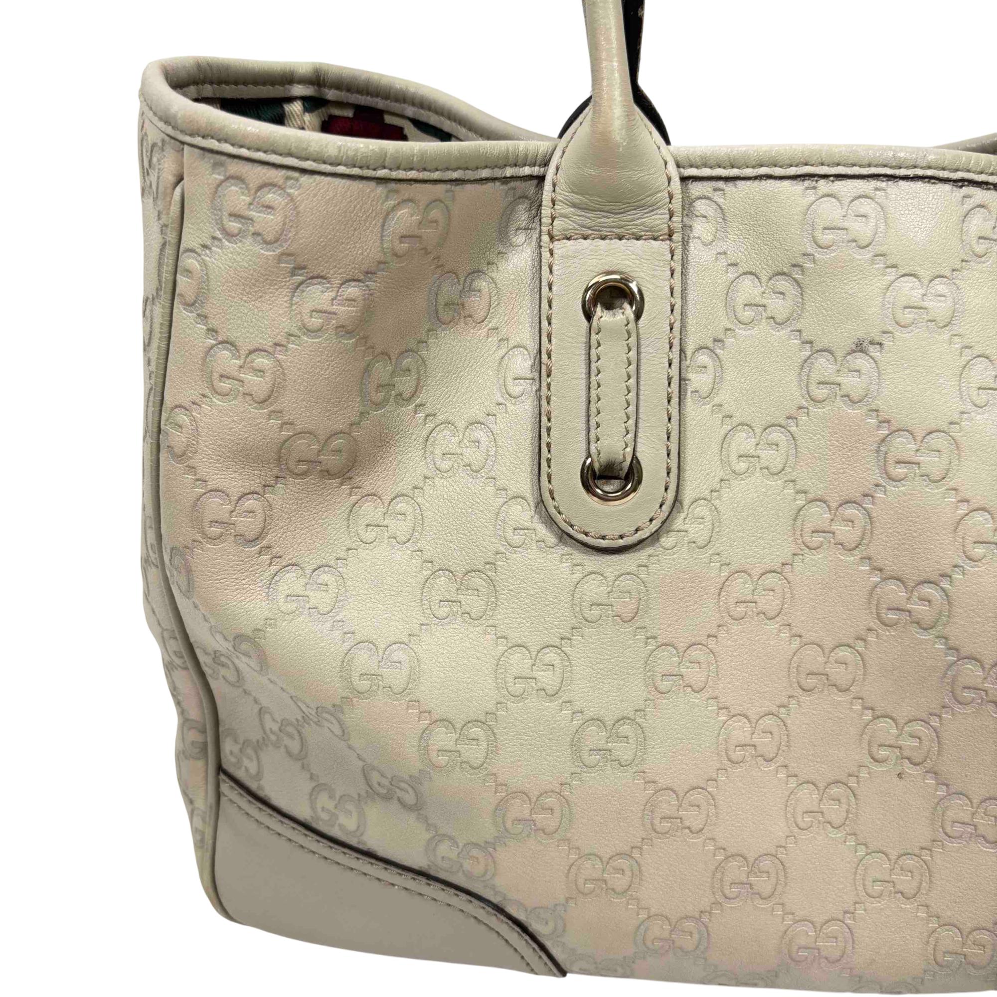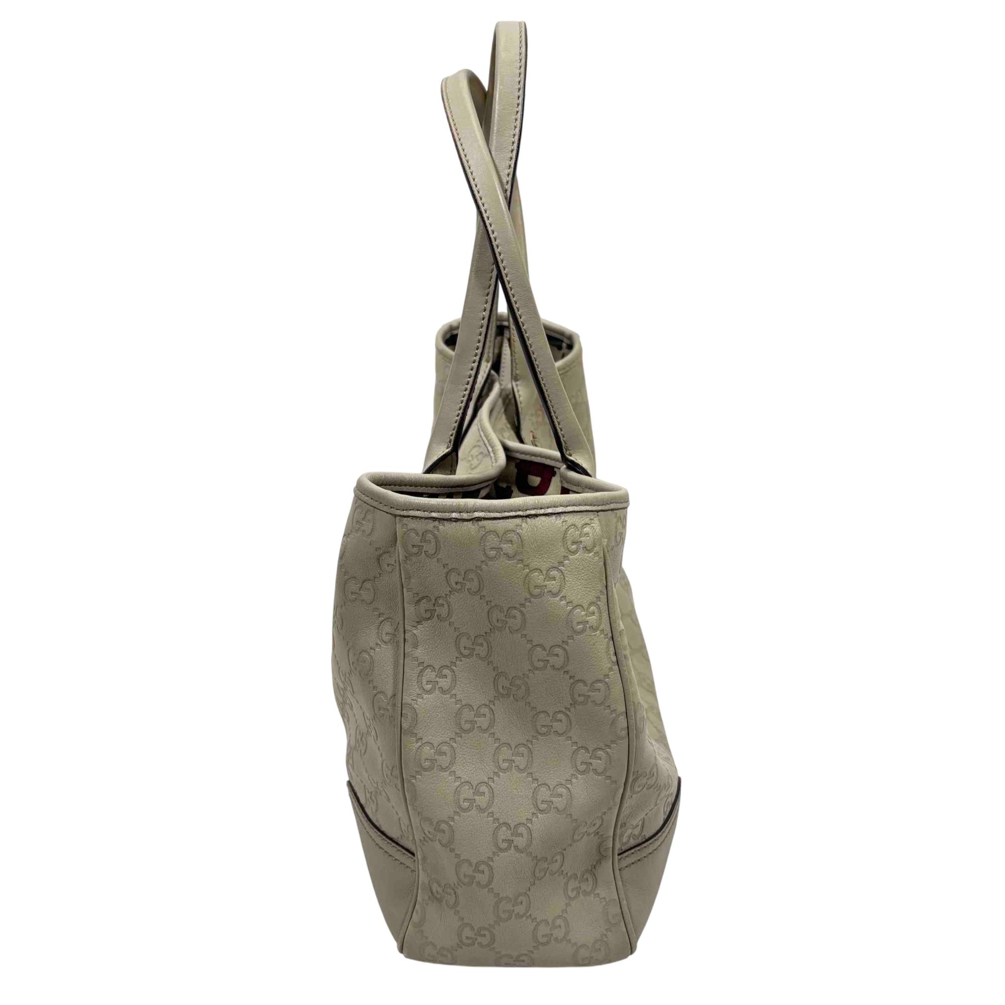 Experience timeless elegance with this Gucci Guccissima Leather Tote Bag, a true symbol of luxury and sophistication. Crafted with premium Guccissima leather, it features the iconic Gucci pattern and comes with a Certificate of Authenticity. Perfect for the discerning fashionista, this bag effortlessly complements any outfit with its classic white design and chic brown handles.