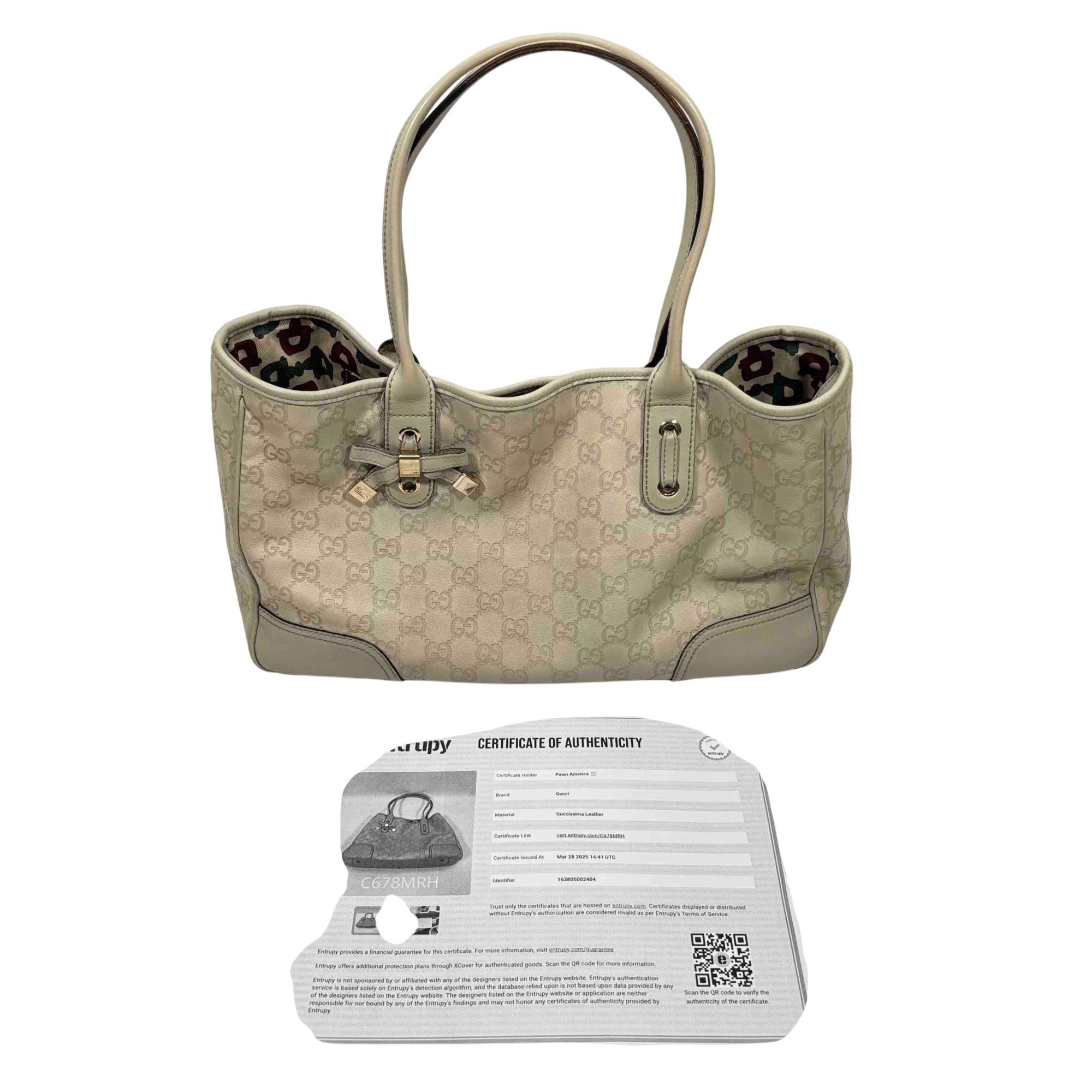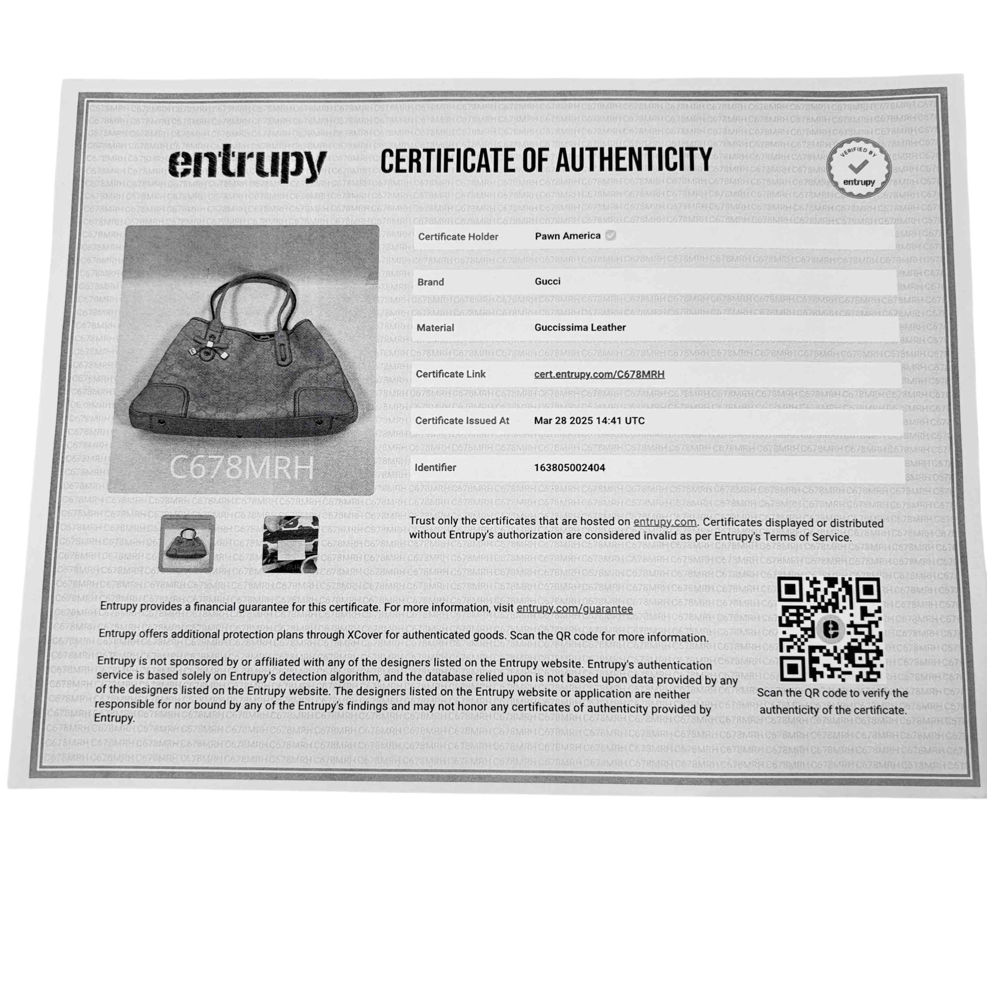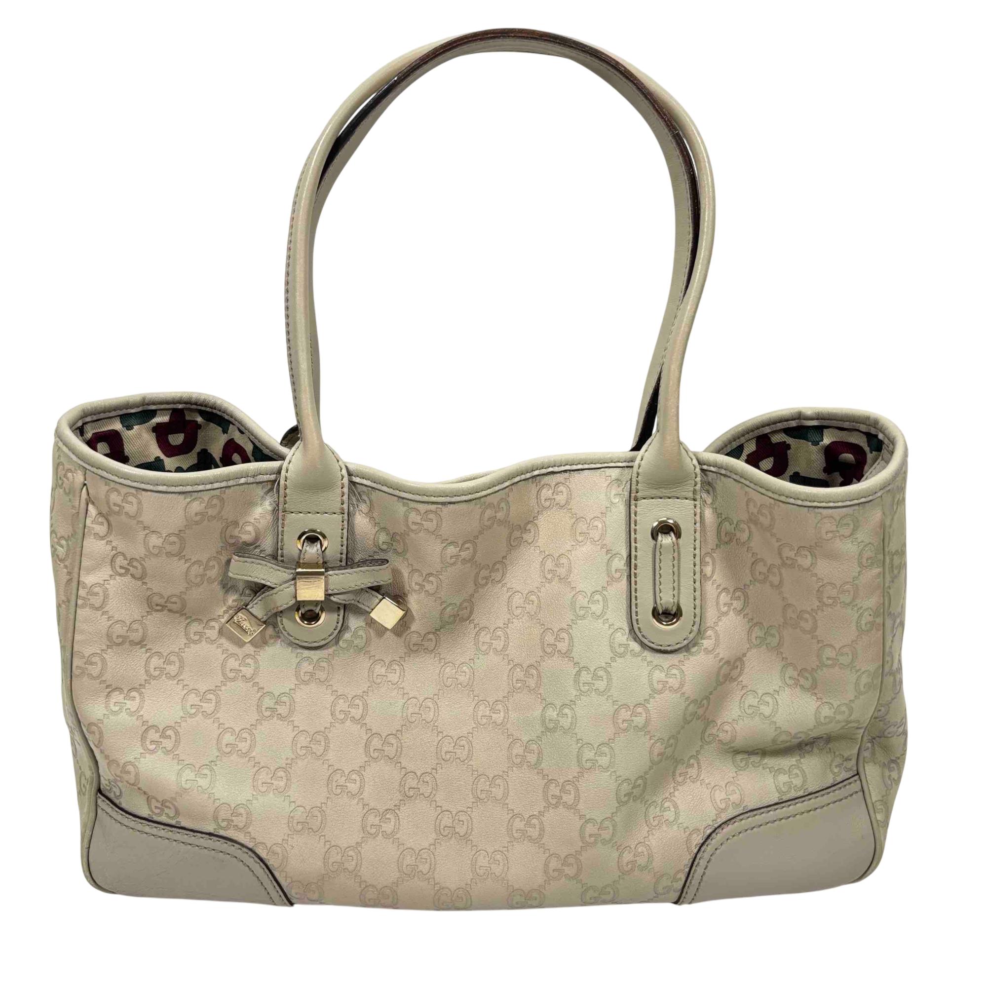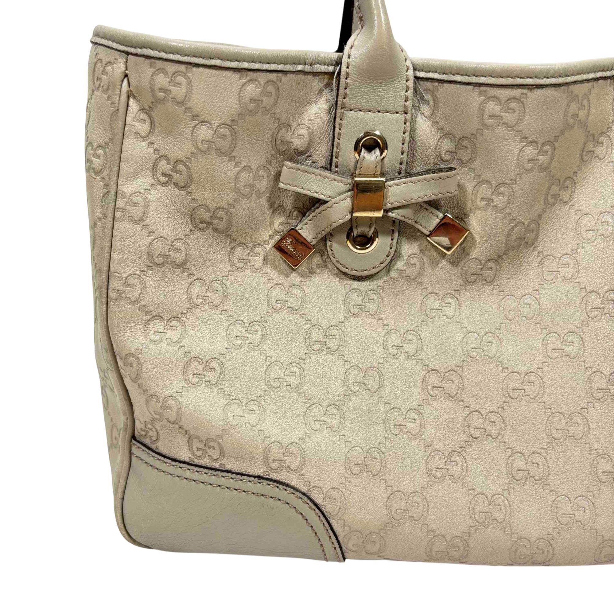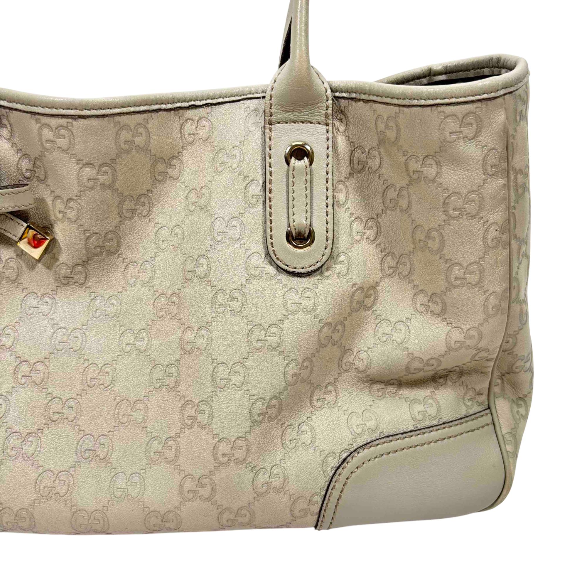 Experience timeless elegance with this Gucci Guccissima Leather Tote Bag, a true symbol of luxury and sophistication. Crafted with premium Guccissima leather, it features the iconic Gucci pattern and comes with a Certificate of Authenticity. Perfect for the discerning fashionista, this bag effortlessly complements any outfit with its classic white design and chic brown handles.