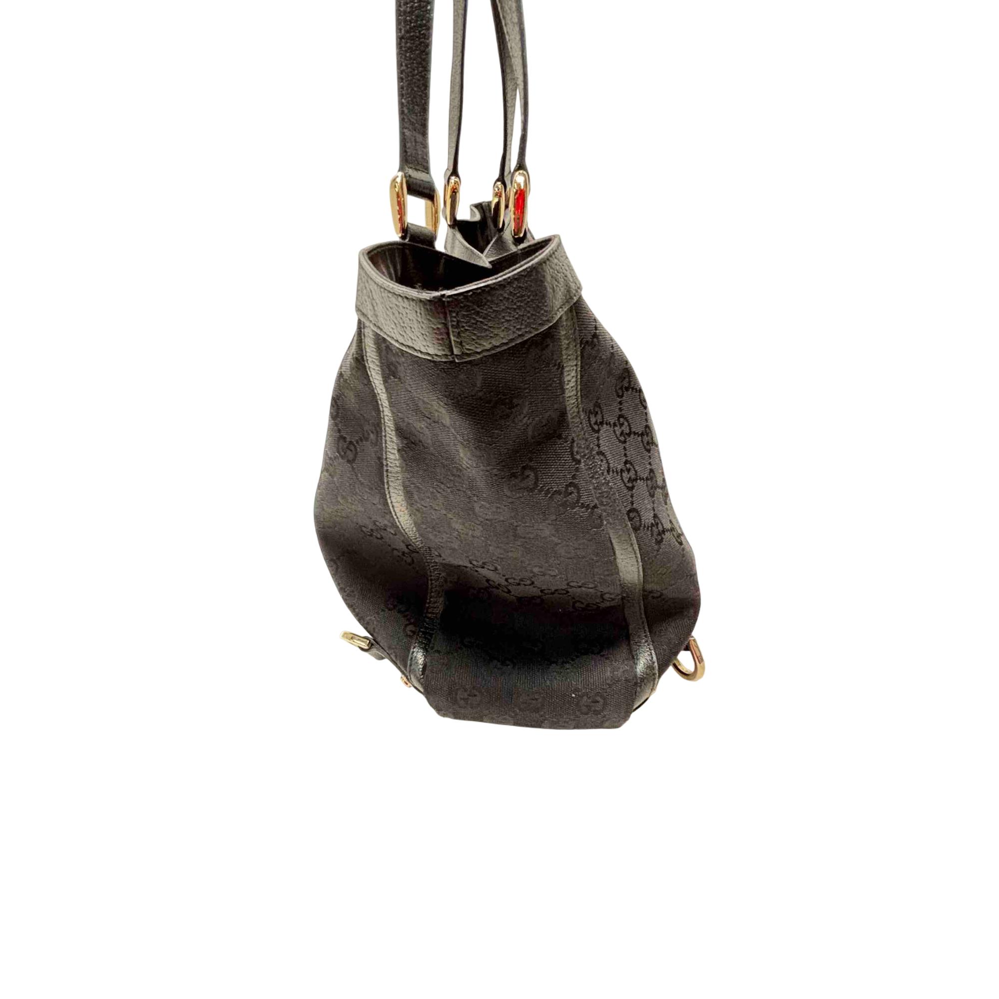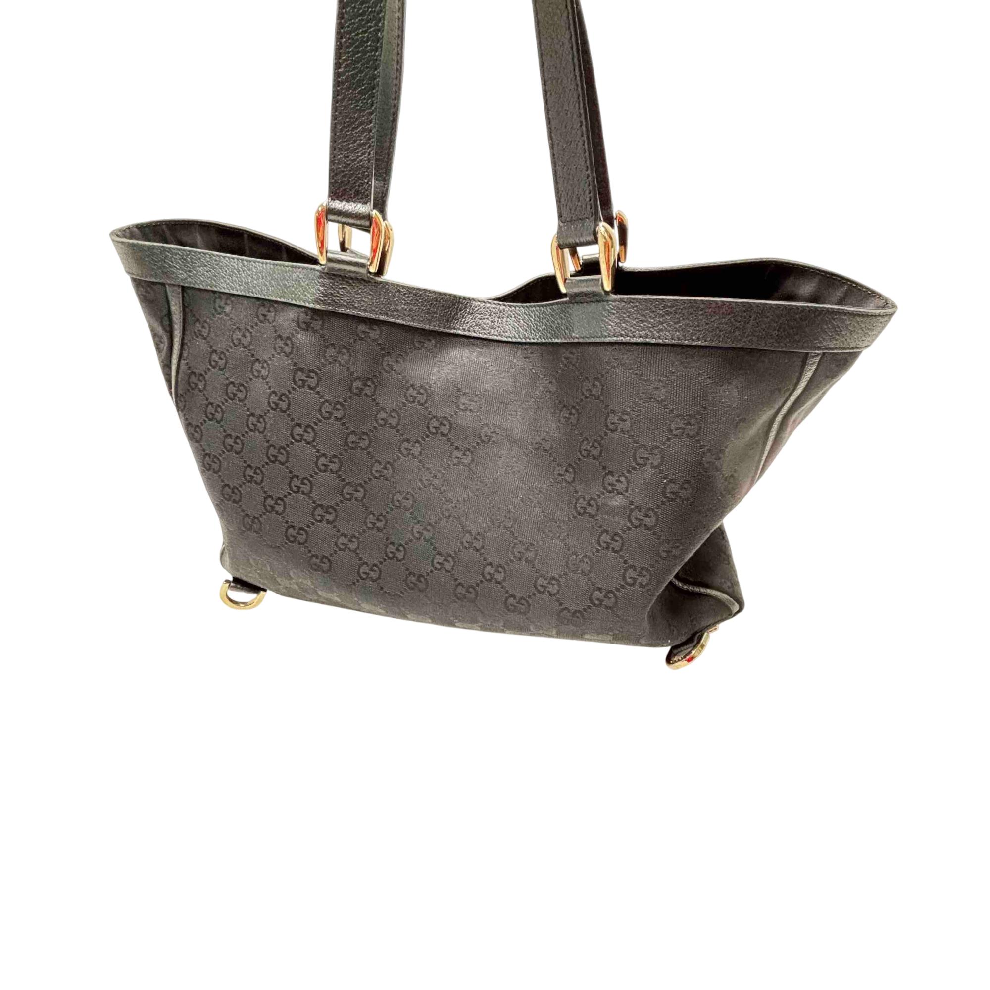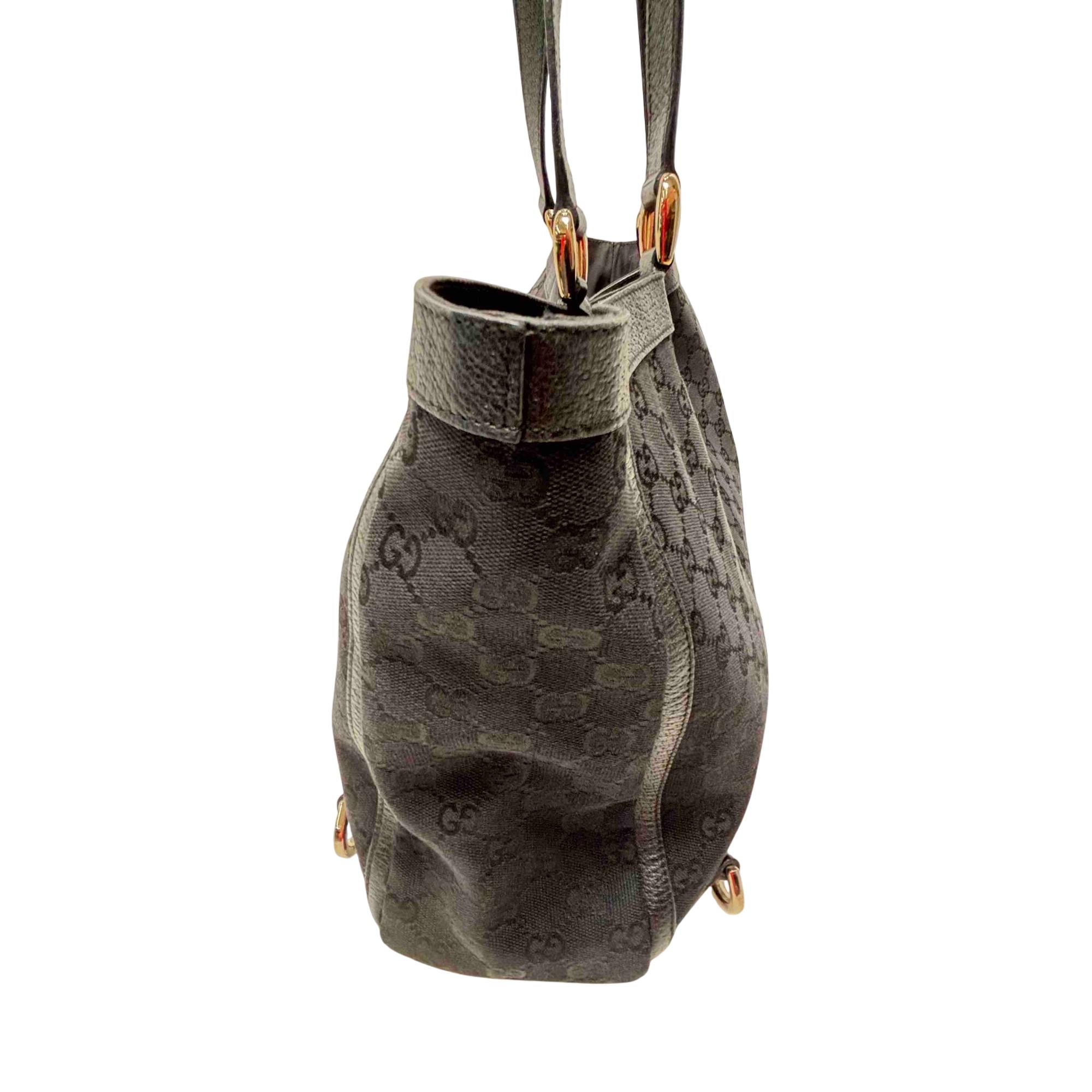 Elevate your style with this classic Gucci Black Canvas Handbag, featuring elegant gold handles and timeless design. Perfect as both a shoulder and tote bag, this high-quality fashion accessory is ideal for everyday use or special occasions, making it a must-have for any luxury collection.