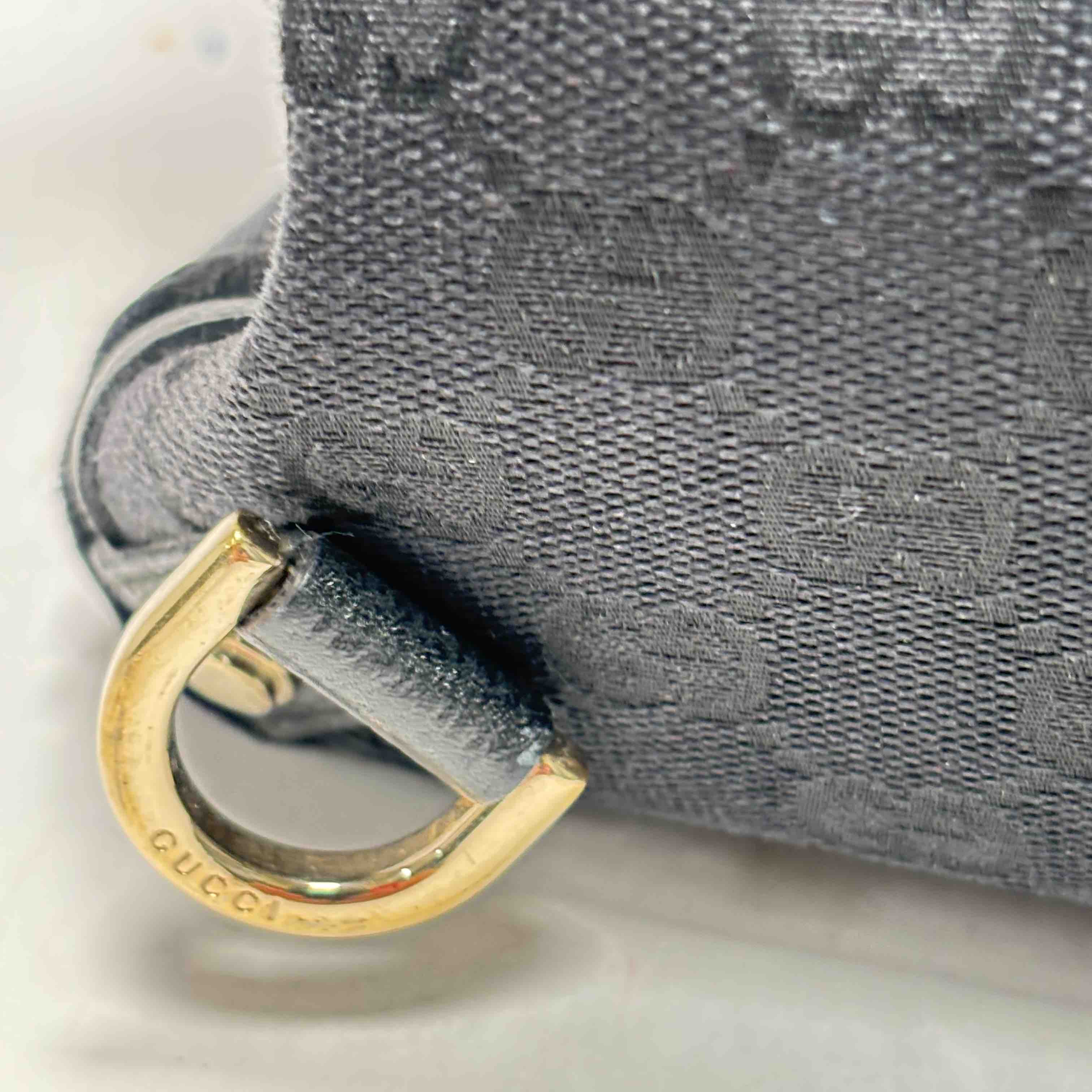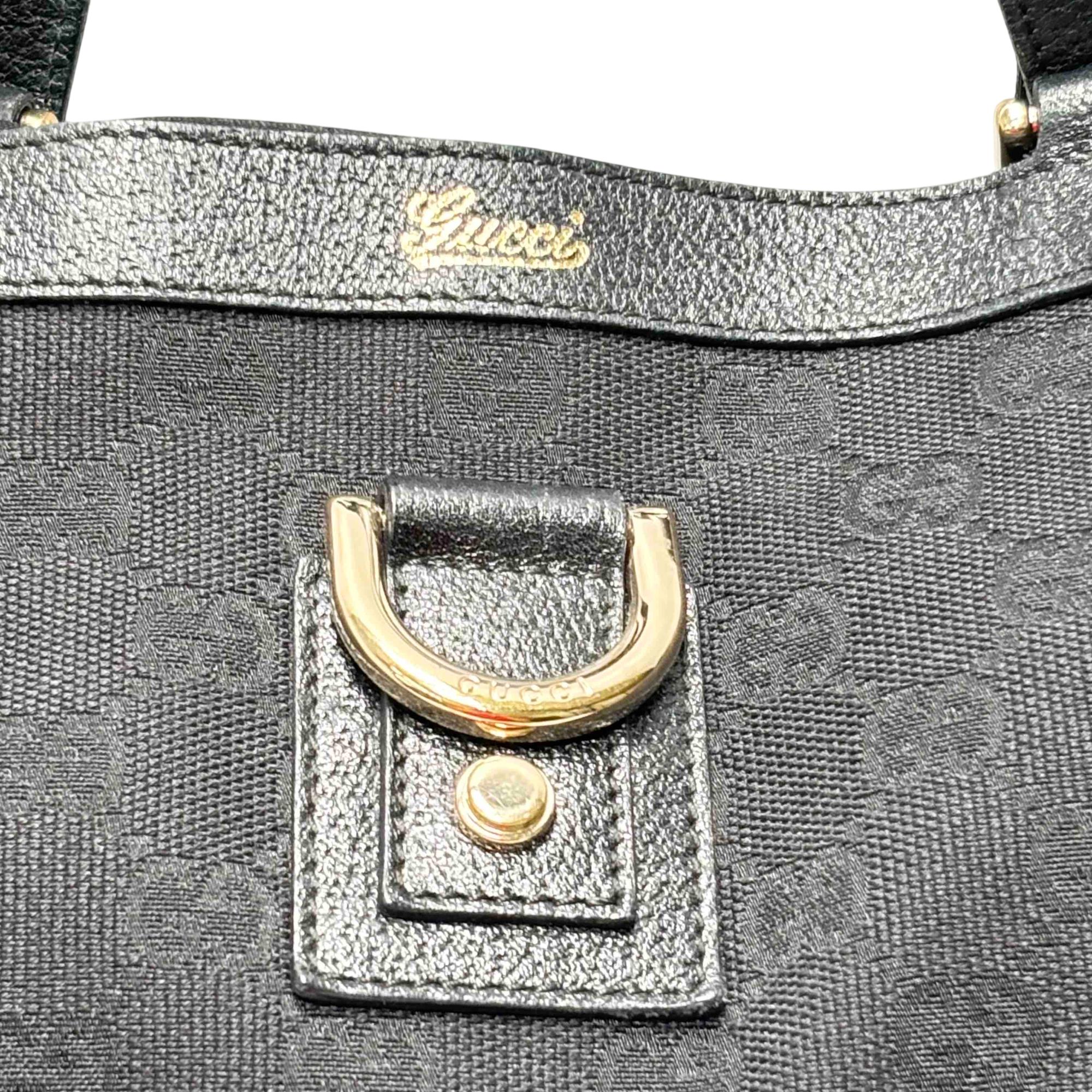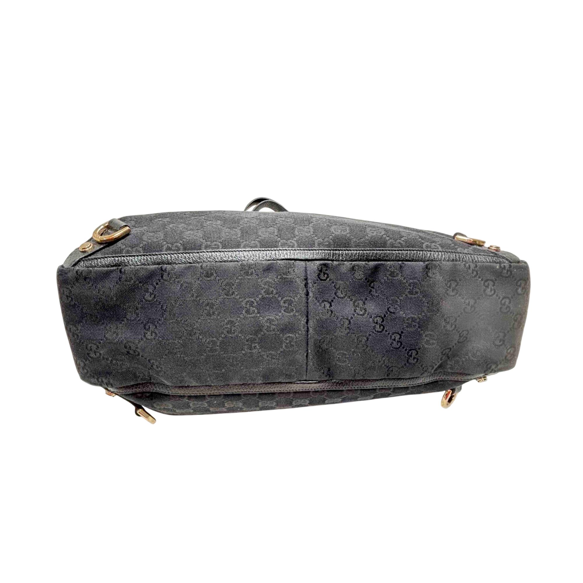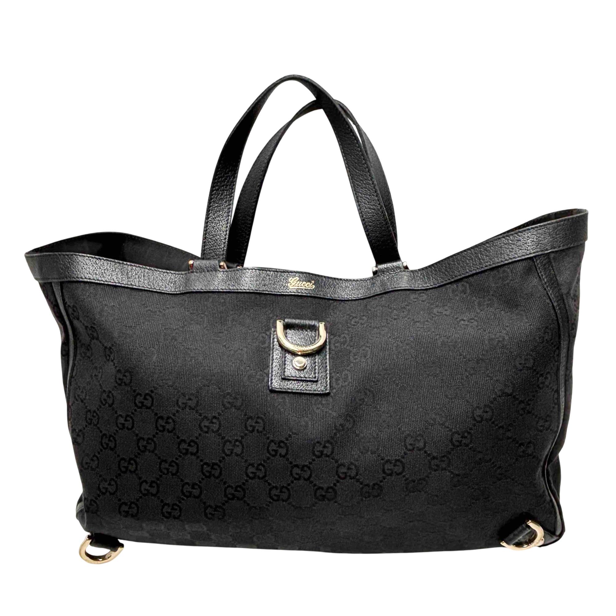 Elevate your style with this classic Gucci Black Canvas Handbag, featuring elegant gold handles and timeless design. Perfect as both a shoulder and tote bag, this high-quality fashion accessory is ideal for everyday use or special occasions, making it a must-have for any luxury collection.