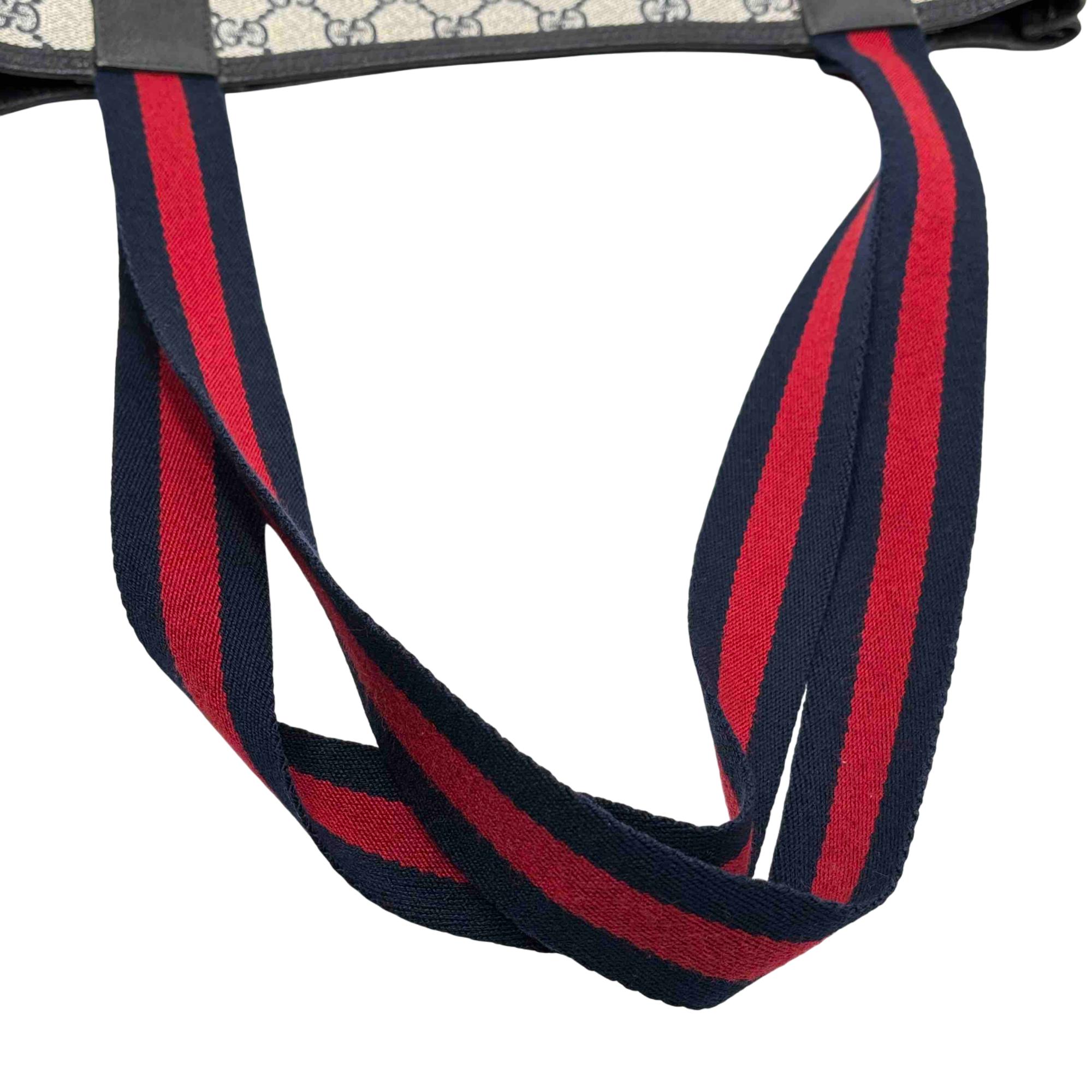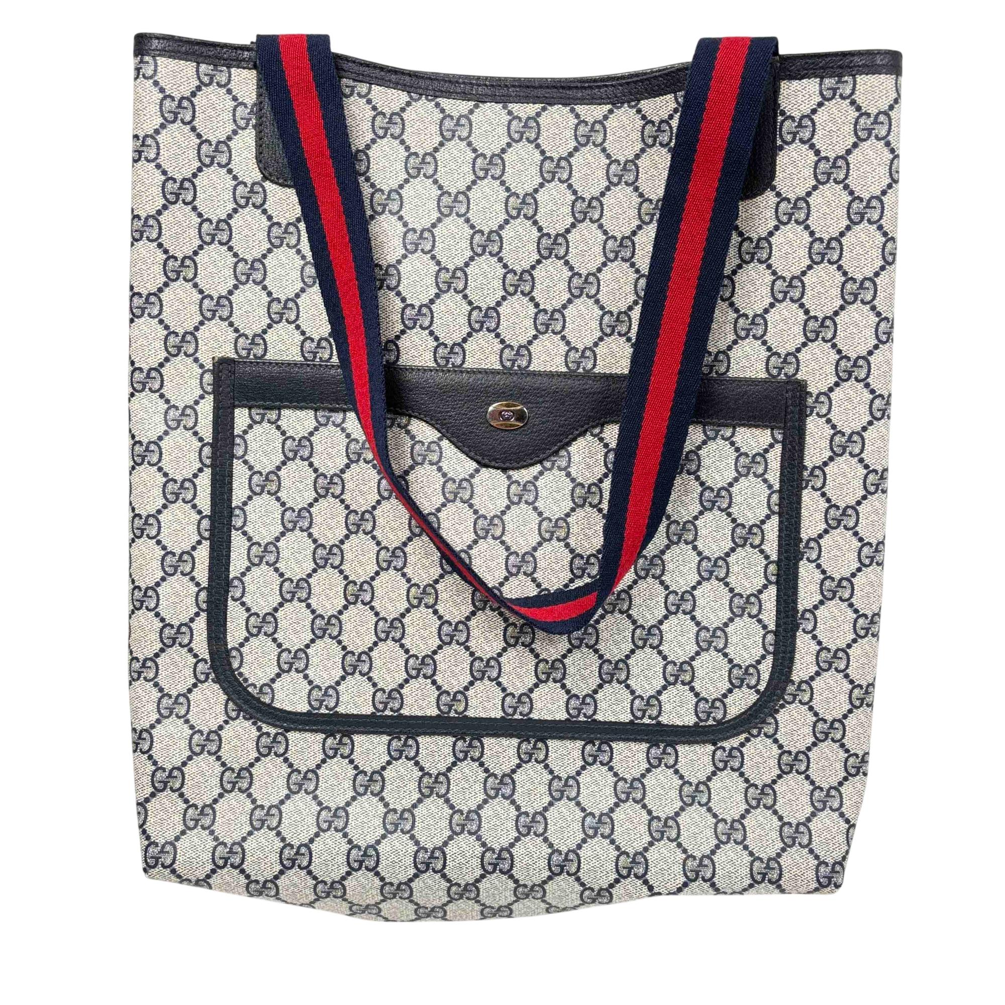 Elevate your style with the iconic Gucci Sherryline Tote. This luxurious handbag features a distinctive red and blue web strap, perfectly accentuating its elegant design. Made in Italy, this tote embodies the superior craftsmanship and timeless appeal associated with Gucci.