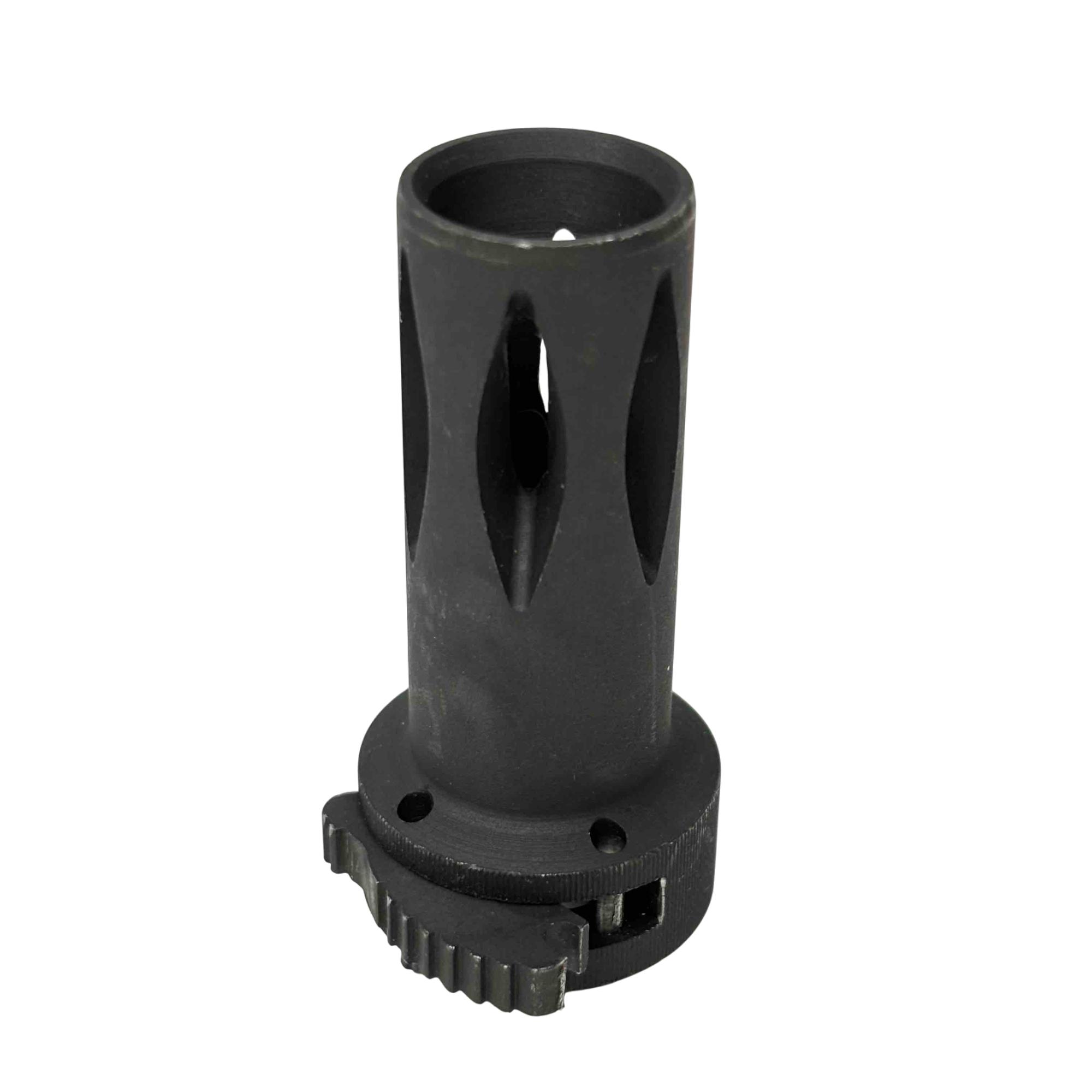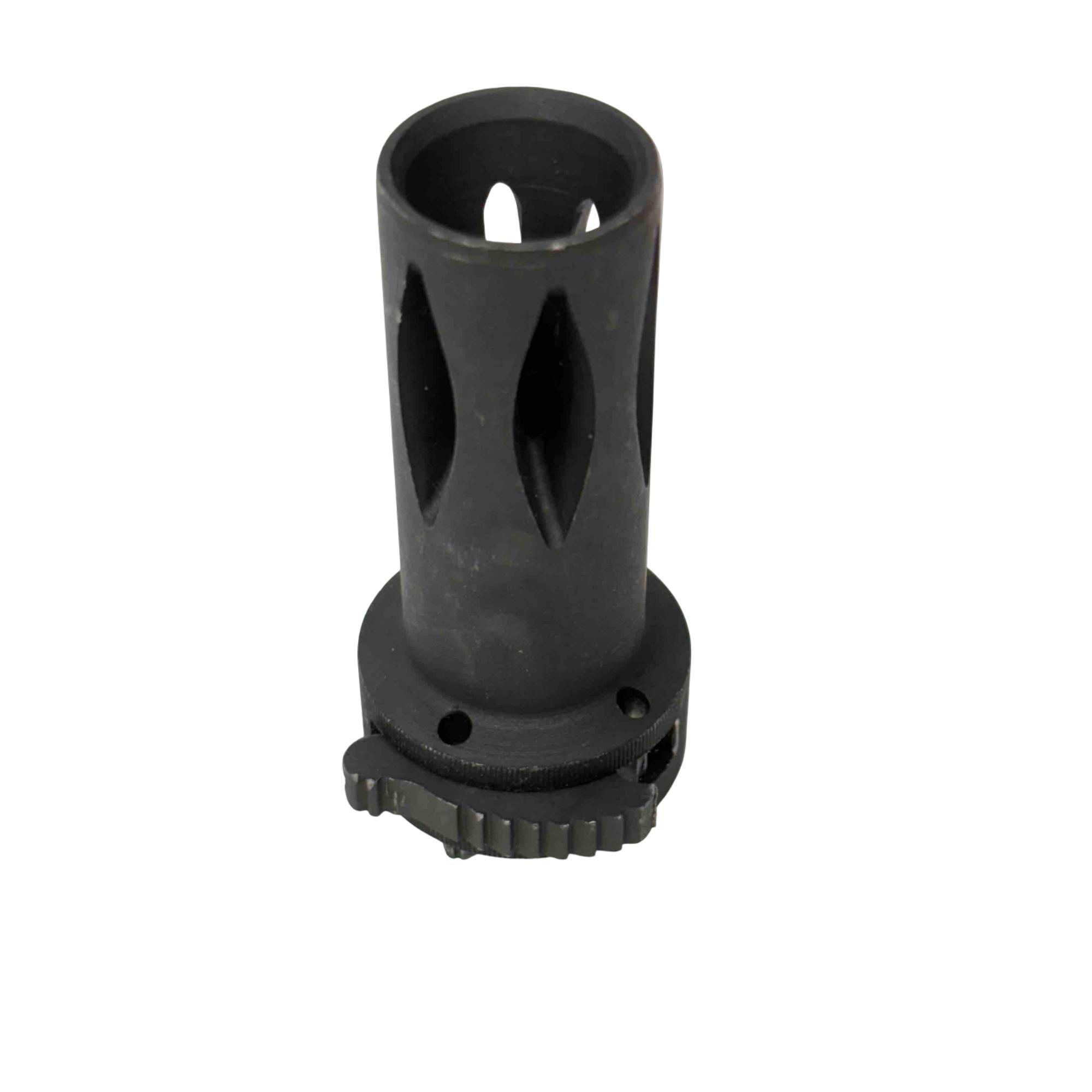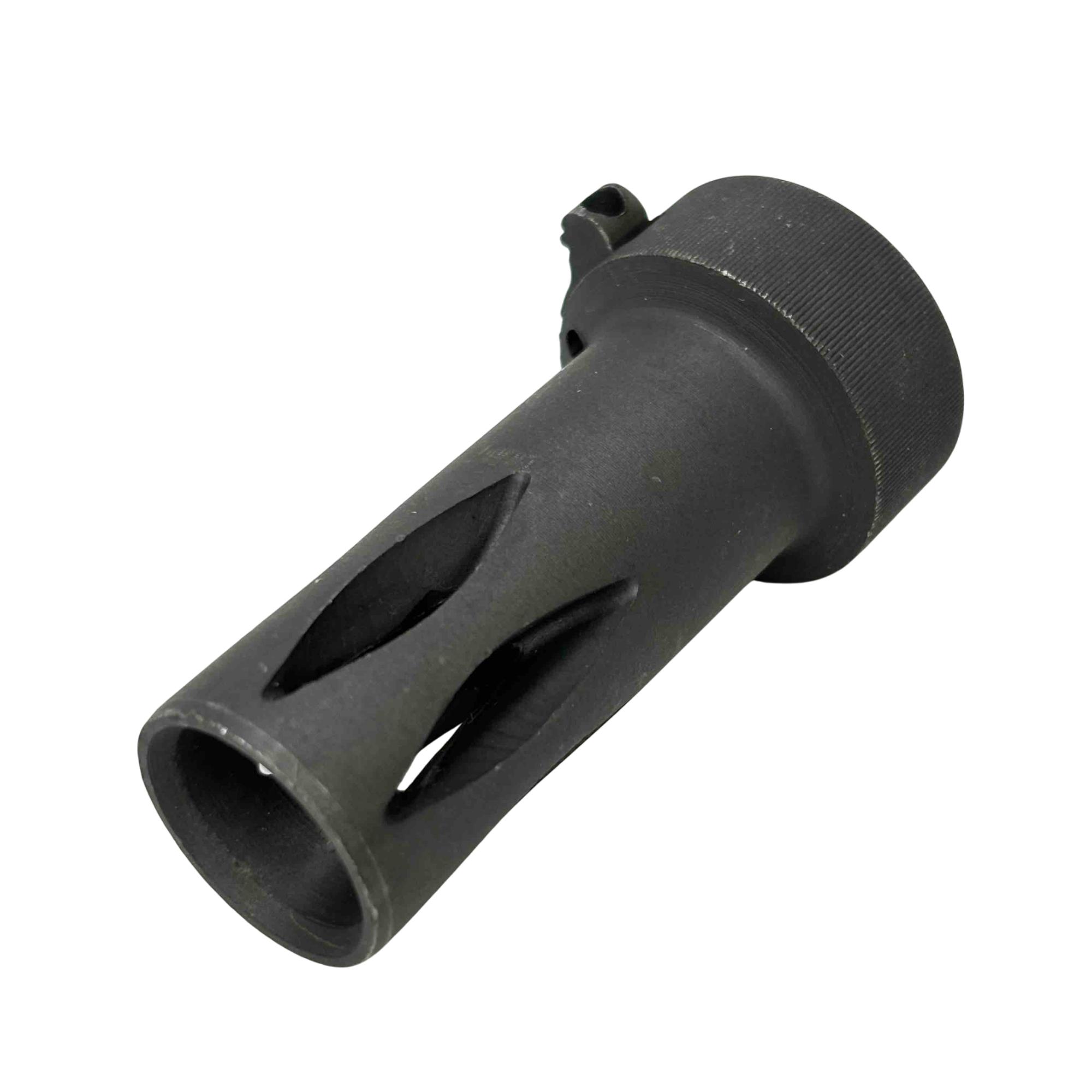 Upgrade your firearm with this HK-style Tri Lug Flash Hider designed for MP5 and similar platforms. Precision-machined and featuring a quick-attach tri-lug mounting system, this muzzle device reduces muzzle flash and enhances shooting comfort, while also allowing compatibility with a variety of suppressors. Ideal for enthusiasts and professionals seeking both form and function in their firearm accessories.