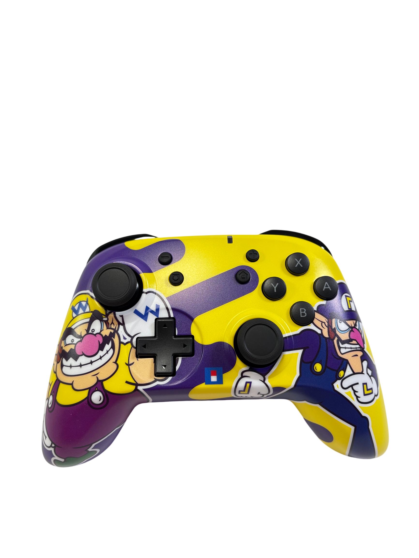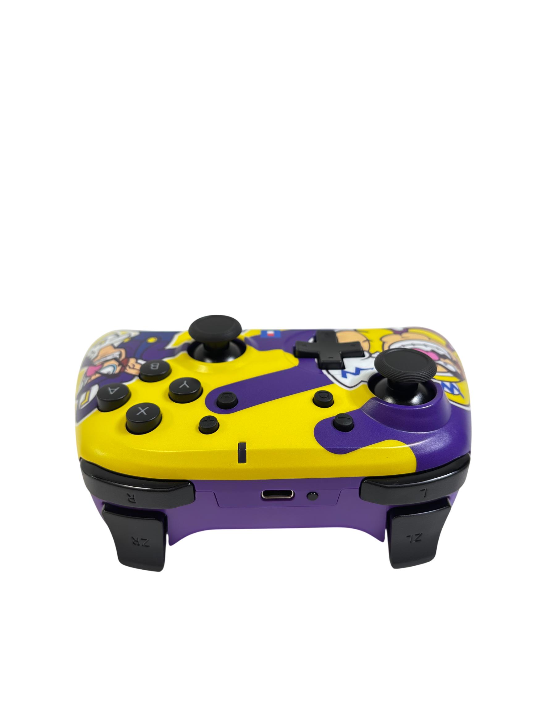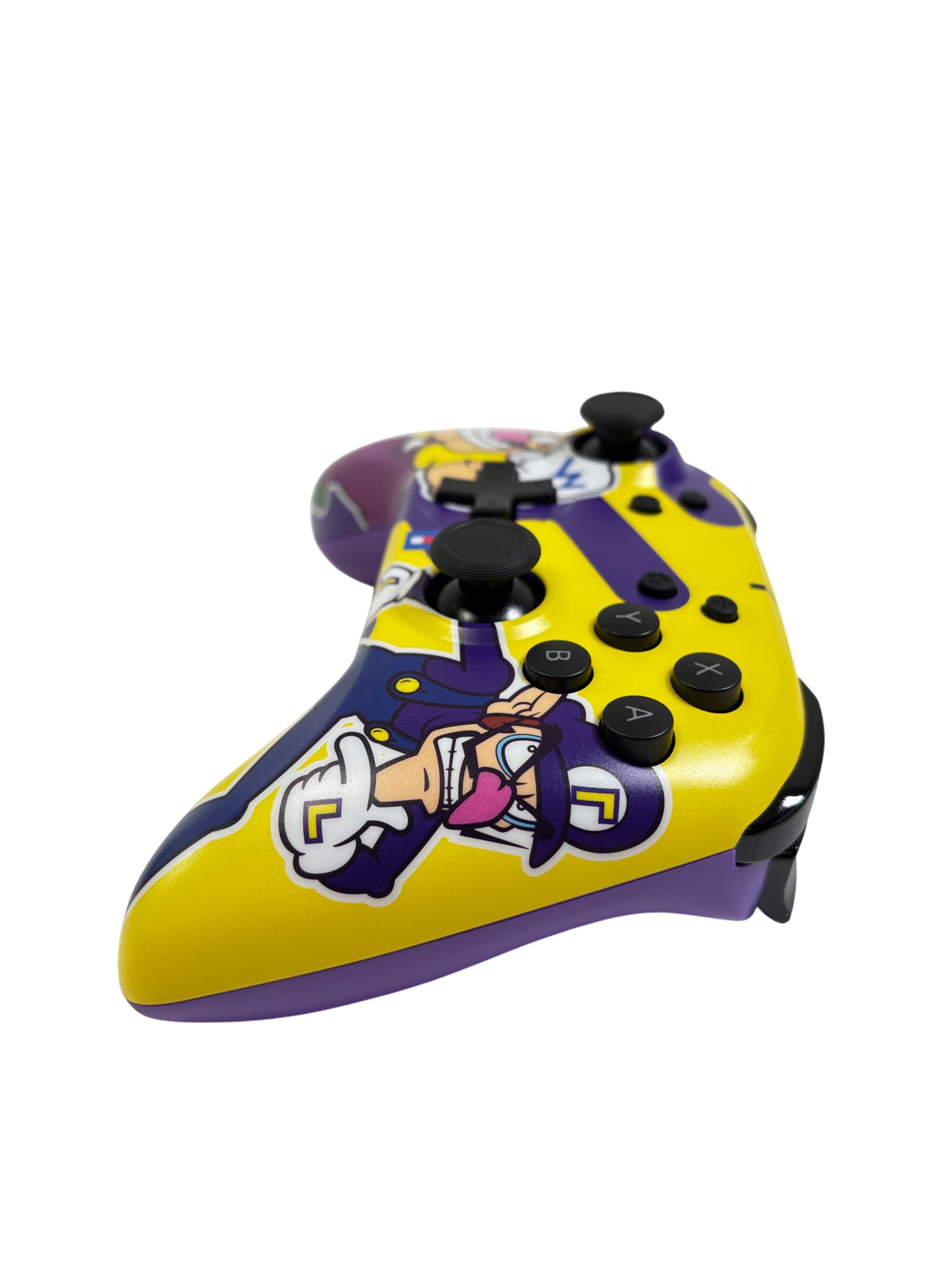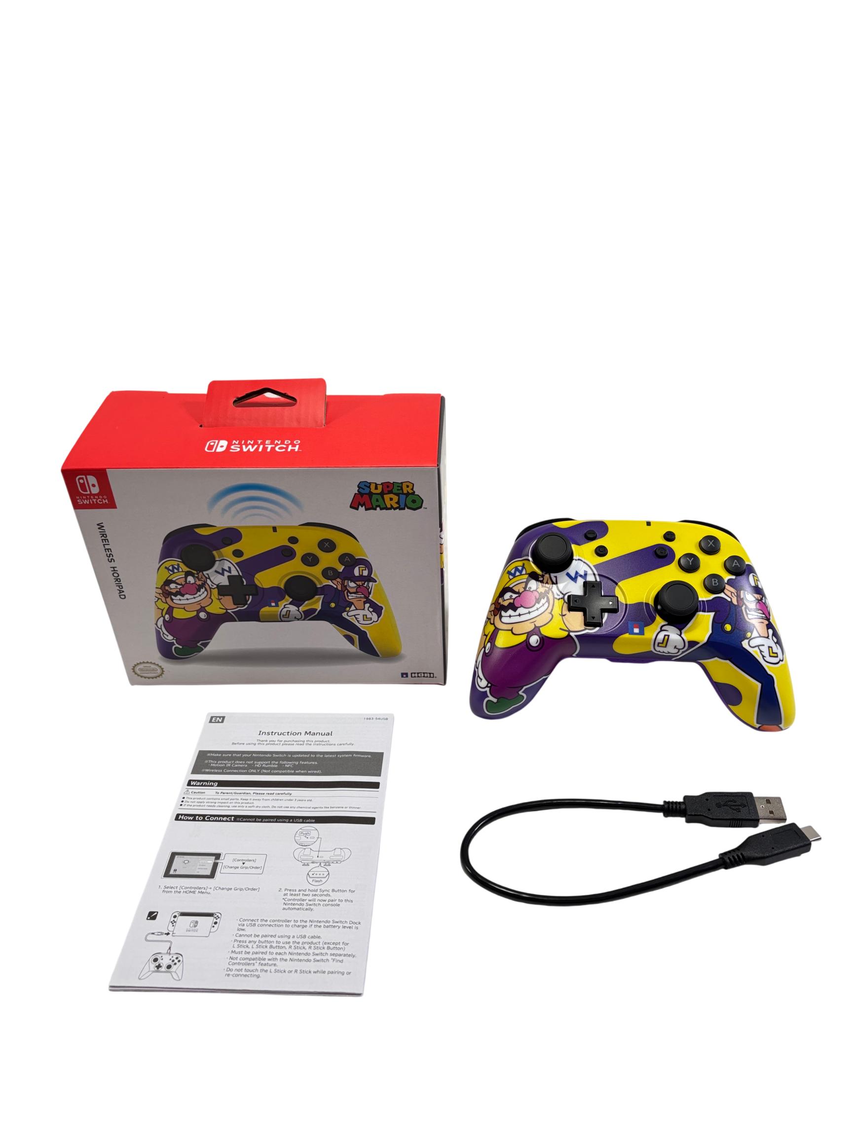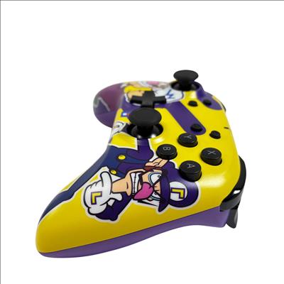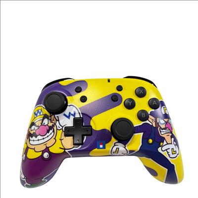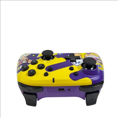 This HORI Nintendo Switch Wireless HORIPAD features a vibrant purple and yellow design inspired by the Super Mario characters Wario and Waluigi. It offers wireless connectivity to Nintendo Switch consoles with responsive buttons including A, B, X, and Y, as well as ergonomic grips for comfortable gameplay. The controller pairs easily with the console using a sync button and delivers precise control tailored for immersive gaming sessions.