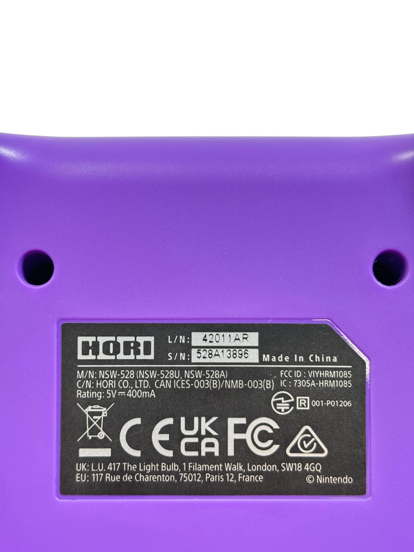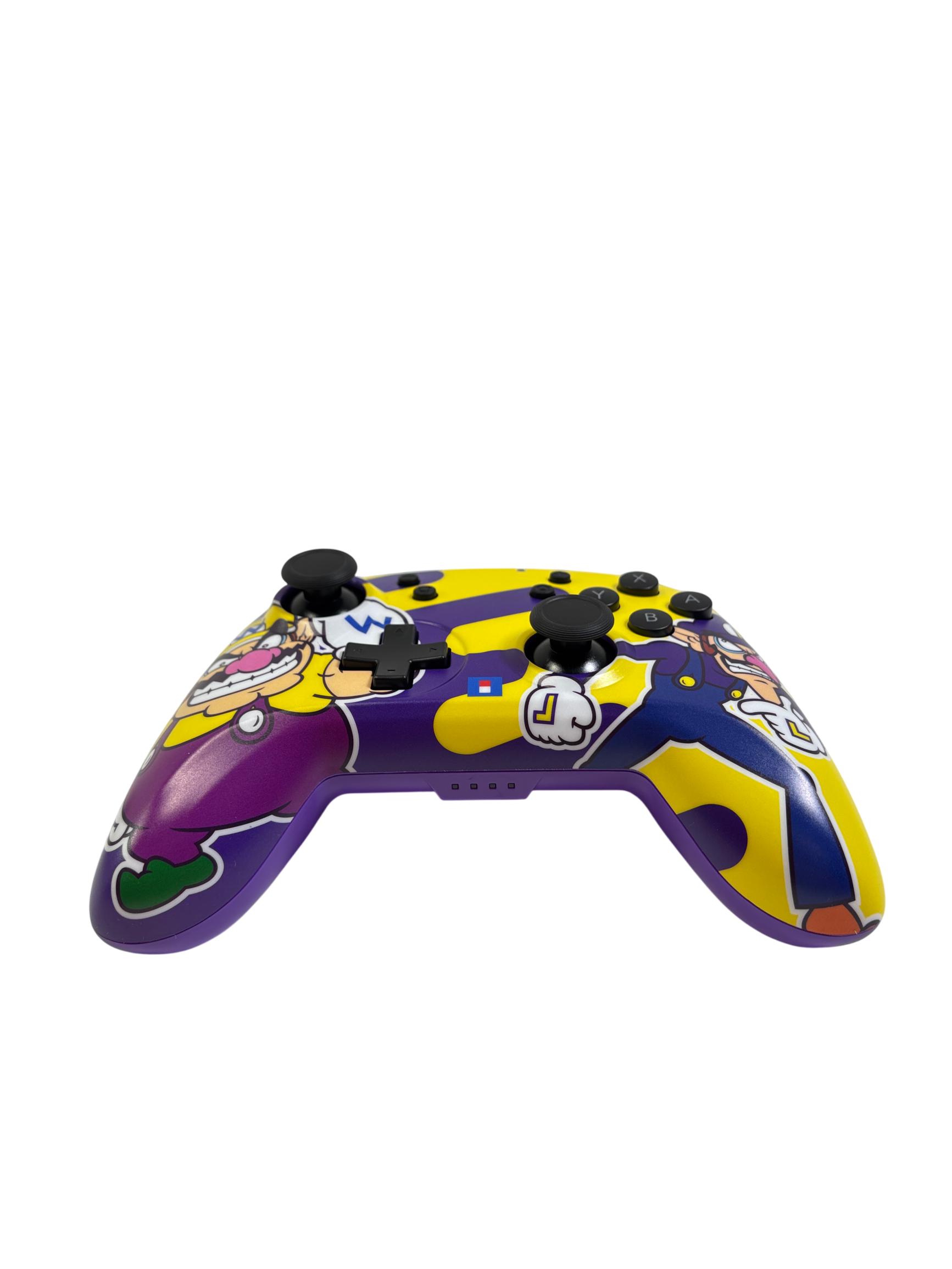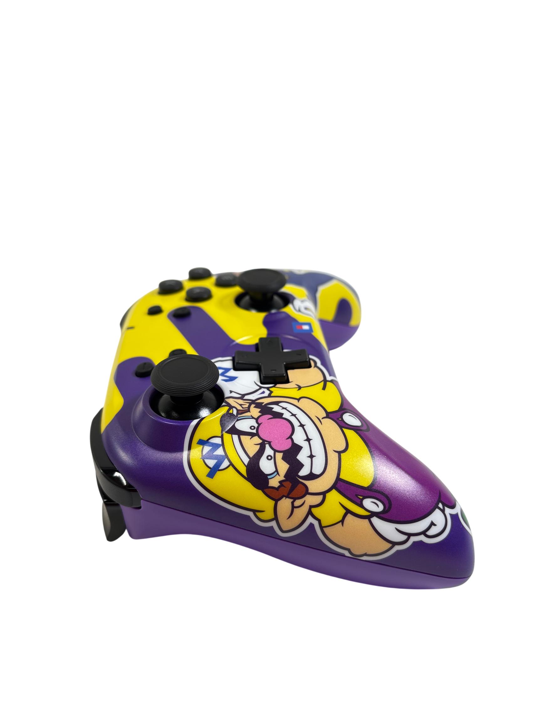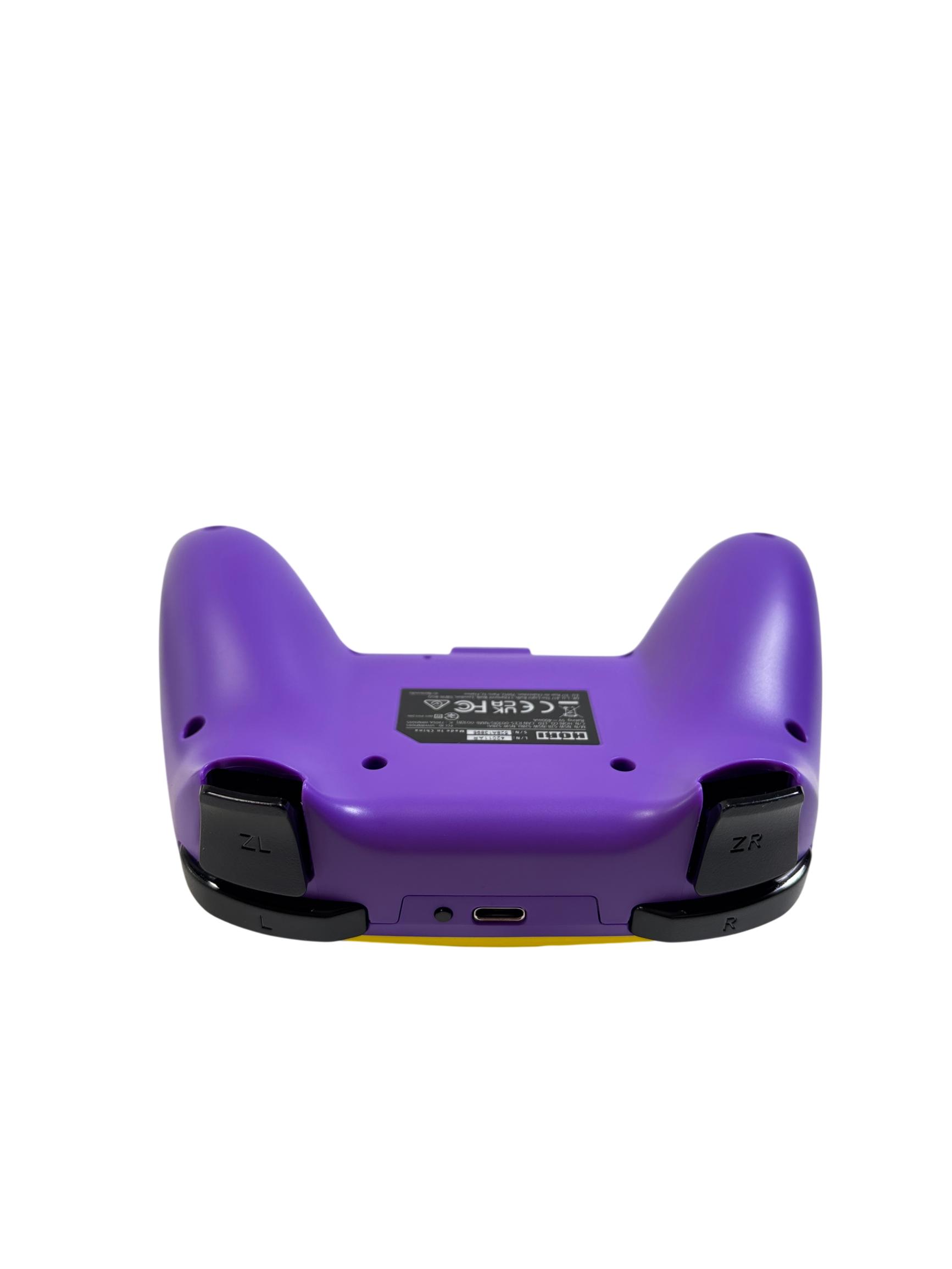 This HORI Nintendo Switch Wireless HORIPAD features a vibrant purple and yellow design inspired by the Super Mario characters Wario and Waluigi. It offers wireless connectivity to Nintendo Switch consoles with responsive buttons including A, B, X, and Y, as well as ergonomic grips for comfortable gameplay. The controller pairs easily with the console using a sync button and delivers precise control tailored for immersive gaming sessions.