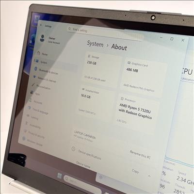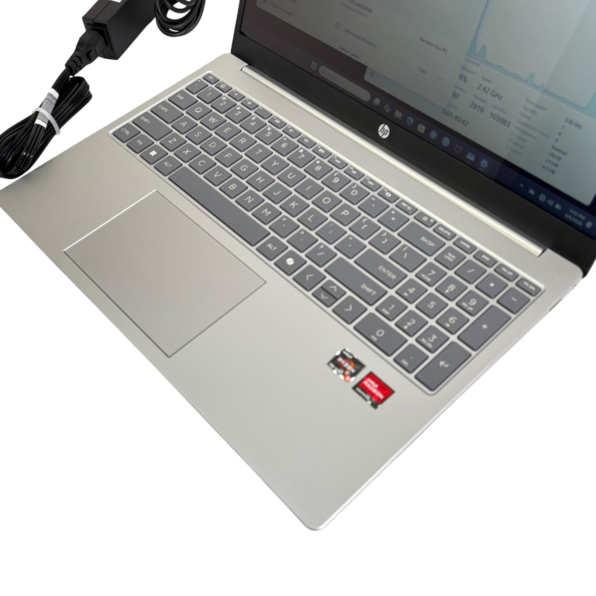 HP 15-FC0245DX Laptop features a 15.6-inch Full HD display and is powered by an AMD Ryzen 5 7520U processor with integrated Radeon graphics, delivering efficient performance for everyday computing needs. Equipped with 16GB of RAM and a 256GB solid-state drive, this laptop runs smoothly on Windows 11 Home, offering a responsive and modern user experience.