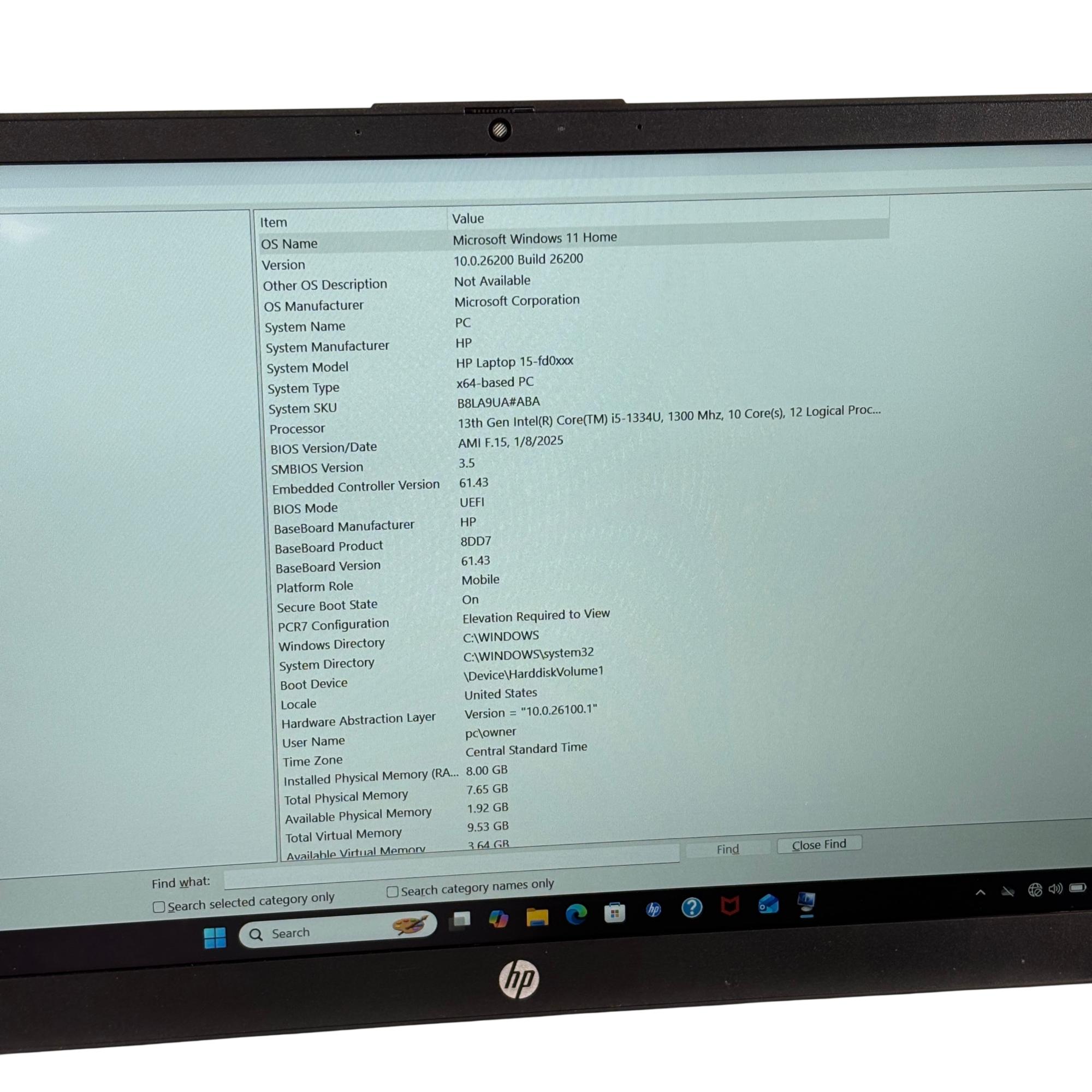 The HP 15-fd0150wm is a versatile laptop designed for productivity and entertainment, featuring a 15.6 inch touchscreen display for intuitive navigation. Powered by an Intel Core i5-1334U processor with a 1.3GHz base speed and 8GB of RAM, this machine provides reliable performance for daily tasks and multitasking. The 512GB solid state drive offers ample storage space and quick boot times for your essential files and applications.