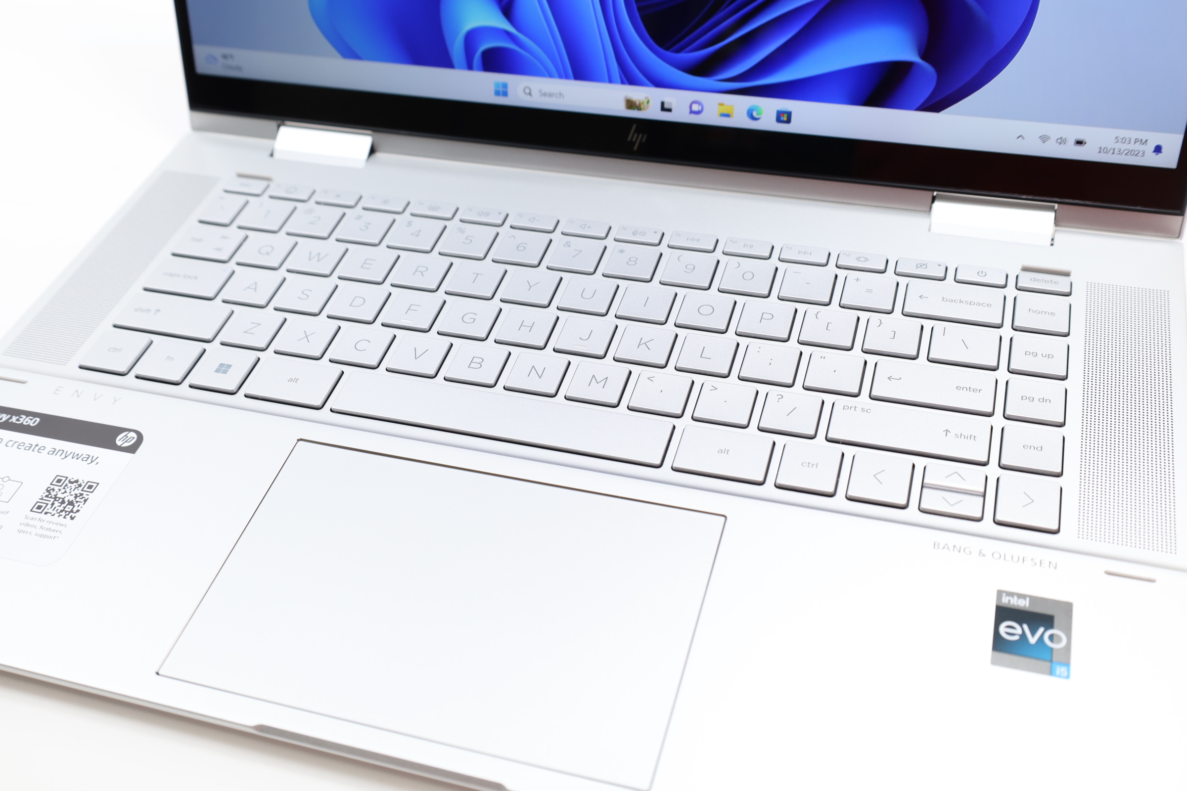 A 15.6-inch touchscreen display with a sharp 1920 x 1080 resolution, powered by an Intel Core i5-1235U 10-Core processor and 8GB DDR4 RAM for robust performance. It features a speedy 256GB SSD, Intel Iris Xe Graphics, and offers versatile connectivity with Bluetooth 5, Wi-Fi 6, Thunderbolt 4, and USB ports. Additionally, it includes a webcam, SD card reader, headphone/microphone jack, and HDMI port. The laptop's 360-degree flip design adds flexibility, and it combines a slim bezel design with an 88% screen-to-body ratio for an immersive viewing experience. With Bang & Olufsen-tuned dual speakers, a backlit keyboard, and a metal design, it offers both style and functionality.