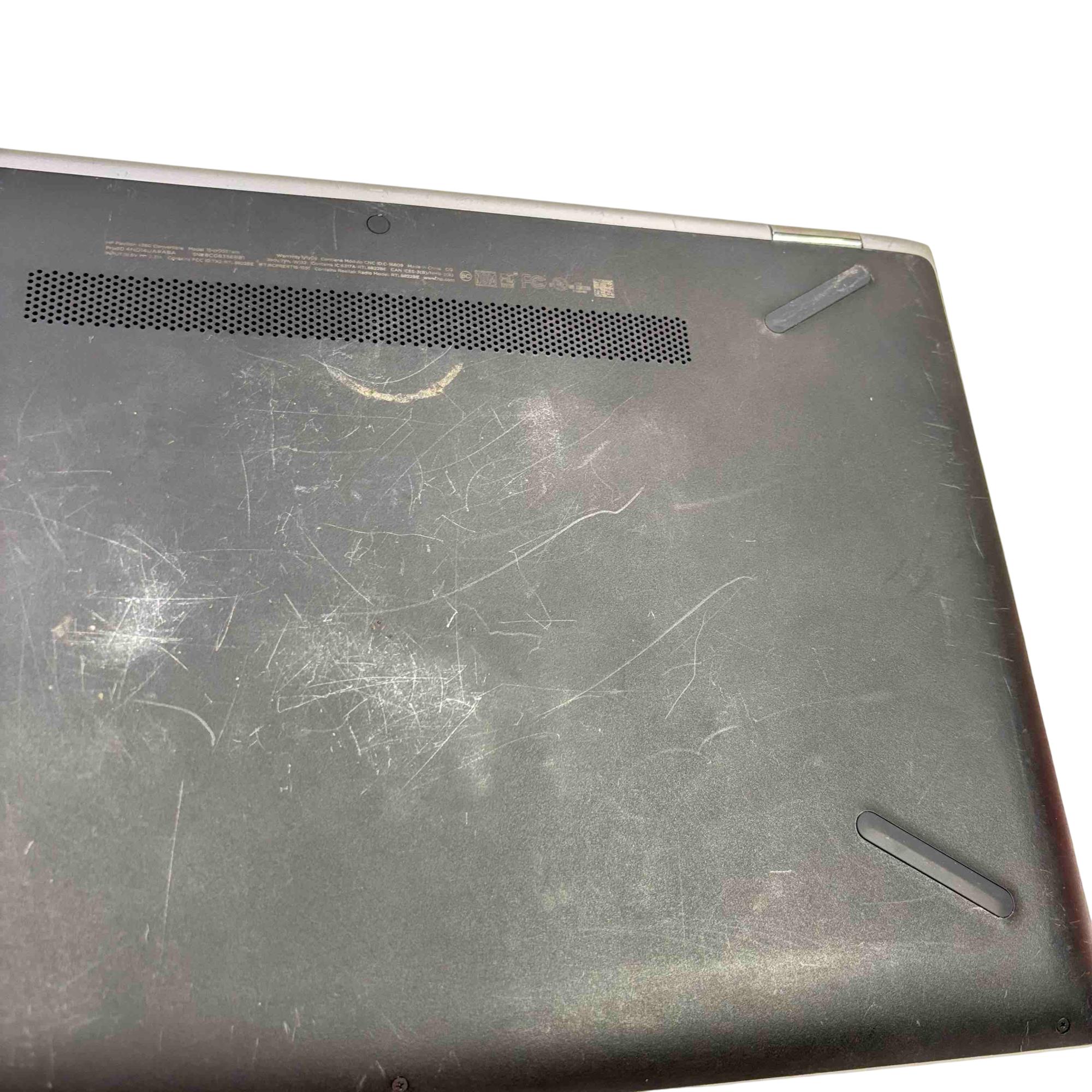 Previously owned. The HP laptop has been tested and works well and is in fair condition that has many mild scratches on the back cover, many stains and light scratches on the top and scratches on the HP logo. See photos for details.