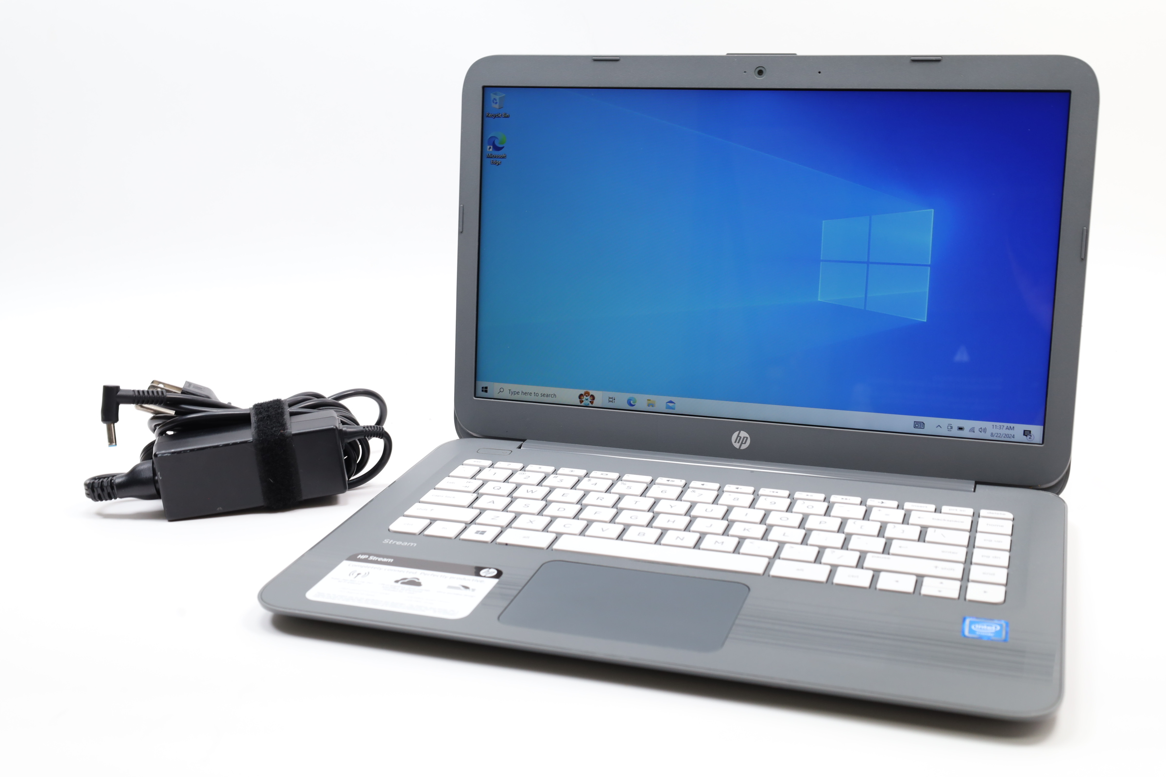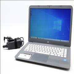 A compact laptop featuring an Intel Celeron N3060 dual-core processor running at 1.6GHz, paired with 4GB of DDR3L RAM for basic multitasking. It includes 32GB of eMMC storage, suitable for light file storage and everyday tasks. The laptop has a 14-inch display with a 1366 x 768 resolution and is equipped with Intel HD Graphics for handling standard visual content. Connectivity options include Bluetooth 4.2, Wi-Fi 5, and a range of ports: an SD card slot, a headphone/microphone jack, an HDMI port, two USB 3.1 Gen 1 Type-A ports, and one USB 2.0 Type-A port. A built-in webcam supports video calls and conferencing.