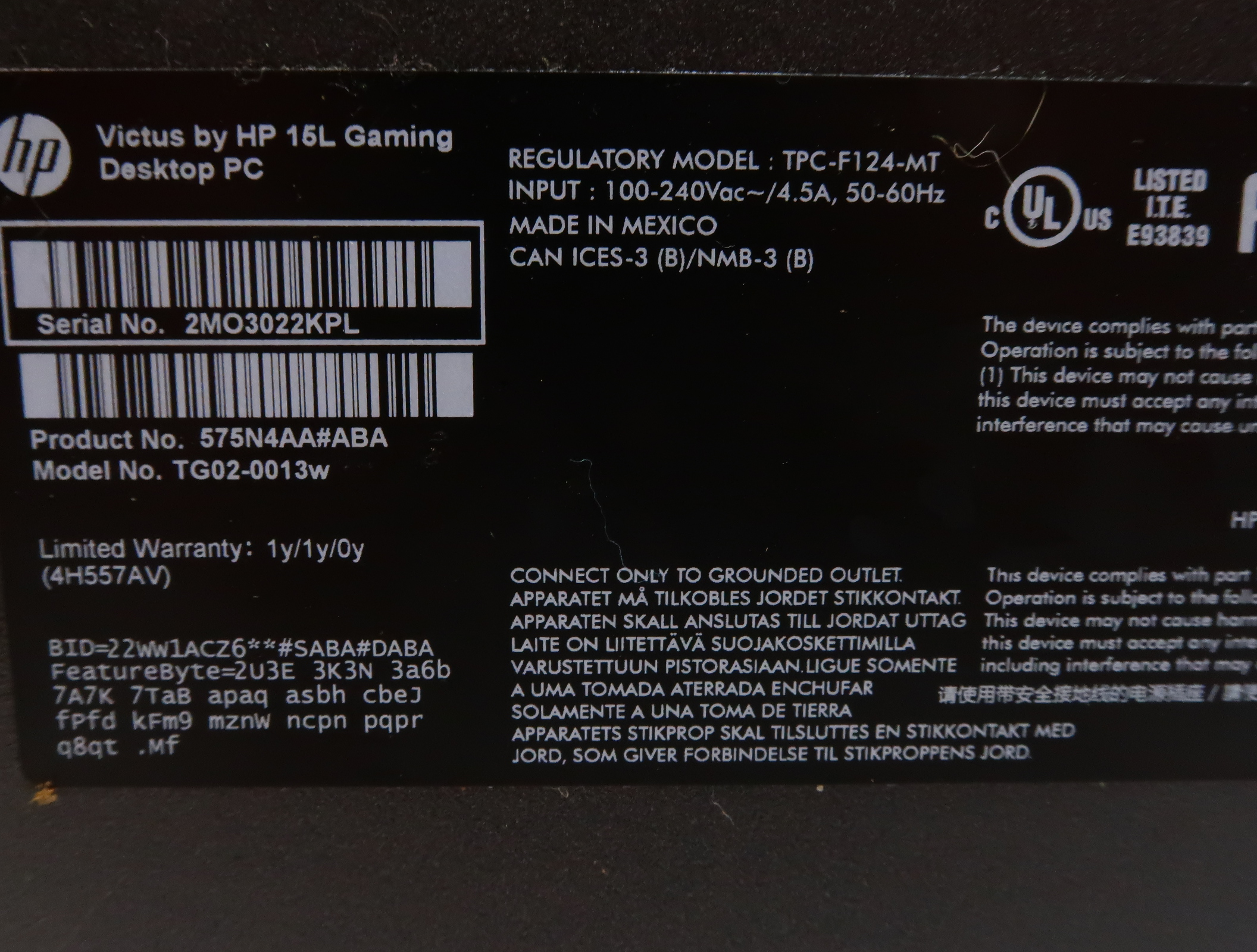 Model: HP Victus 15L Gaming Desktop TG02-0013w