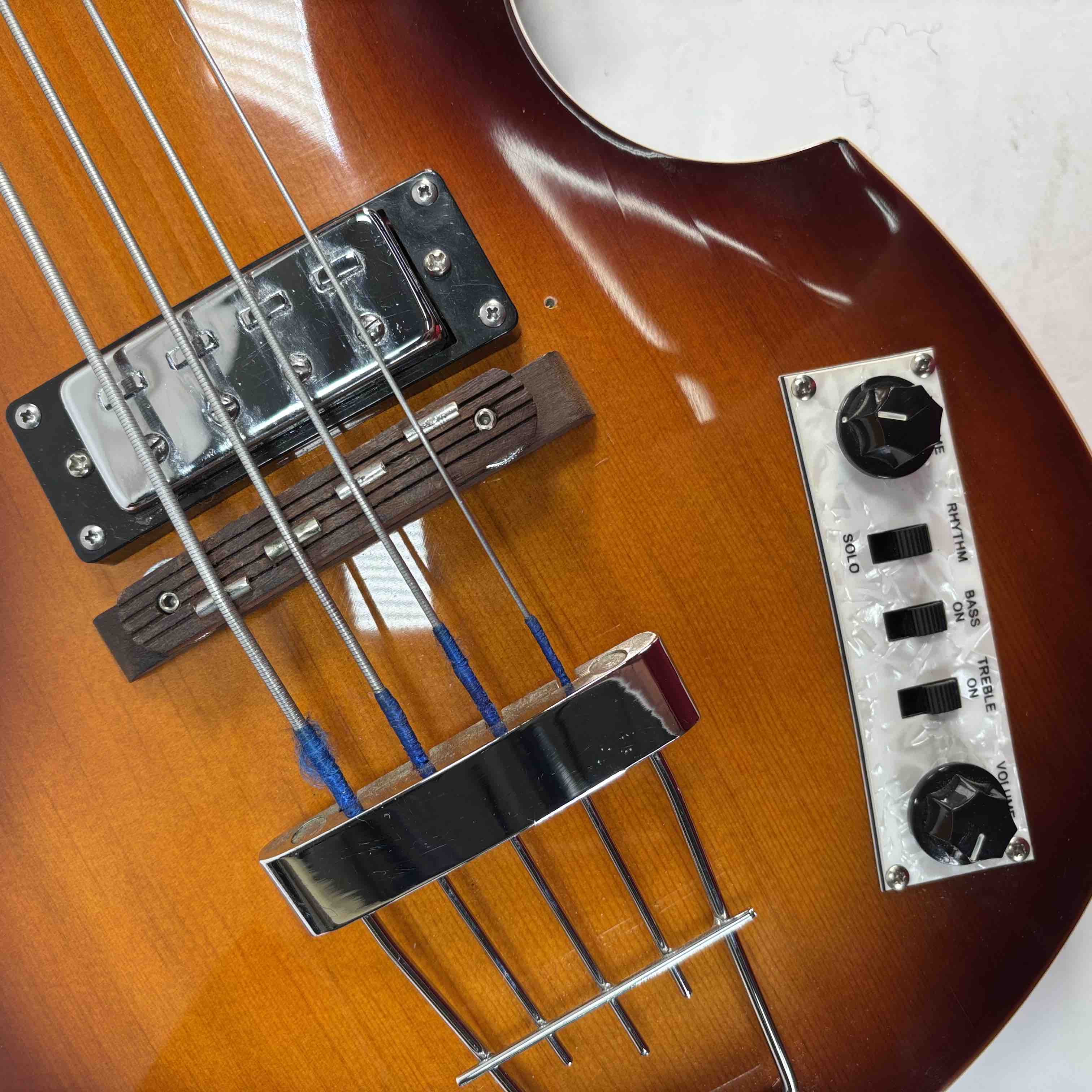 Experience the classic sound and legendary craftsmanship of the Höfner HI-BB electric bass guitar, renowned for its vintage aesthetics, sunburst wooden body, and superior playability. This model boasts authentic German manufacturing with a signature headstock, four tuning keys, and premium hardware, making it a sought-after piece for collectors and musicians alike. Perfect for those aiming to add a distinguished vibe to both stage performances and studio sessions.