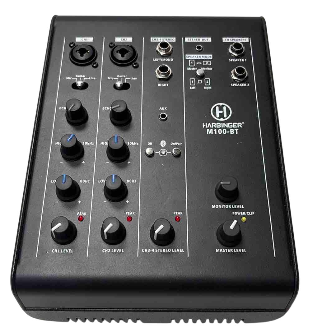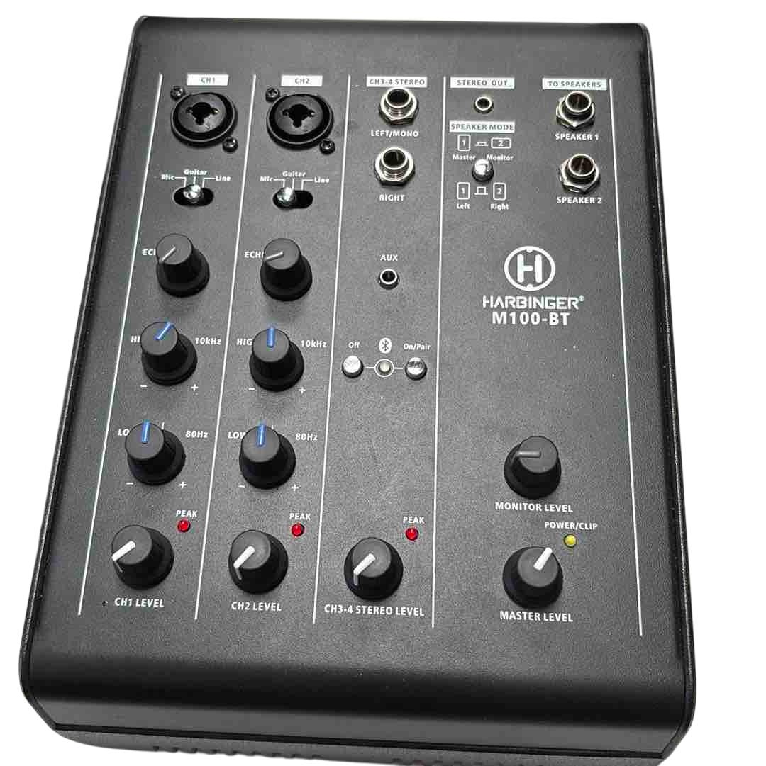 Enhance your audio experience with the Harbinger M100-BT Portable PA System. This versatile setup includes Bluetooth functionality, two powerful subwoofers, and an intuitive control panel for seamless operation. Whether youre hosting events or creating a studio-like environment, this robust system ensures high-quality sound and exceptional performance.