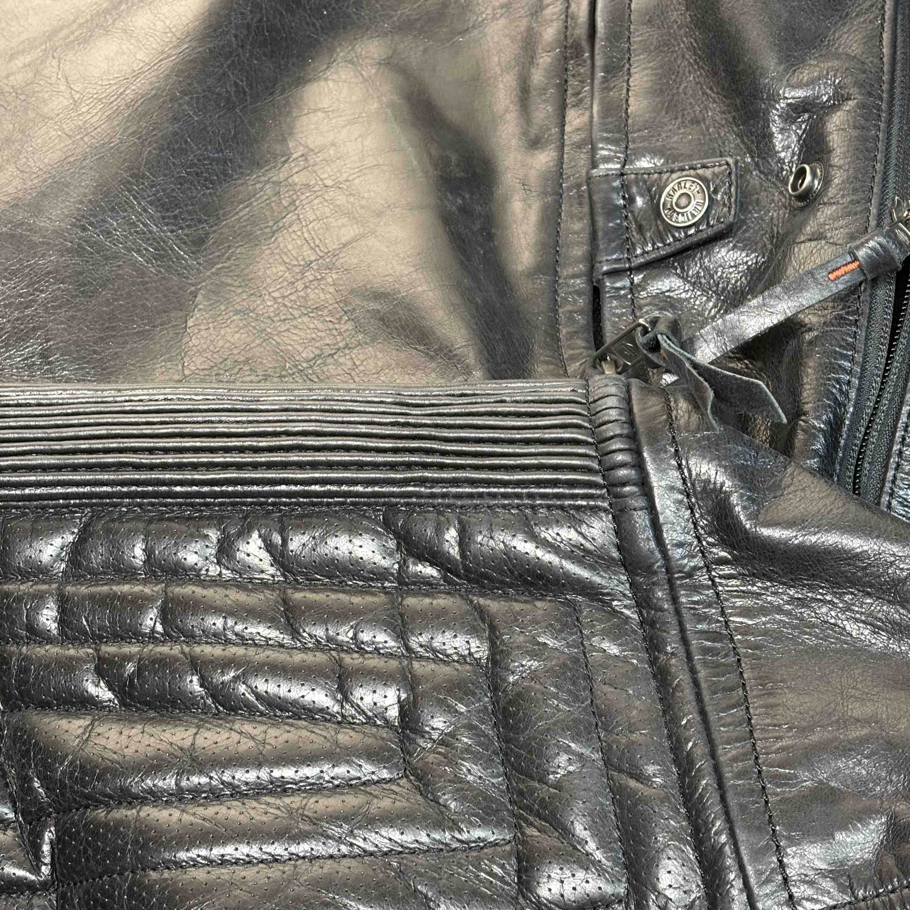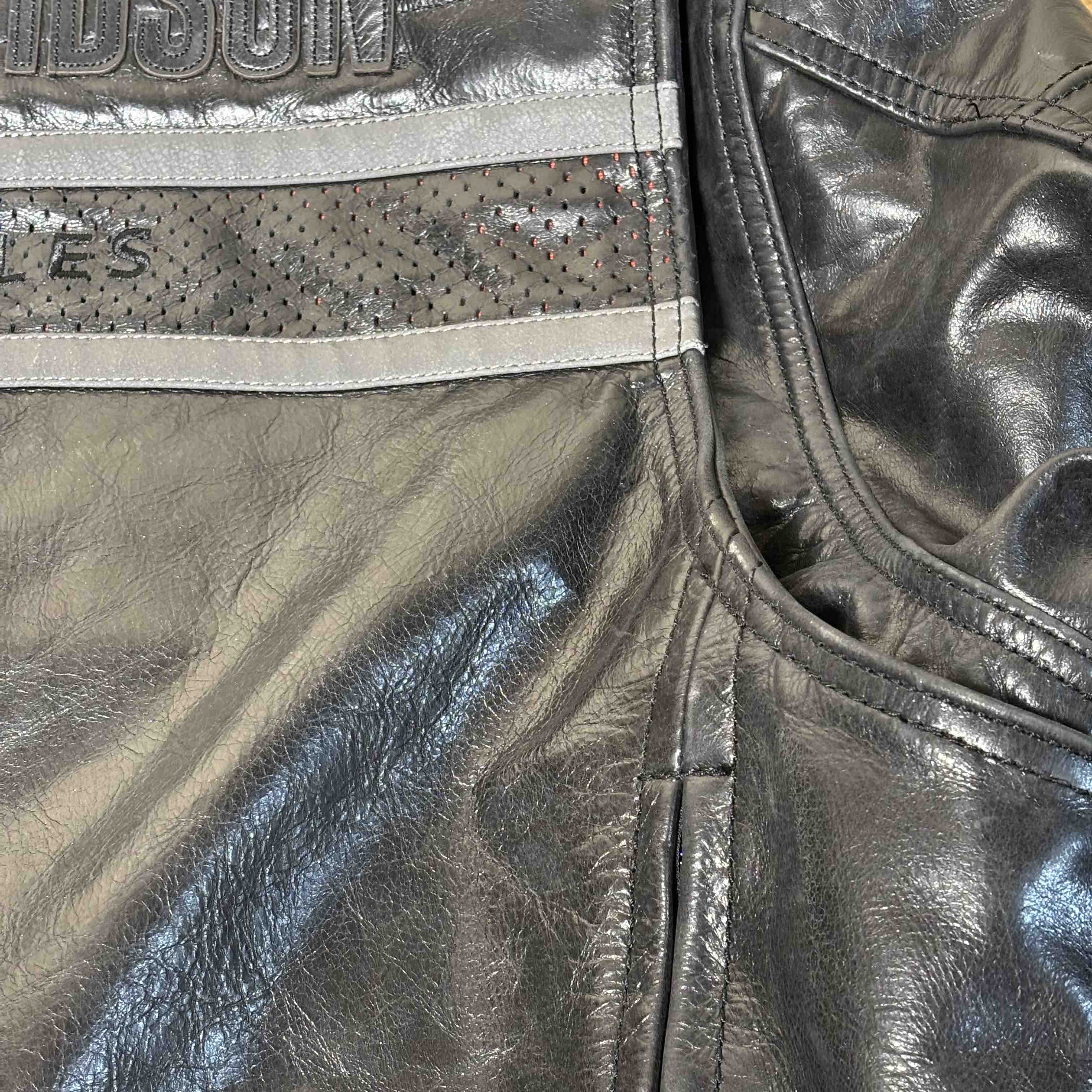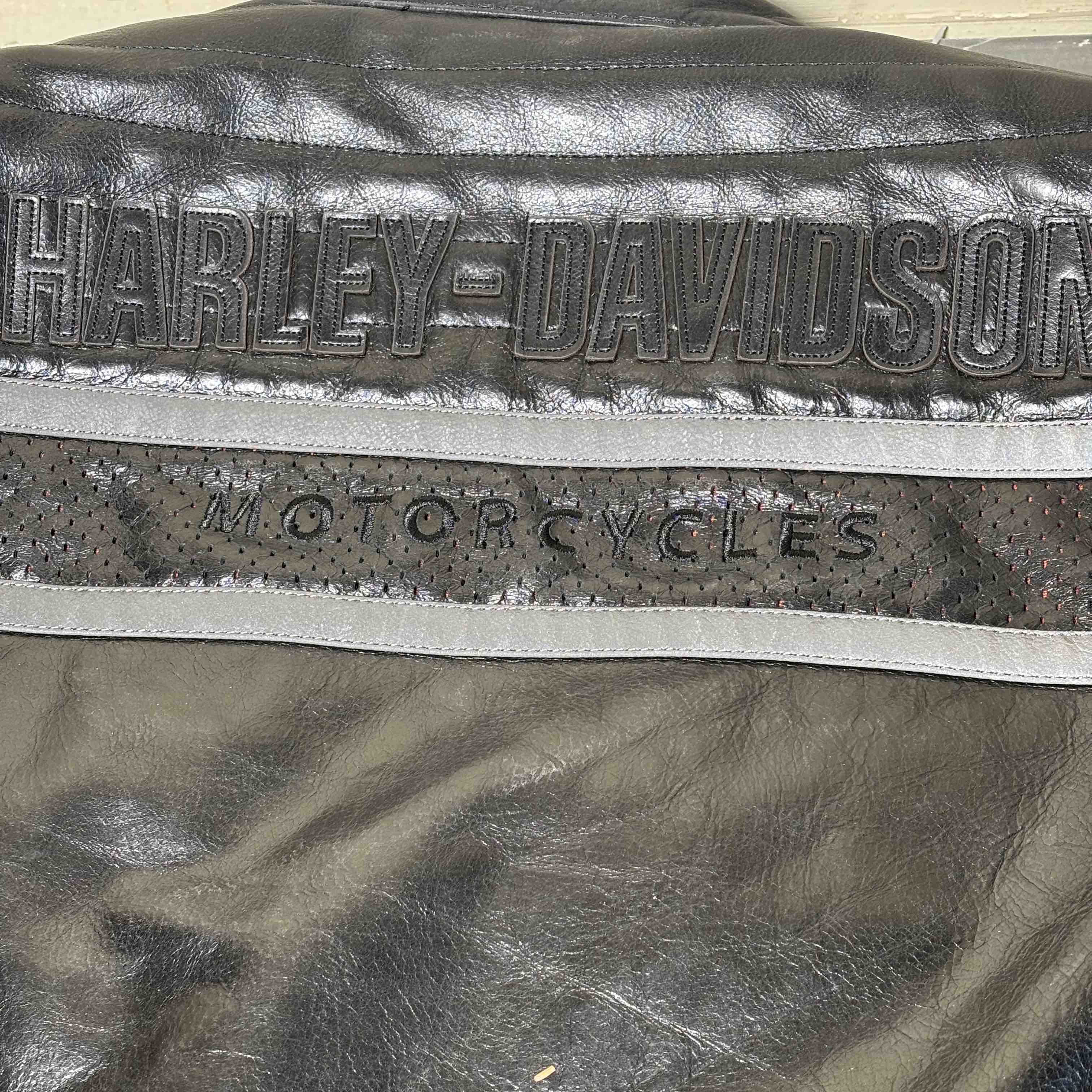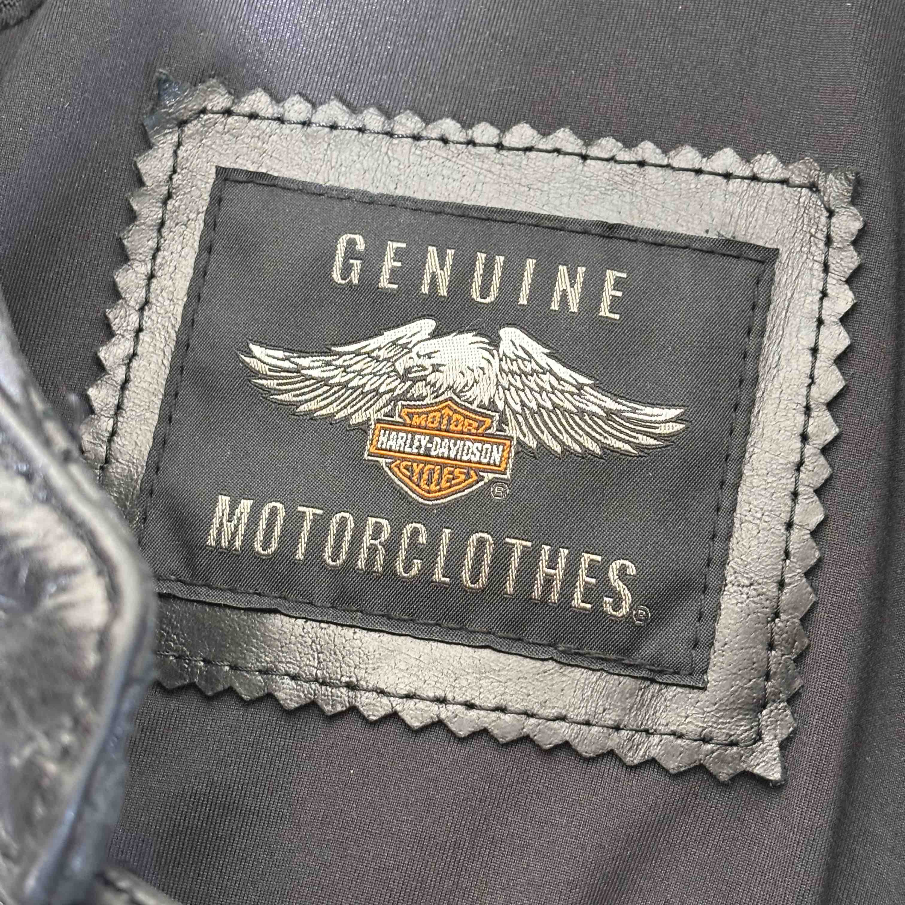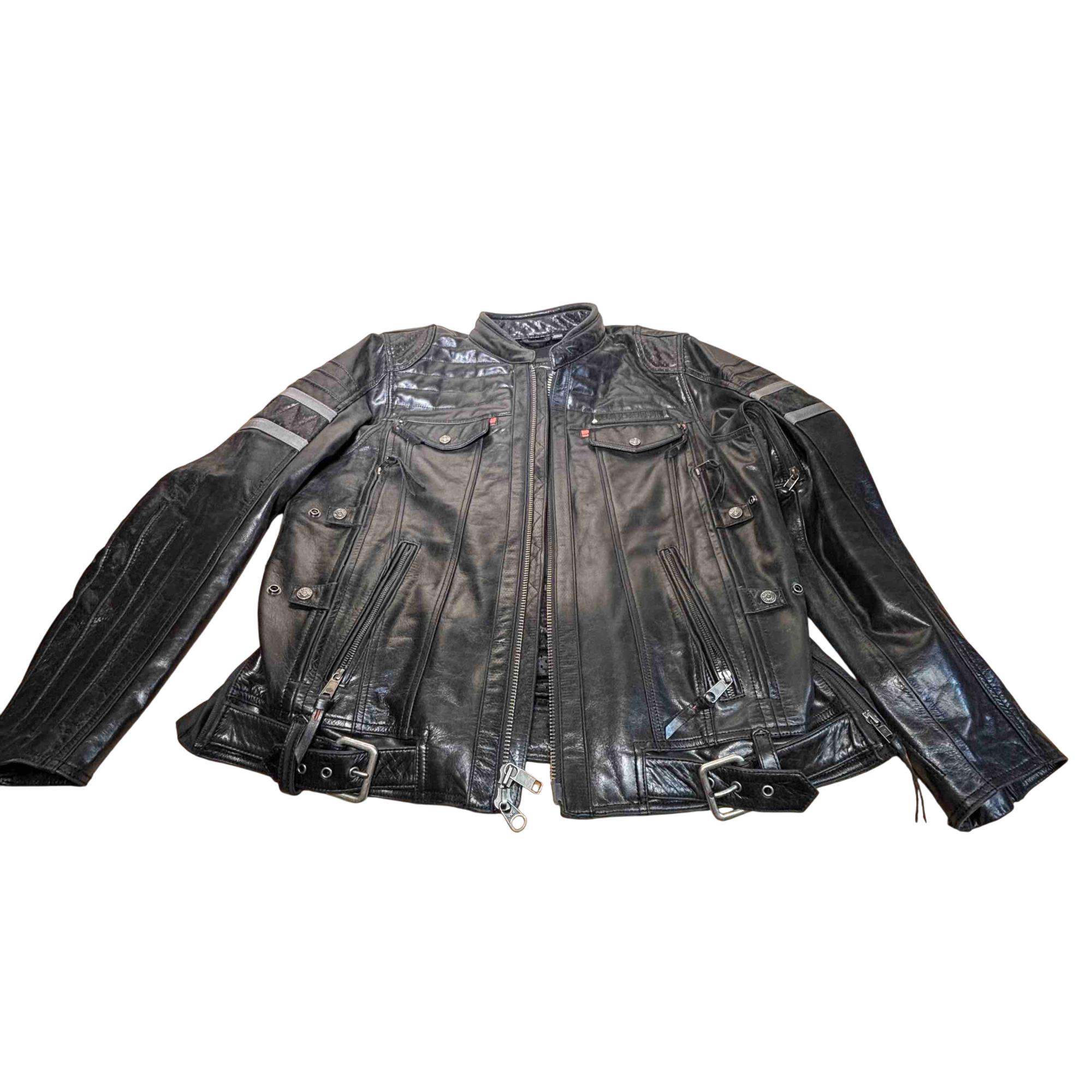 Ride in iconic style and superior comfort with the Harley-Davidson Triple Vent System Wick Twister Leather Jacket. Crafted from genuine black leather, this motorcycle jacket offers excellent ventilation, rugged durability, and standout details like branded snaps, buckles, and silver zippers. A must-have for Harley enthusiasts, its perfect for hitting the road or elevating your everyday look.
