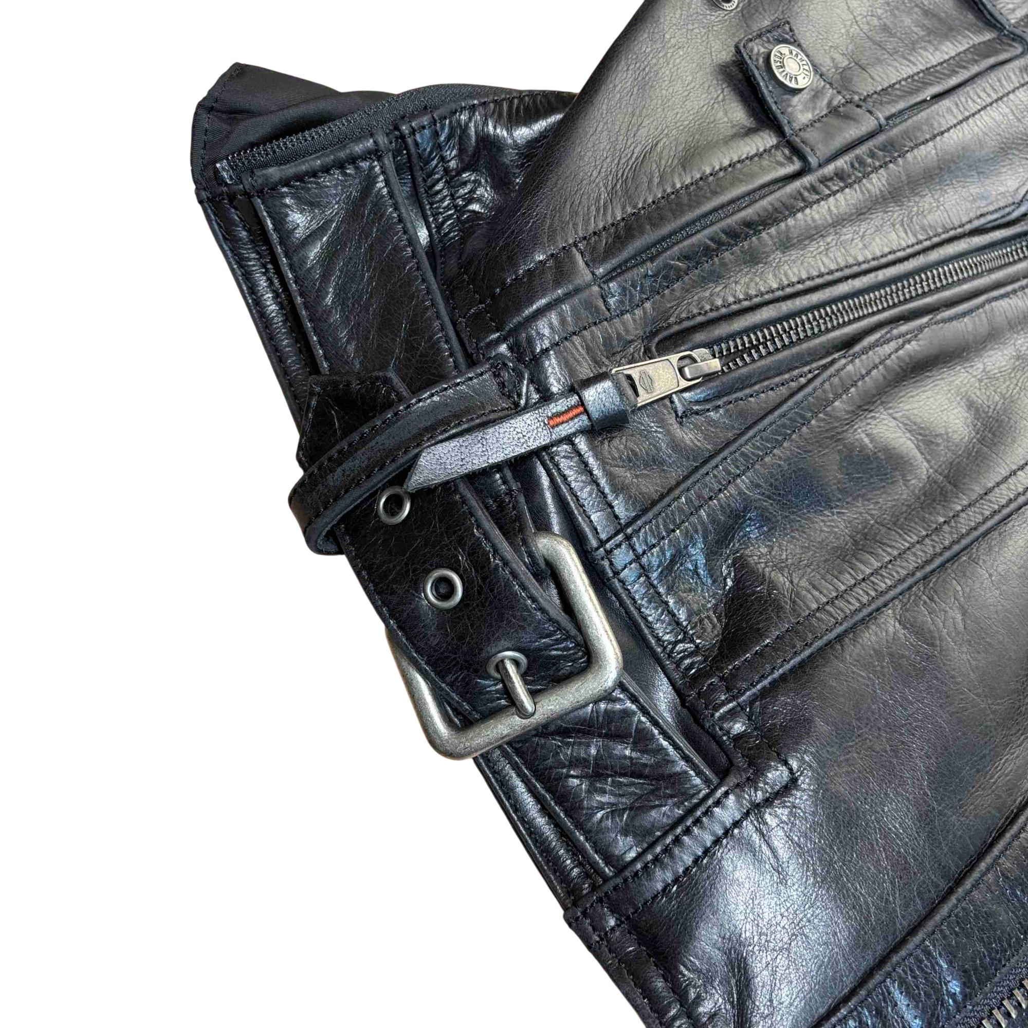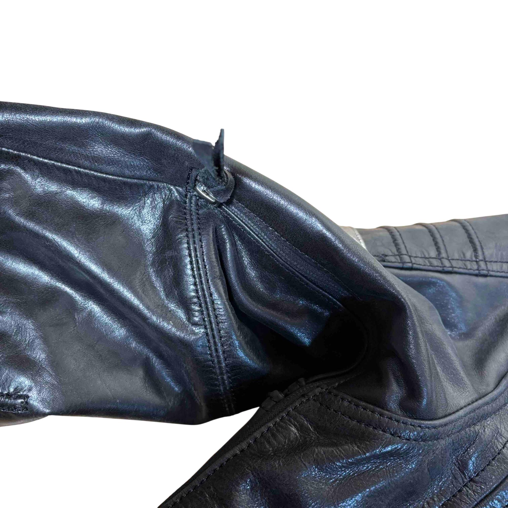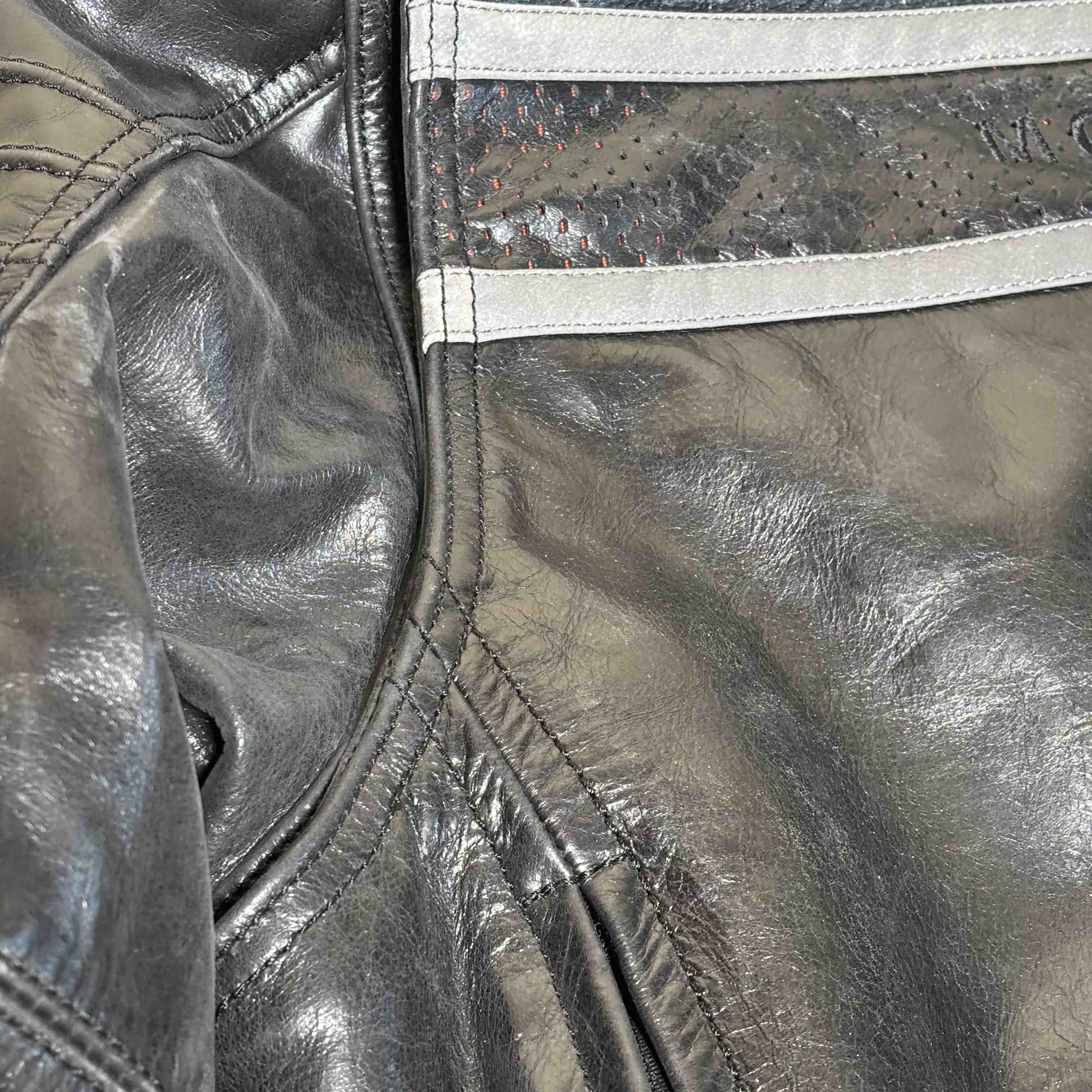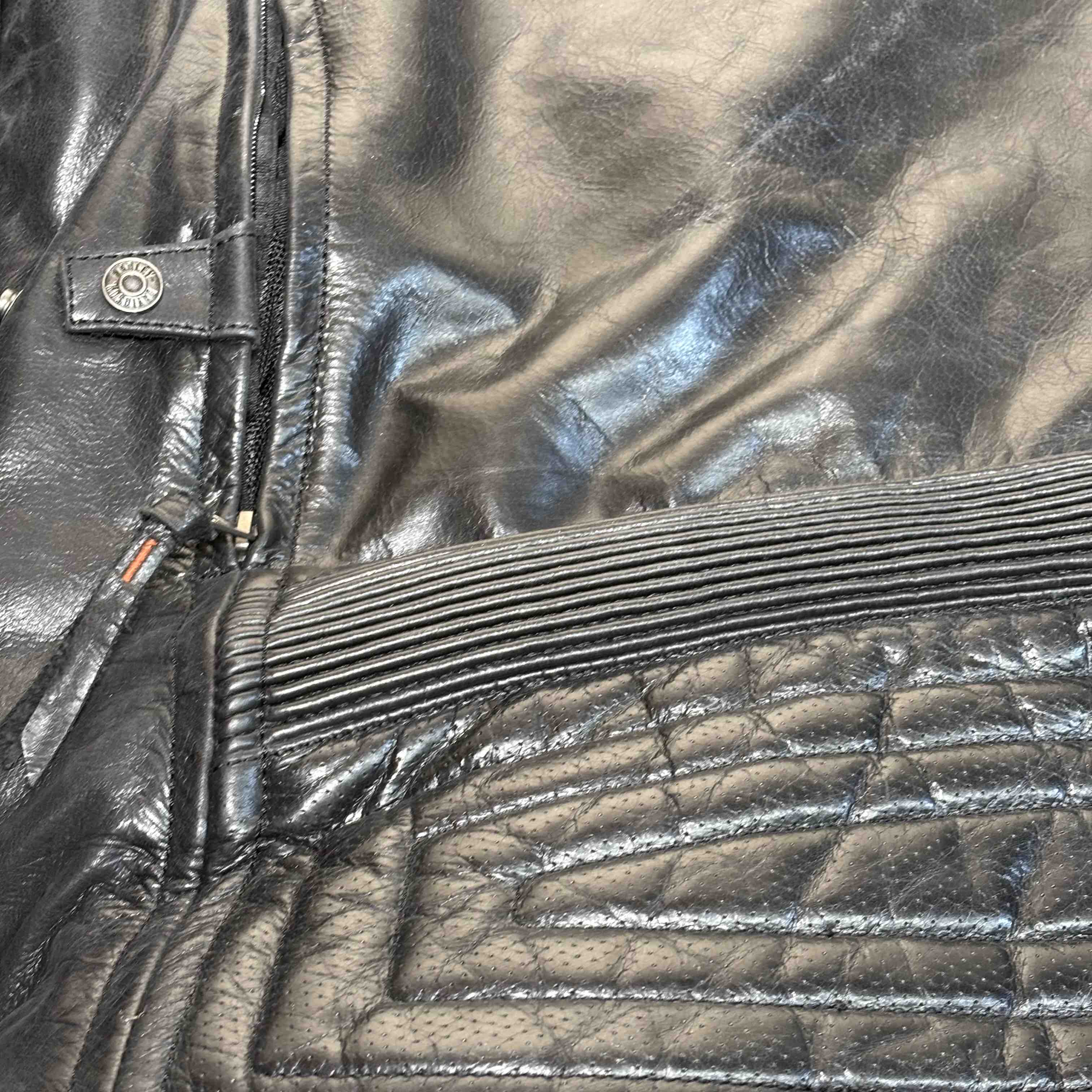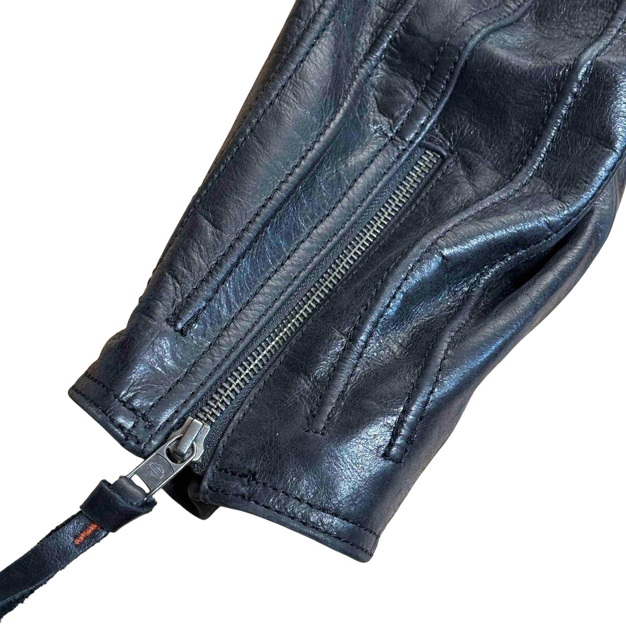 Ride in iconic style and superior comfort with the Harley-Davidson Triple Vent System Wick Twister Leather Jacket. Crafted from genuine black leather, this motorcycle jacket offers excellent ventilation, rugged durability, and standout details like branded snaps, buckles, and silver zippers. A must-have for Harley enthusiasts, its perfect for hitting the road or elevating your everyday look.