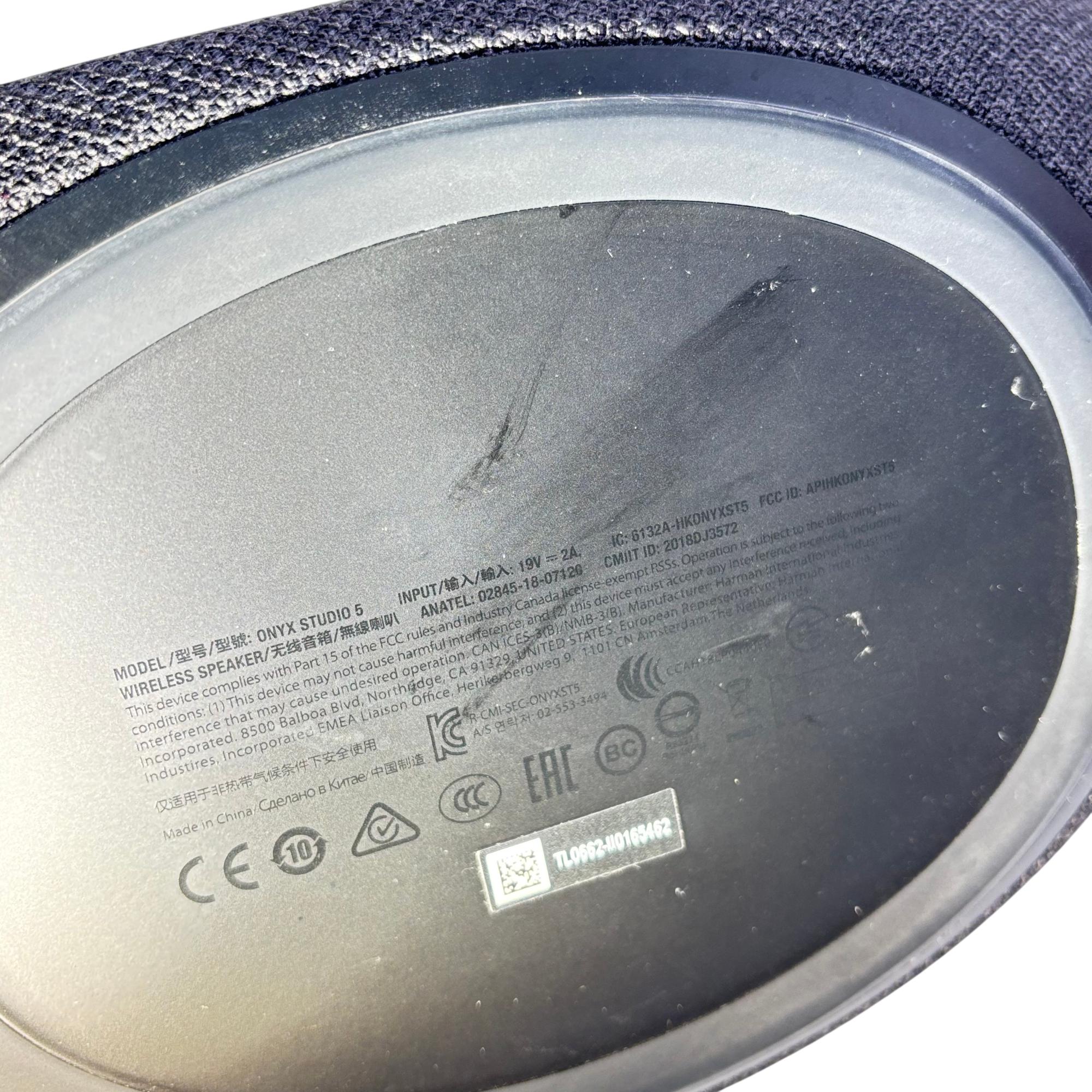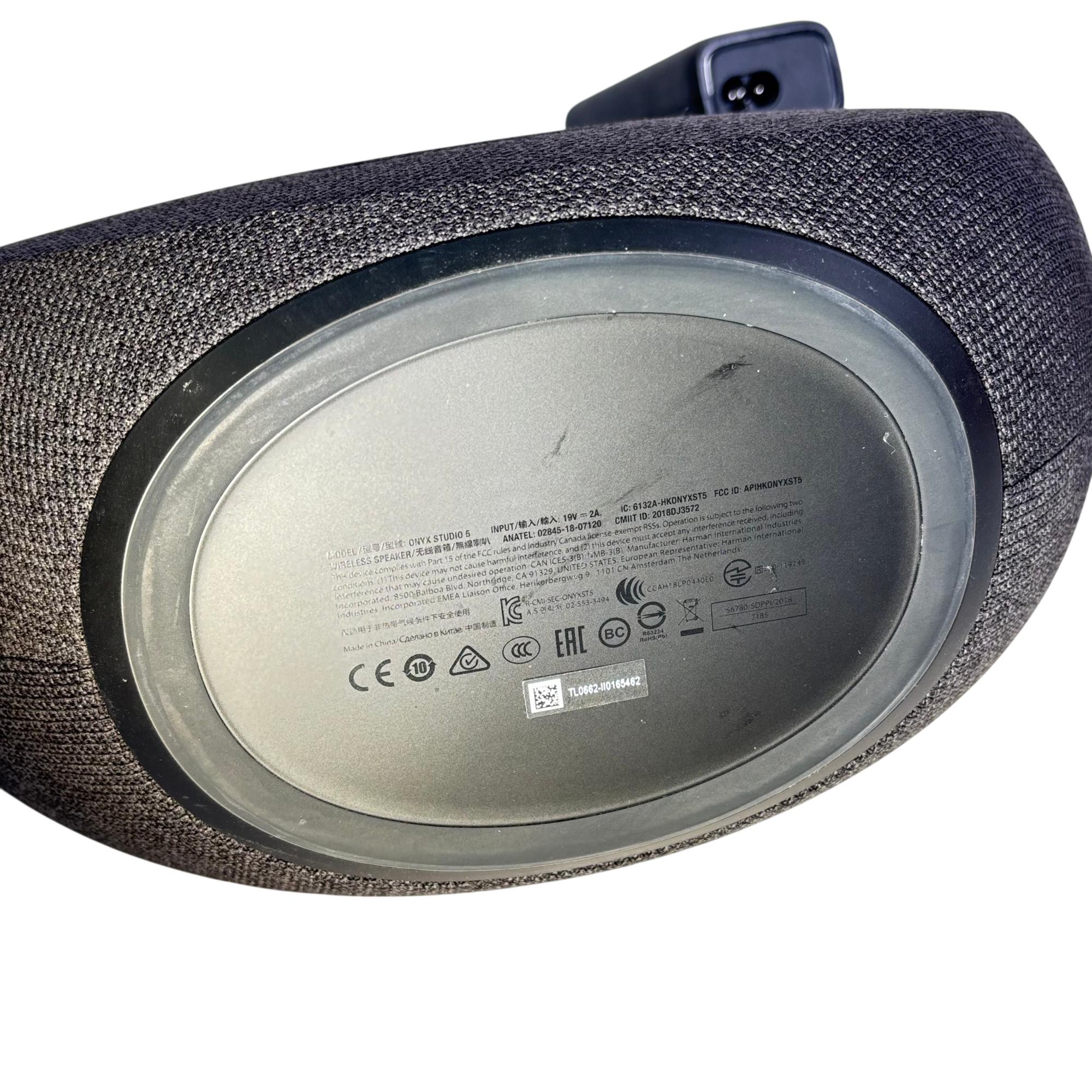 Harman/Kardon Onyx Studio 5 Portable Wireless Bluetooth Speaker delivers rich, room-filling sound with deep bass and clear highs, making it ideal for both indoor and outdoor use. Its sleek round design features a durable fabric cover and a built-in handle for easy portability, while wireless Bluetooth connectivity ensures seamless audio streaming from compatible devices.