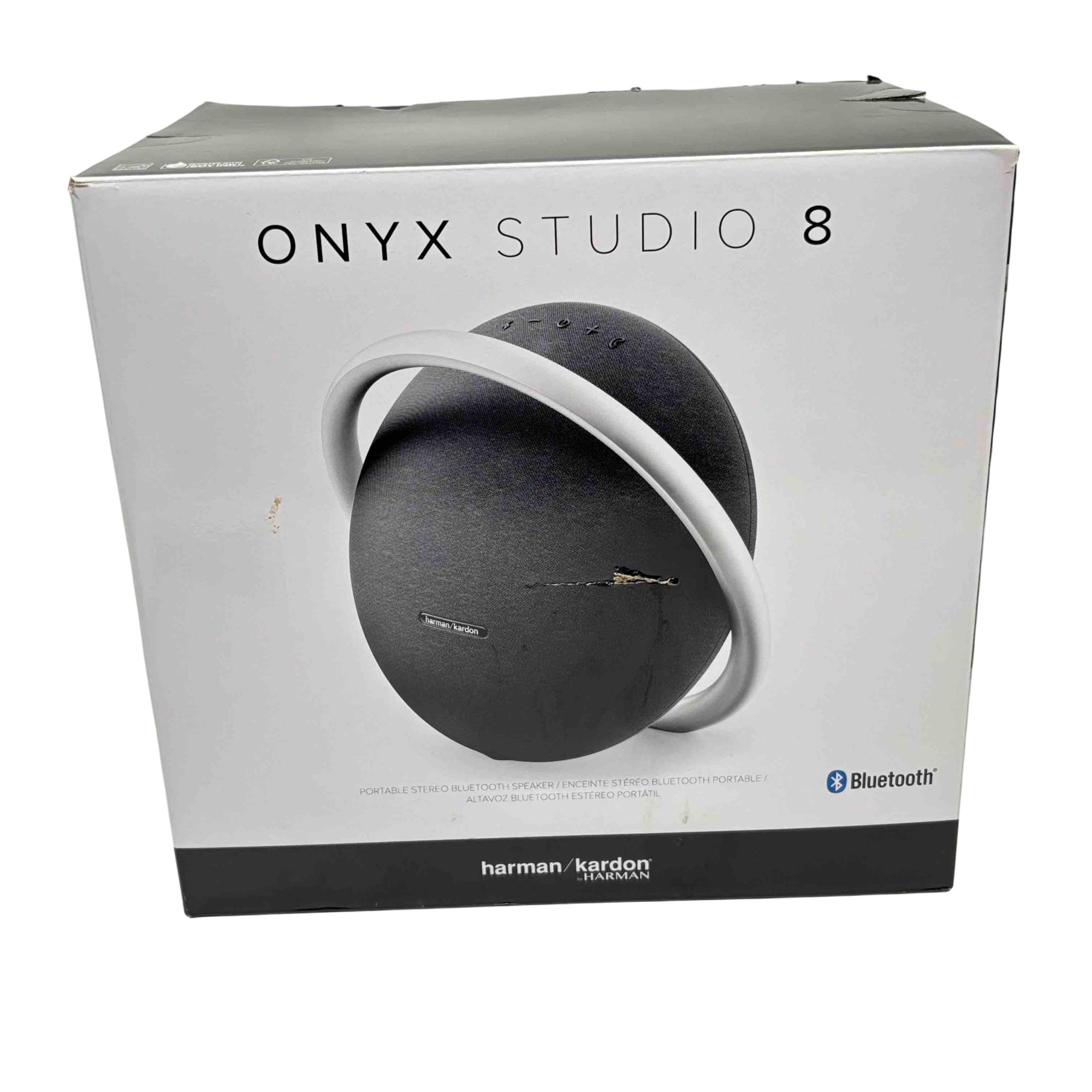 Experience exceptional sound quality with the Harman Kardon Onyx Studio 8, a premium portable Bluetooth speaker that blends rich audio performance with sleek modern design. Featuring a built-in rechargeable battery, intuitive controls, and a distinctively stylish silver handle, this speaker is perfect for both home and on-the-go listening. Elevate your music experience with deep bass and crystal-clear highs, all packaged in a compact, elegant form factor.