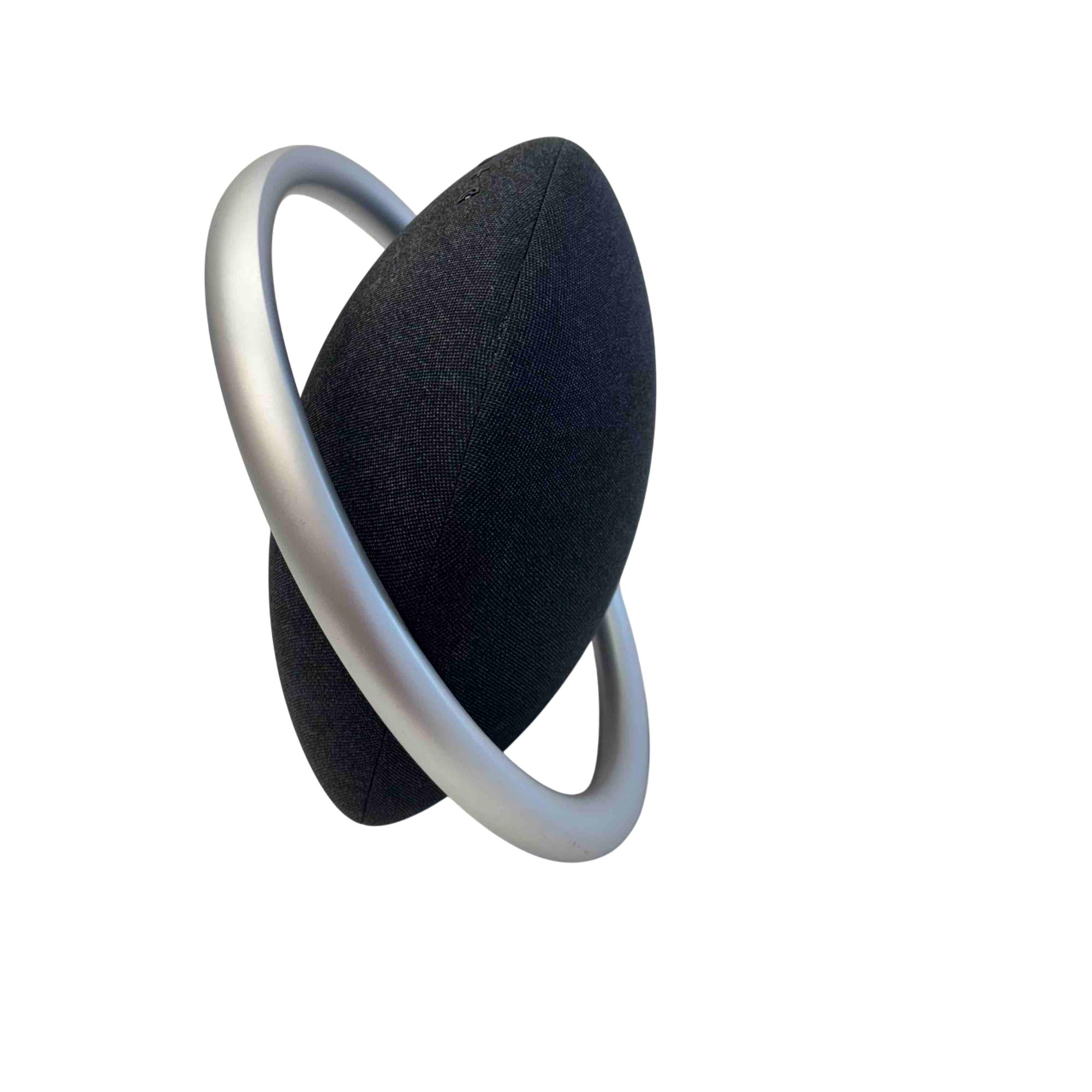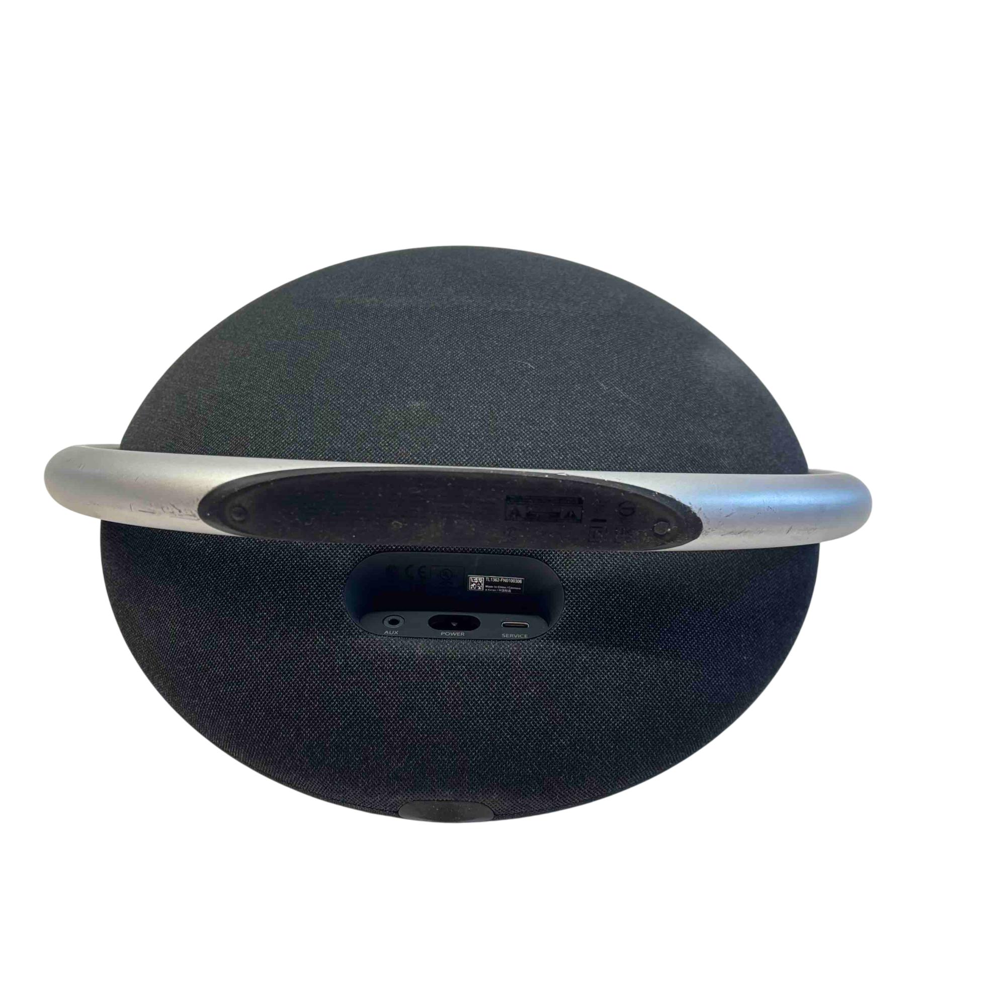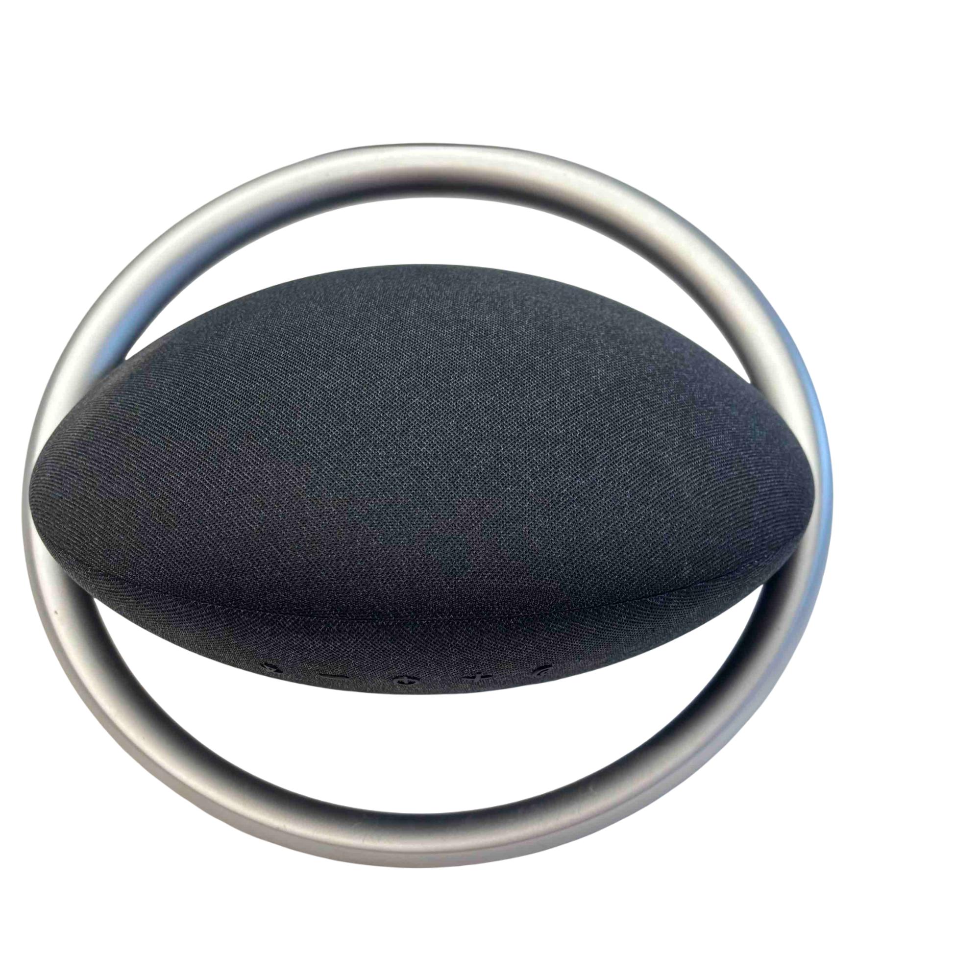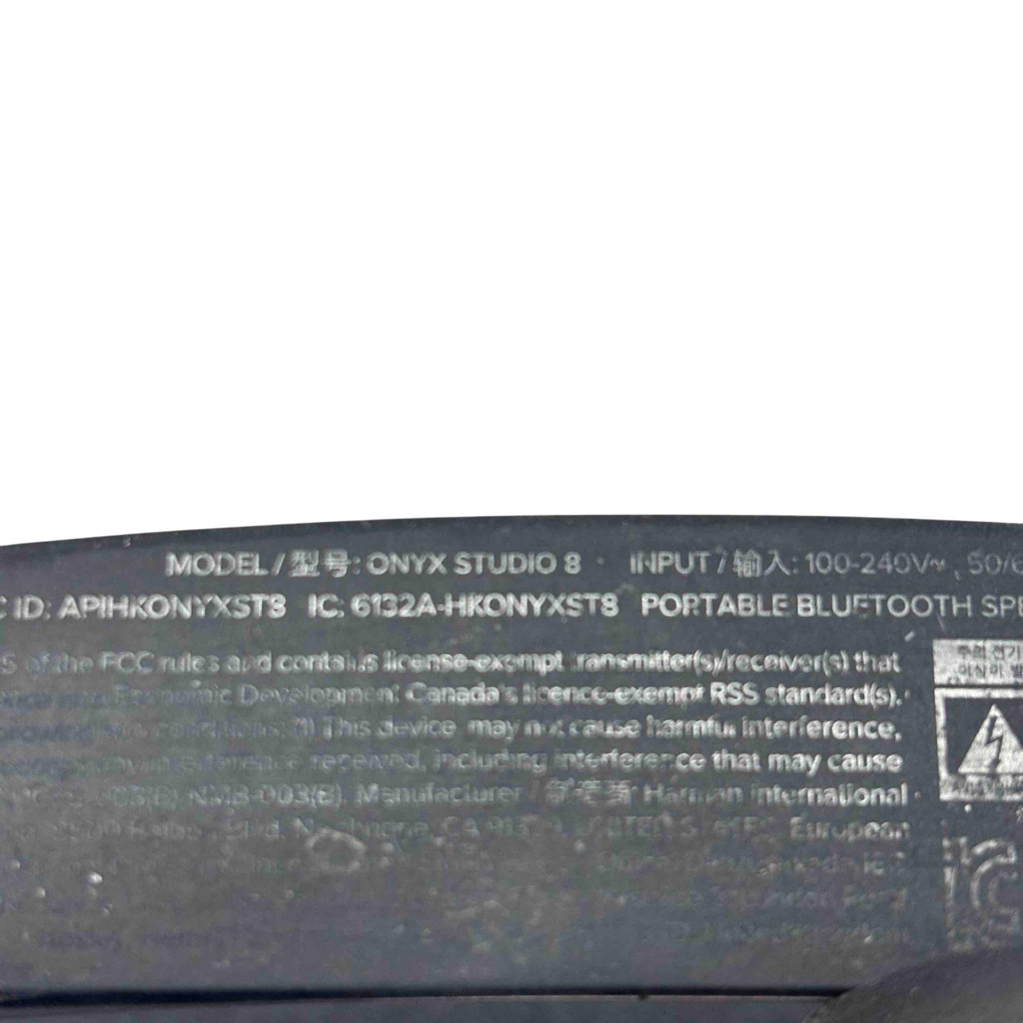 Harman Kardon Onyx Studio 8 Portable Bluetooth Speaker, Black features a sleek black design with a distinctive silver handle and ring, delivering premium audio quality. This wireless speaker offers rich, immersive sound and portability, making it ideal for both indoor and outdoor use. Engineered by Harman Kardon, it combines stylish aesthetics with powerful performance for an exceptional listening experience.