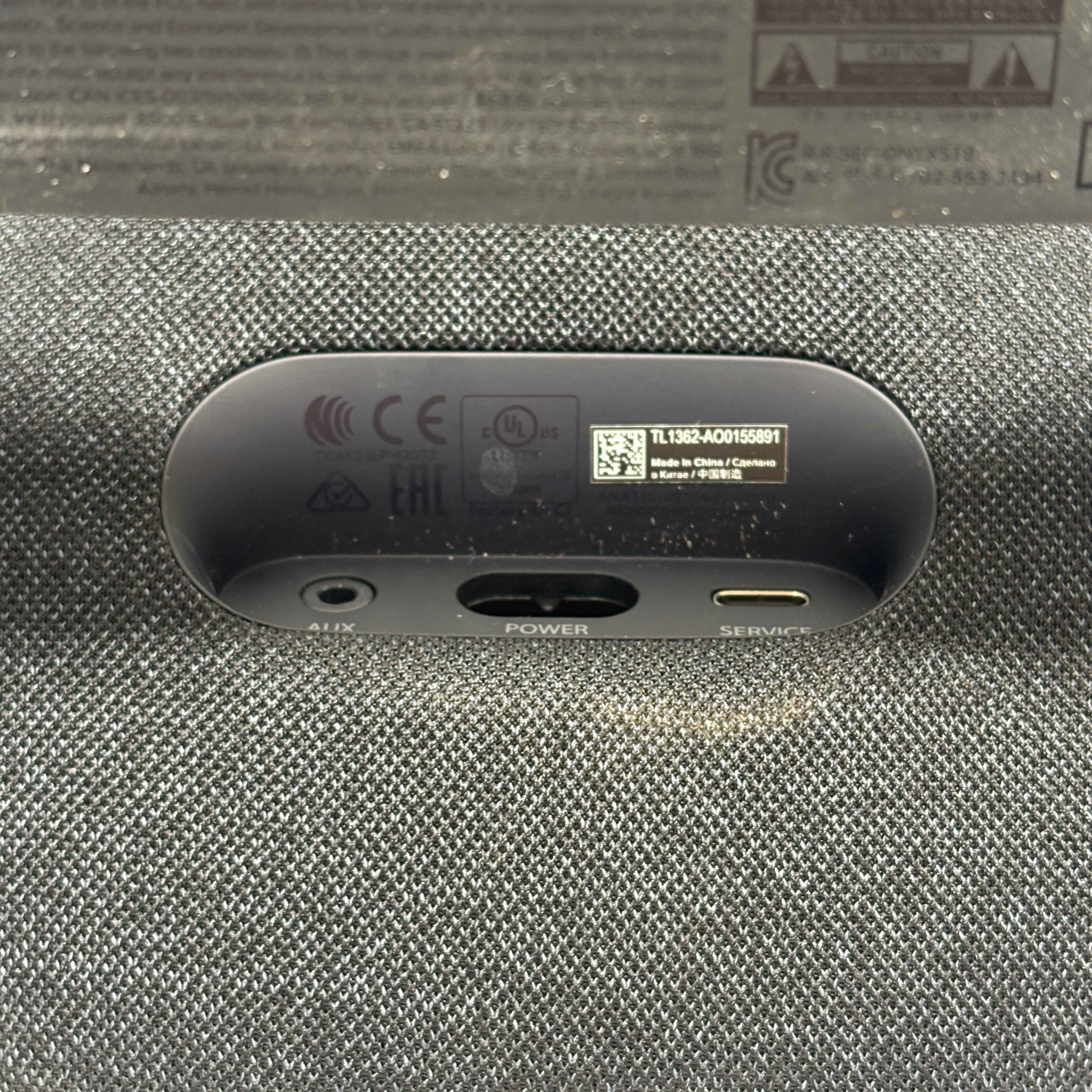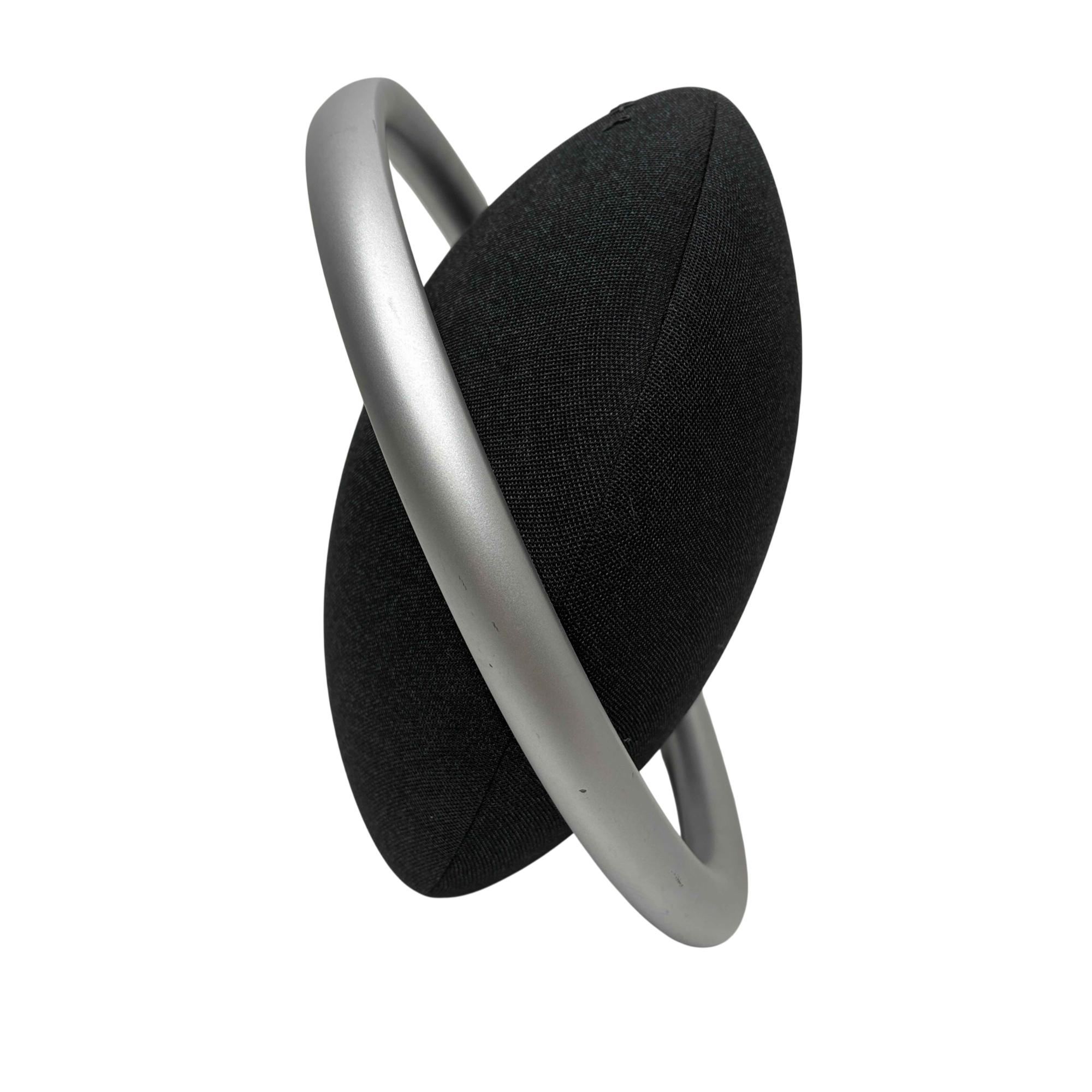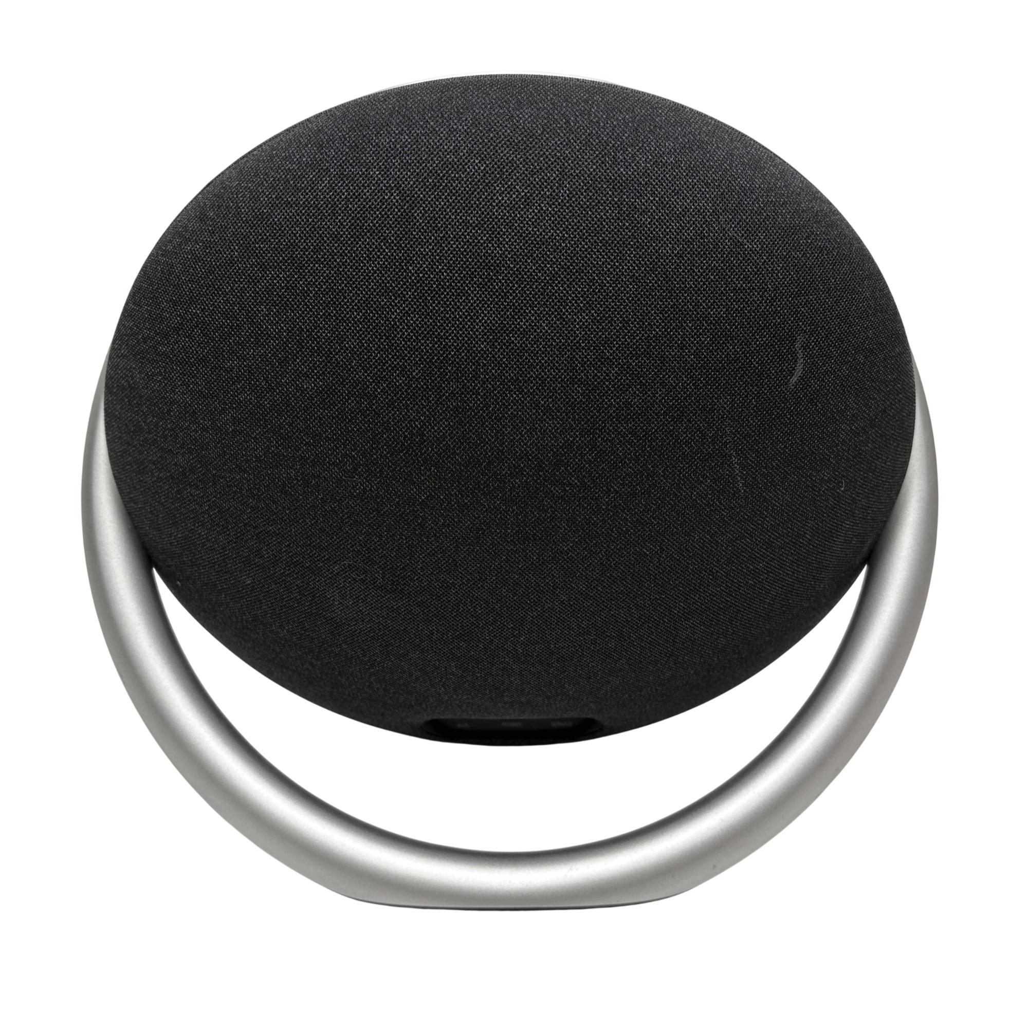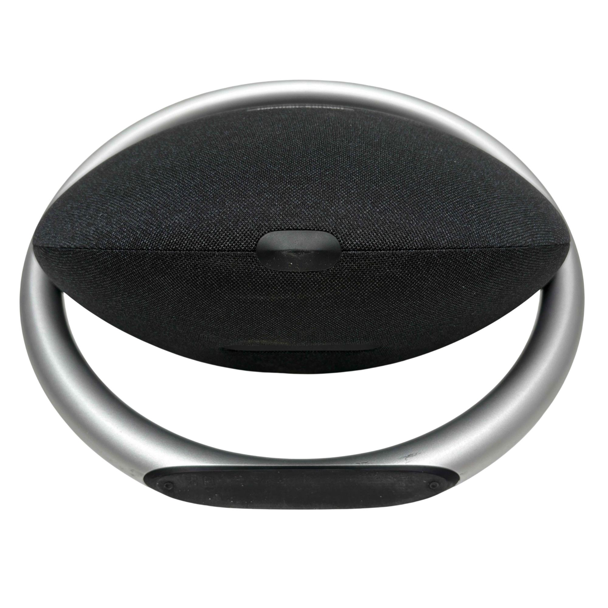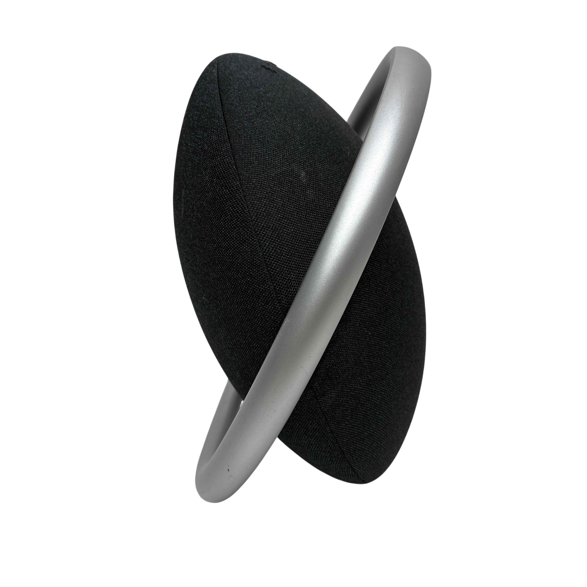 Delivers powerful 50W RMS sound through a 4.7" woofer and dual 0.8" tweeters, providing a rich audio experience. Its sleek design features a fabric-covered rounded body and an anodized aluminum ring that doubles as a base and handle for easy portability. The speaker automatically calibrates sound based on room acoustics for optimized playback and supports Bluetooth 5.2 for reliable connectivity. It allows pairing with two devices simultaneously and linking two speakers for an expanded soundstage. Designed with eco-friendly materials, including recycled plastic and polyester grille fabric, it also includes far-field microphones for hands-free calls.