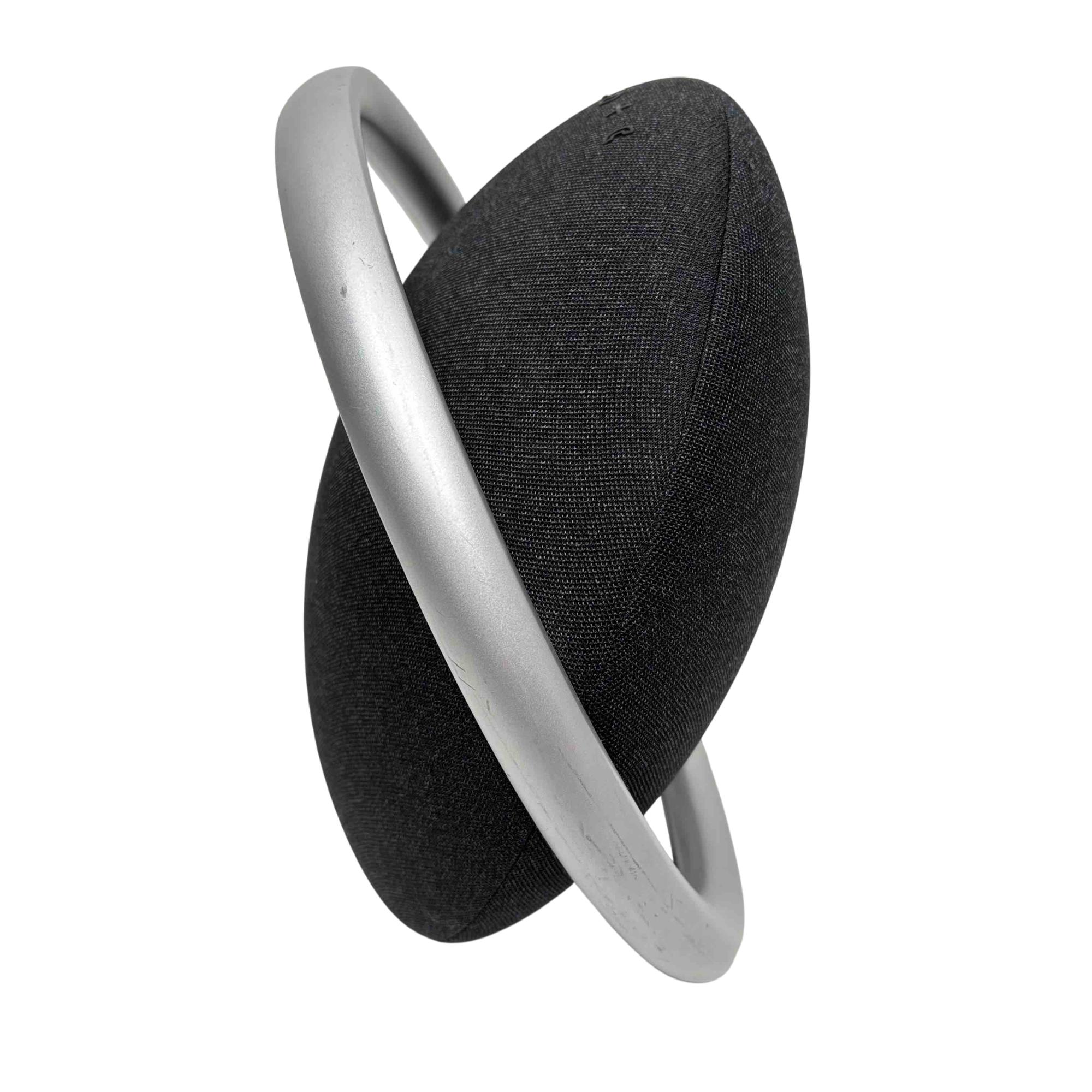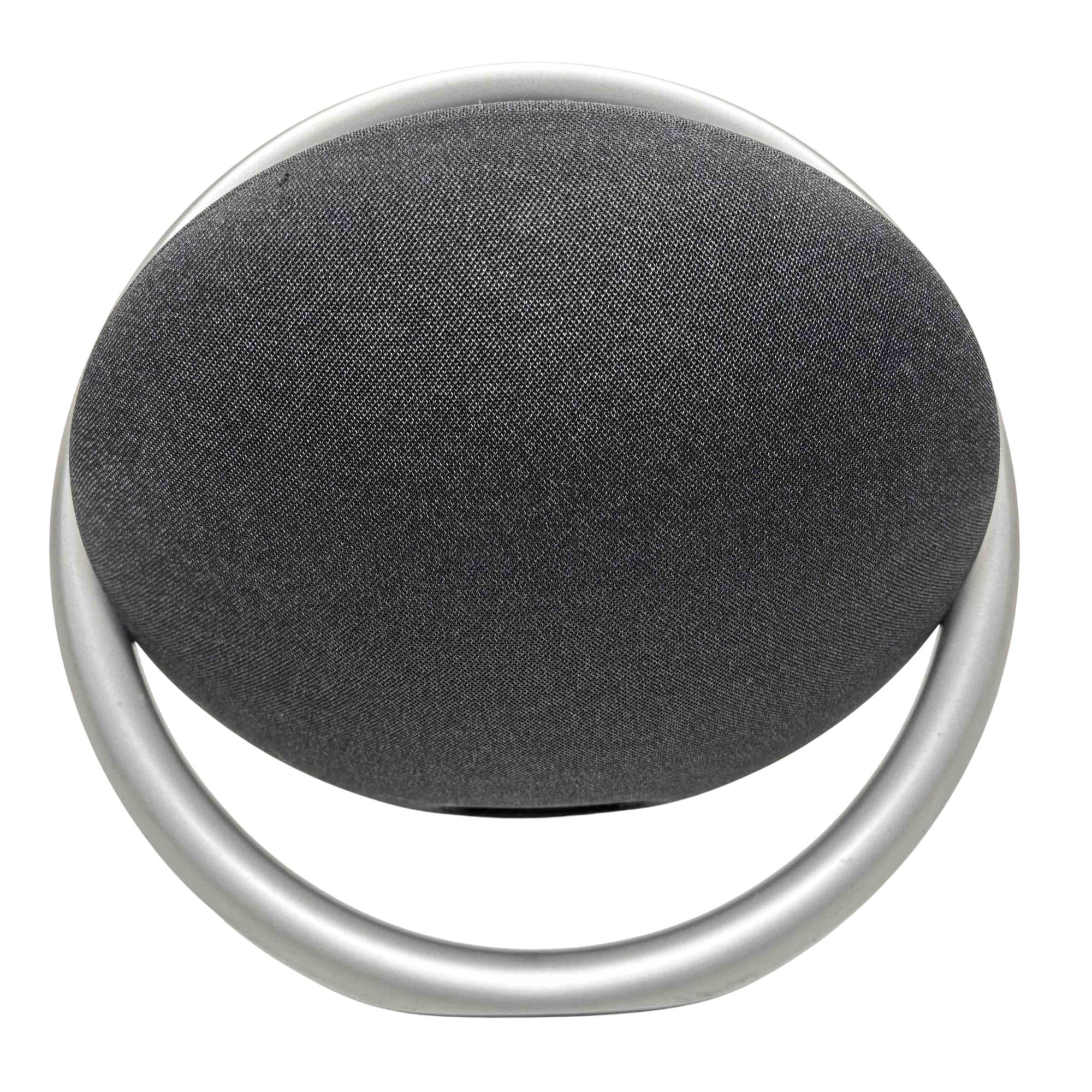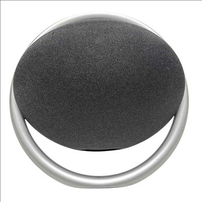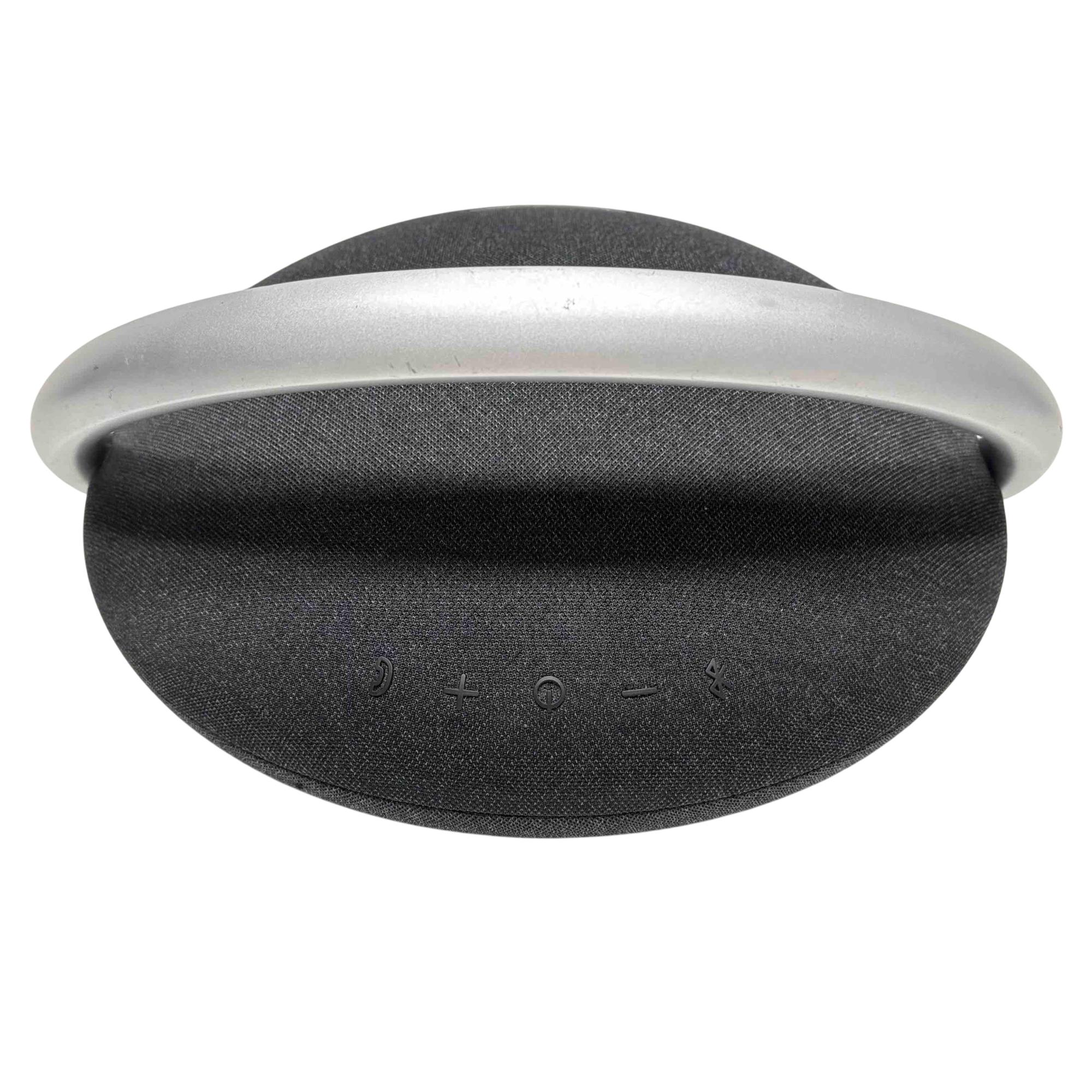 Delivers powerful 50W RMS sound through a 4.7" woofer and dual 0.8" tweeters, providing a rich audio experience. Its sleek design features a fabric-covered rounded body and an anodized aluminum ring that doubles as a base and handle for easy portability. The speaker automatically calibrates sound based on room acoustics for optimized playback and supports Bluetooth 5.2 for reliable connectivity. It allows pairing with two devices simultaneously and linking two speakers for an expanded soundstage. Designed with eco-friendly materials, including recycled plastic and polyester grille fabric, it also includes far-field microphones for hands-free calls.