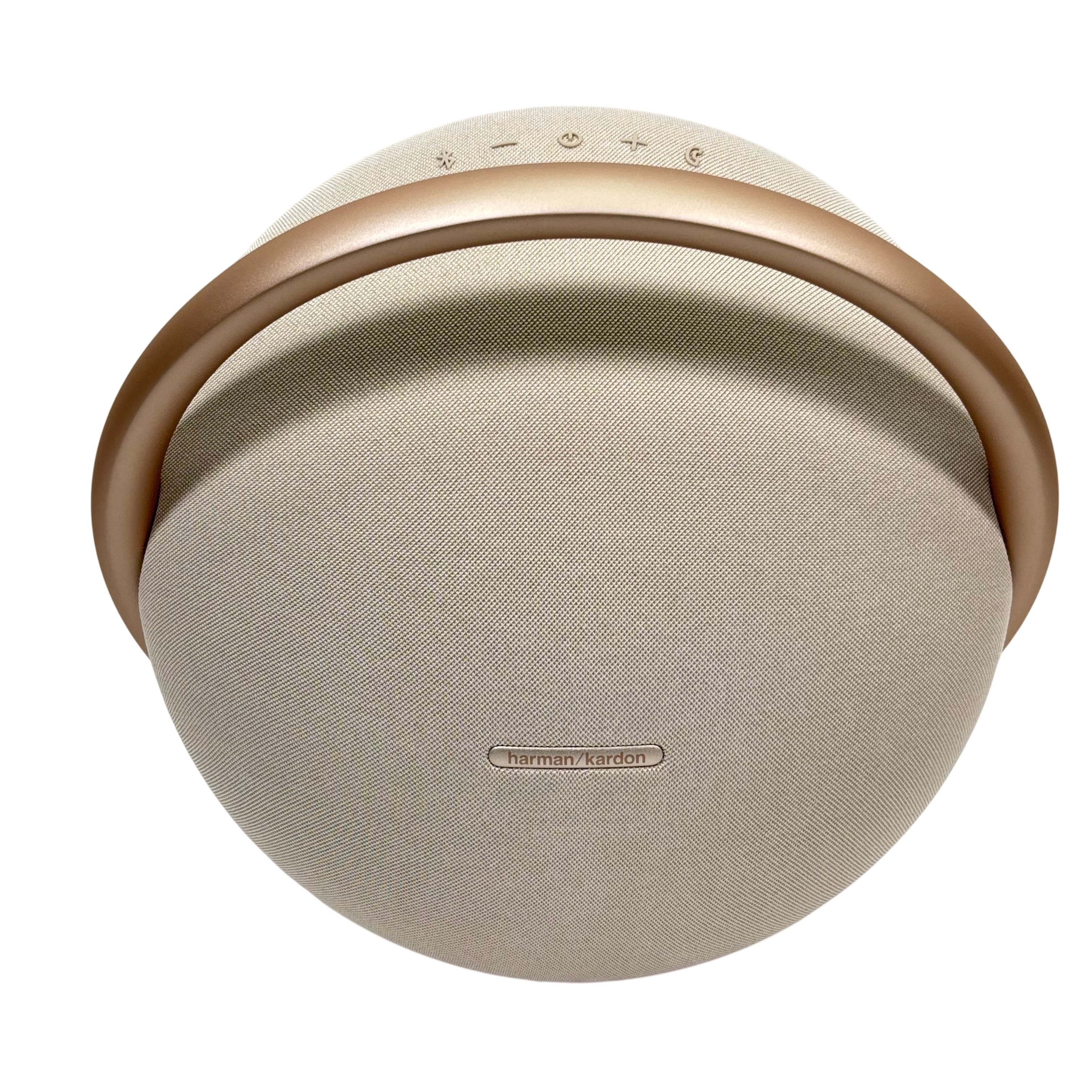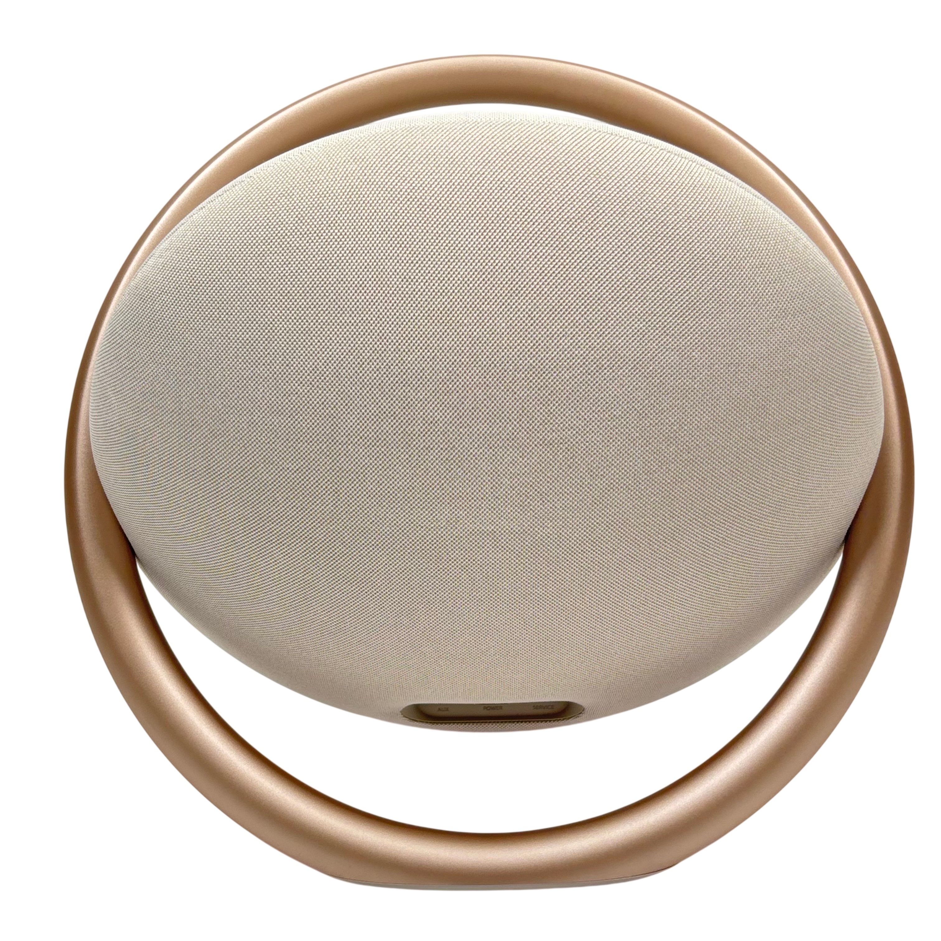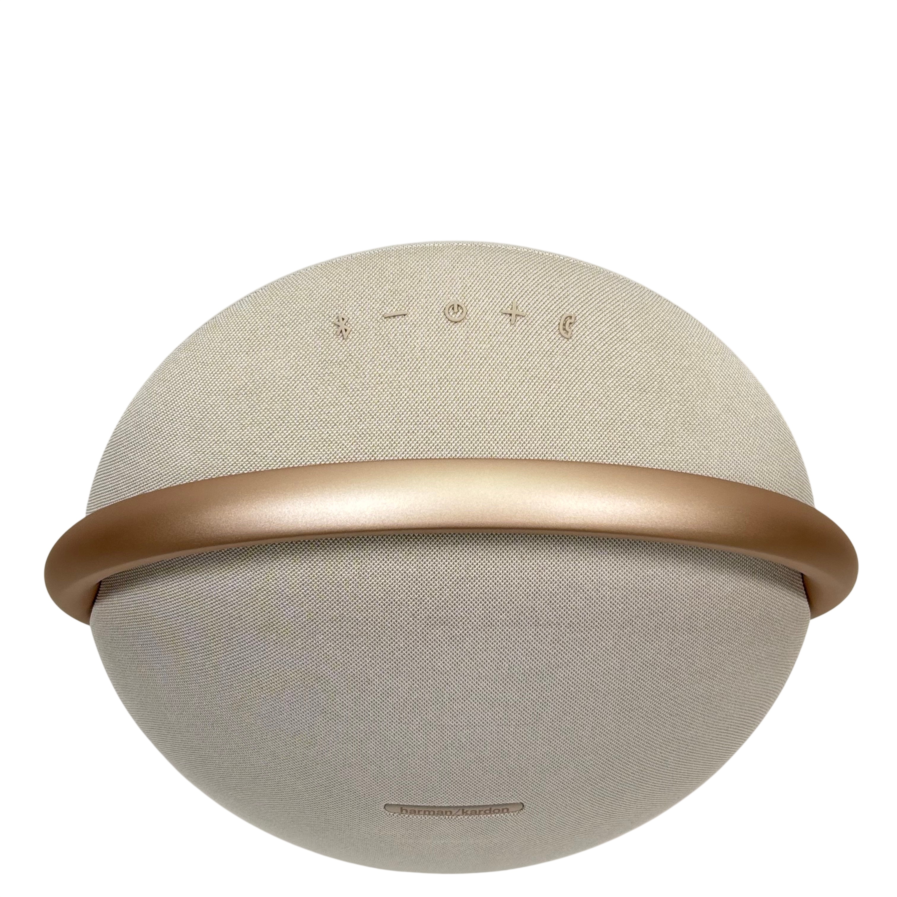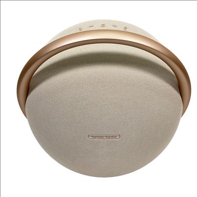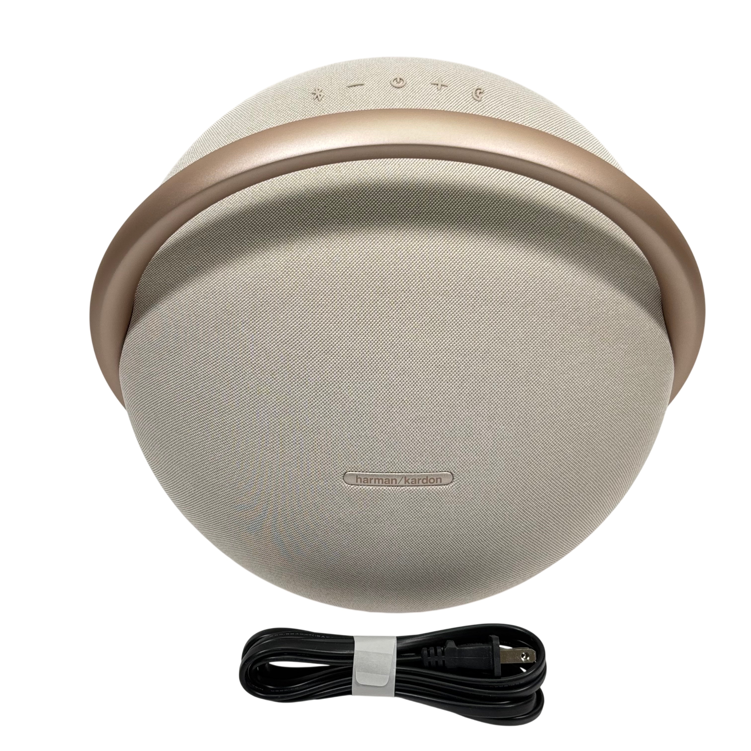 The Harmon Kardon Onyx Studio 8 Champagne Bluetooth Portable Speaker delivers powerful sound with deep bass in a stylish champagne finish. Featuring Bluetooth wireless streaming and a built-in rechargeable battery, this speaker offers portability and convenience for indoor and outdoor use. It includes an auxiliary input for wired connections and easy-to-use controls for power and volume. Compact yet powerful, the Onyx Studio 8 is perfect for music lovers seeking premium sound quality and elegant design.