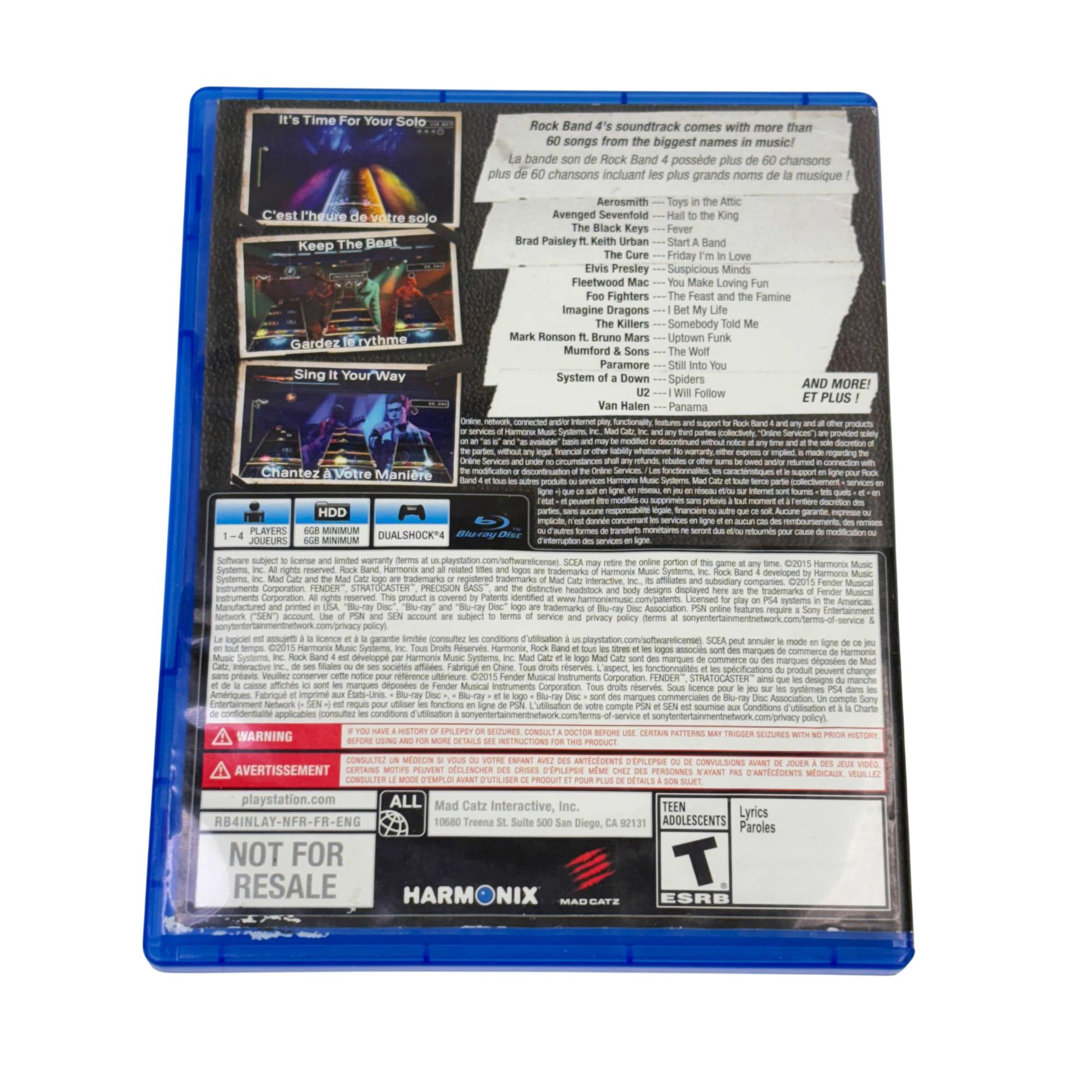 Rock Band 4 (PlayStation 4, 2015) by Harmonix & Mad Catz offers an immersive music gaming experience featuring over 60 songs from top artists across various rock genres. Compatible with PlayStation 4, it supports multiple instruments including guitar, drums, and microphone controllers for up to four players. Enhanced by engaging gameplay and online features, this title delivers dynamic solo and band performances that challenge players to keep the beat and rock out authentically.