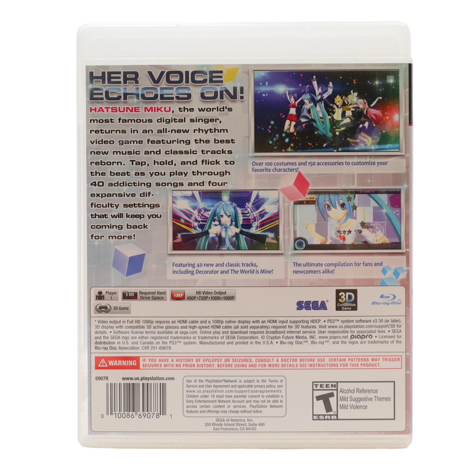 Continues the play style of its predecessor while adding new and returning songs, updated character modules, sliding touchscreen notes, and double scratch notes, along with expanded DIVA Room minigames such as a clapping game. The game introduces downloadable rhythm-game skins, supports cross-save with the PS Vita version, and includes an updated tutorial for both beginners and advanced players. When used with a PS Vita TV device, rhythm gameplay remains available with DualShock 3 controls and timing adjustment options.