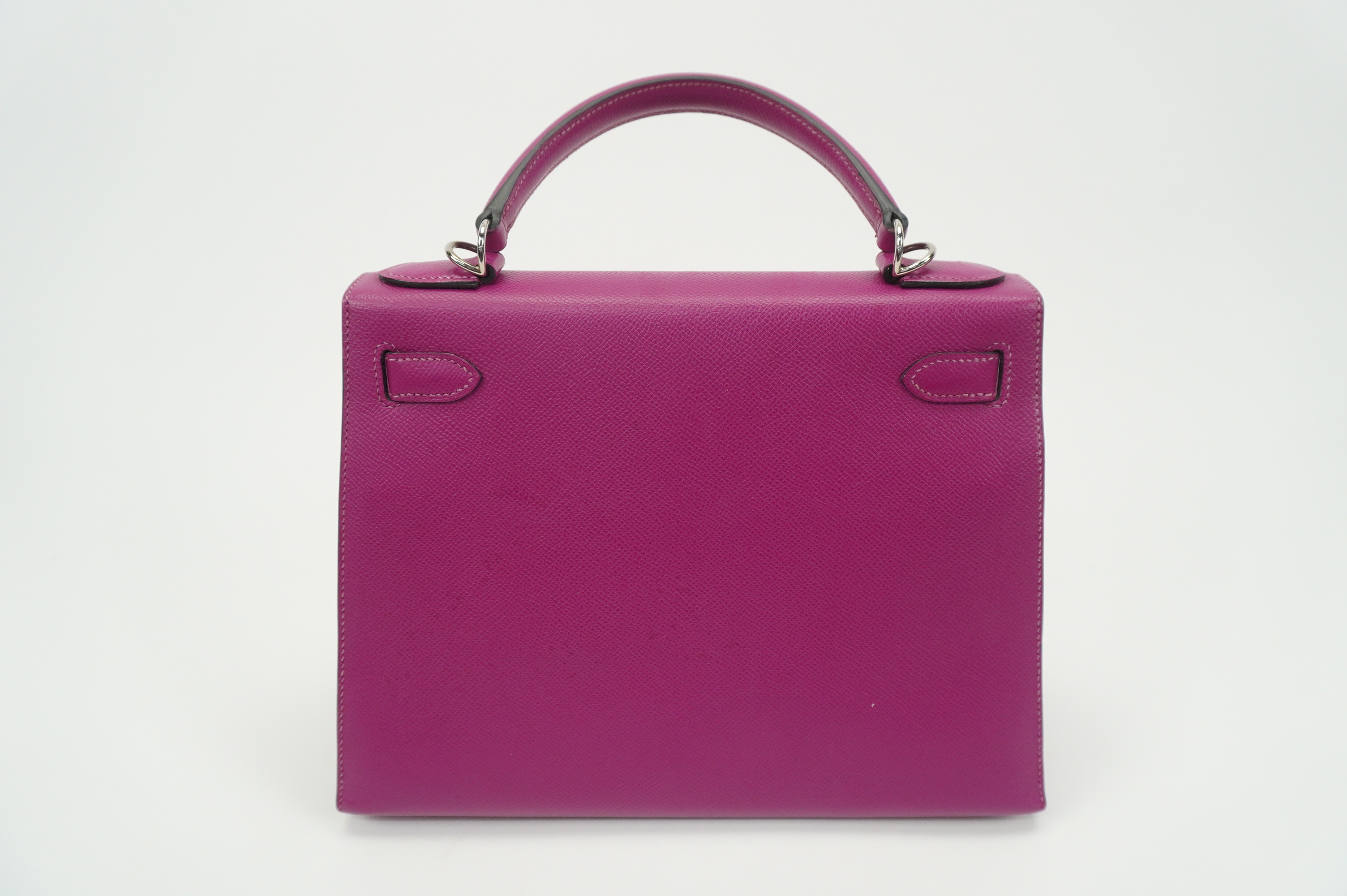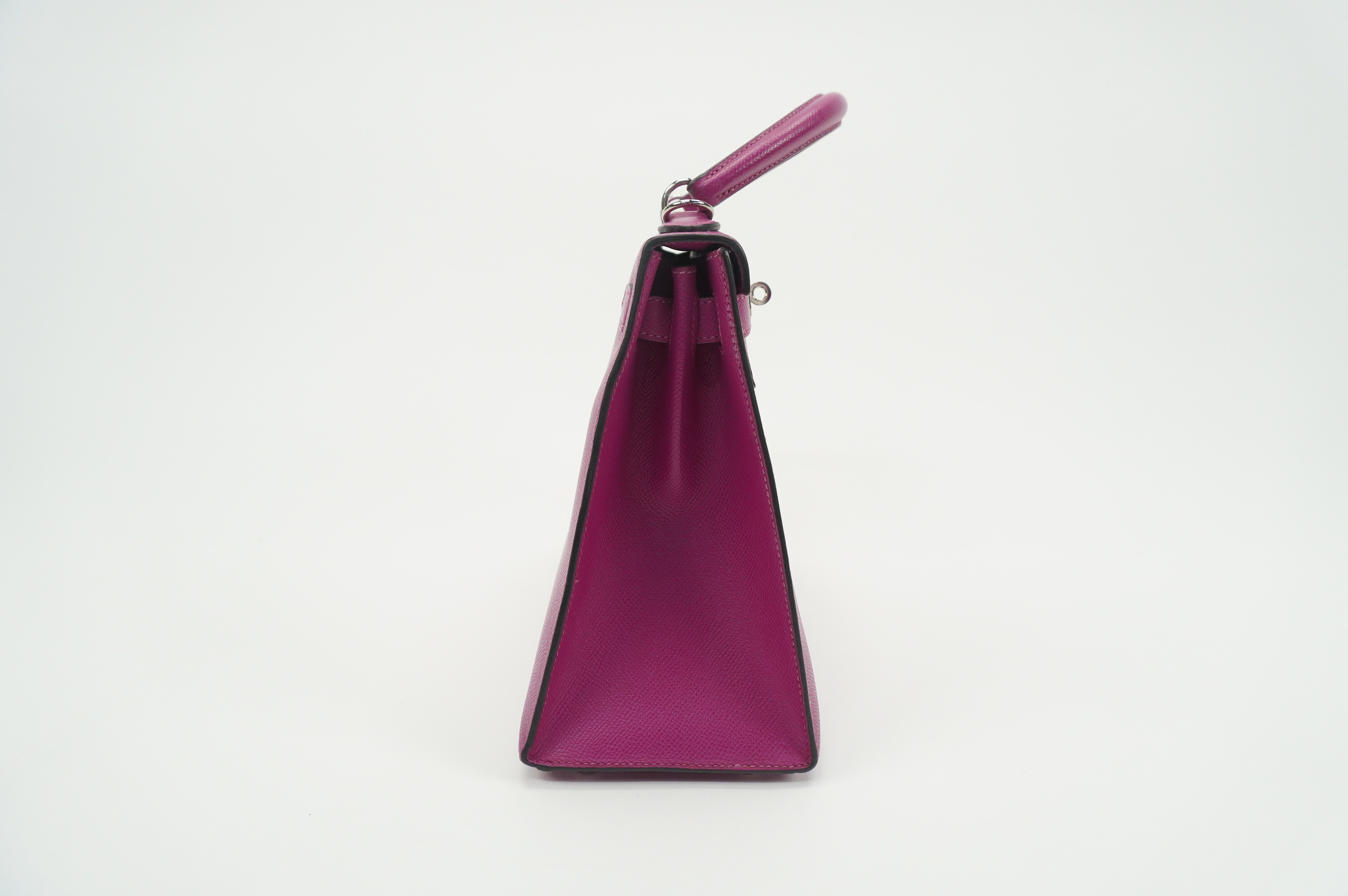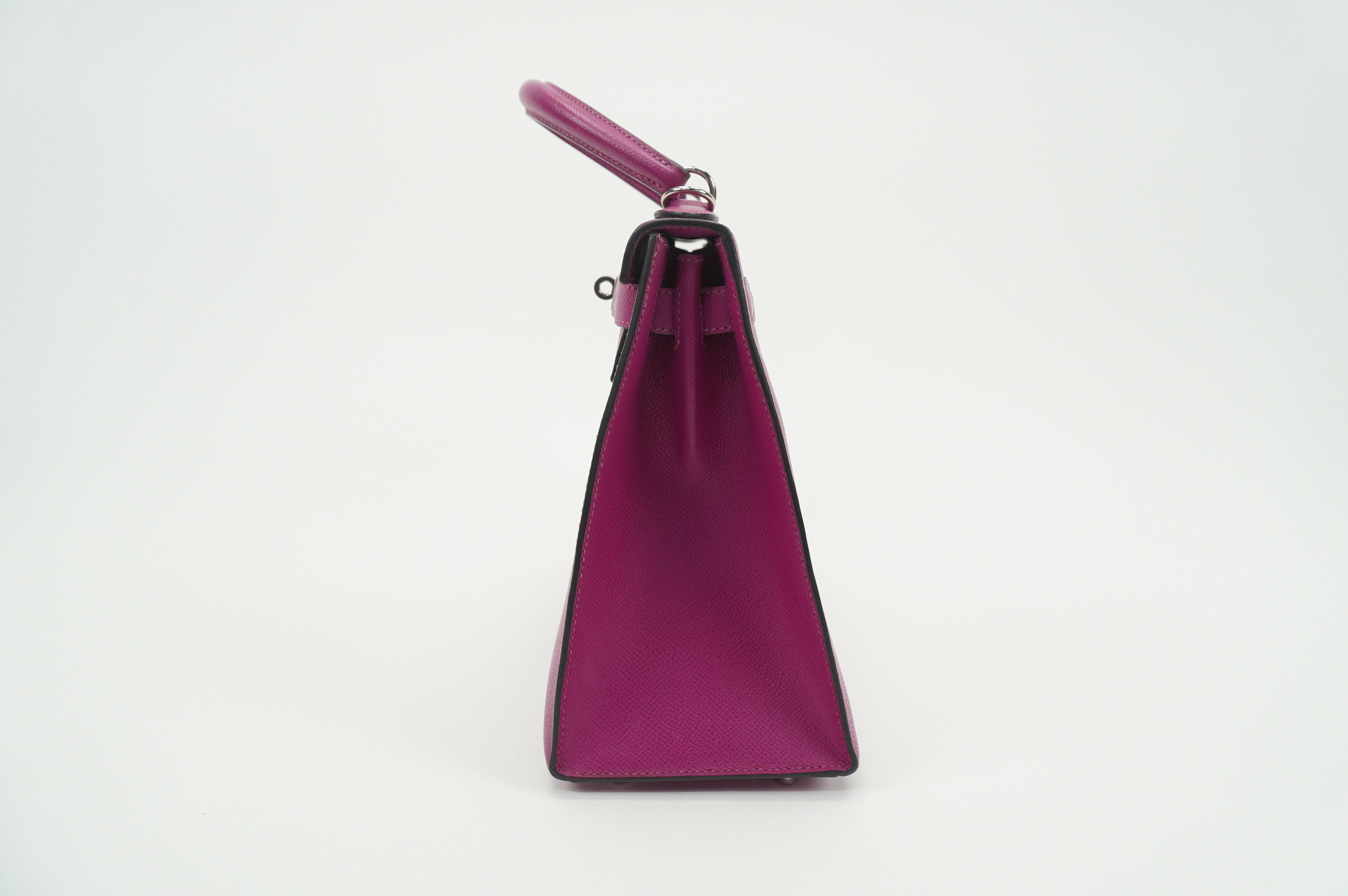 An icon of timeless elegance, the Hermès Kelly 28 Sellier in Rose Pourpre Epsom leather is a striking blend of classic craftsmanship and modern sophistication. Rendered in the coveted Sellier construction, this handbag features crisp, structured lines that beautifully showcase the rich depth of the Rose Pourpre hue—a refined, jewel-toned purple with subtle warmth.