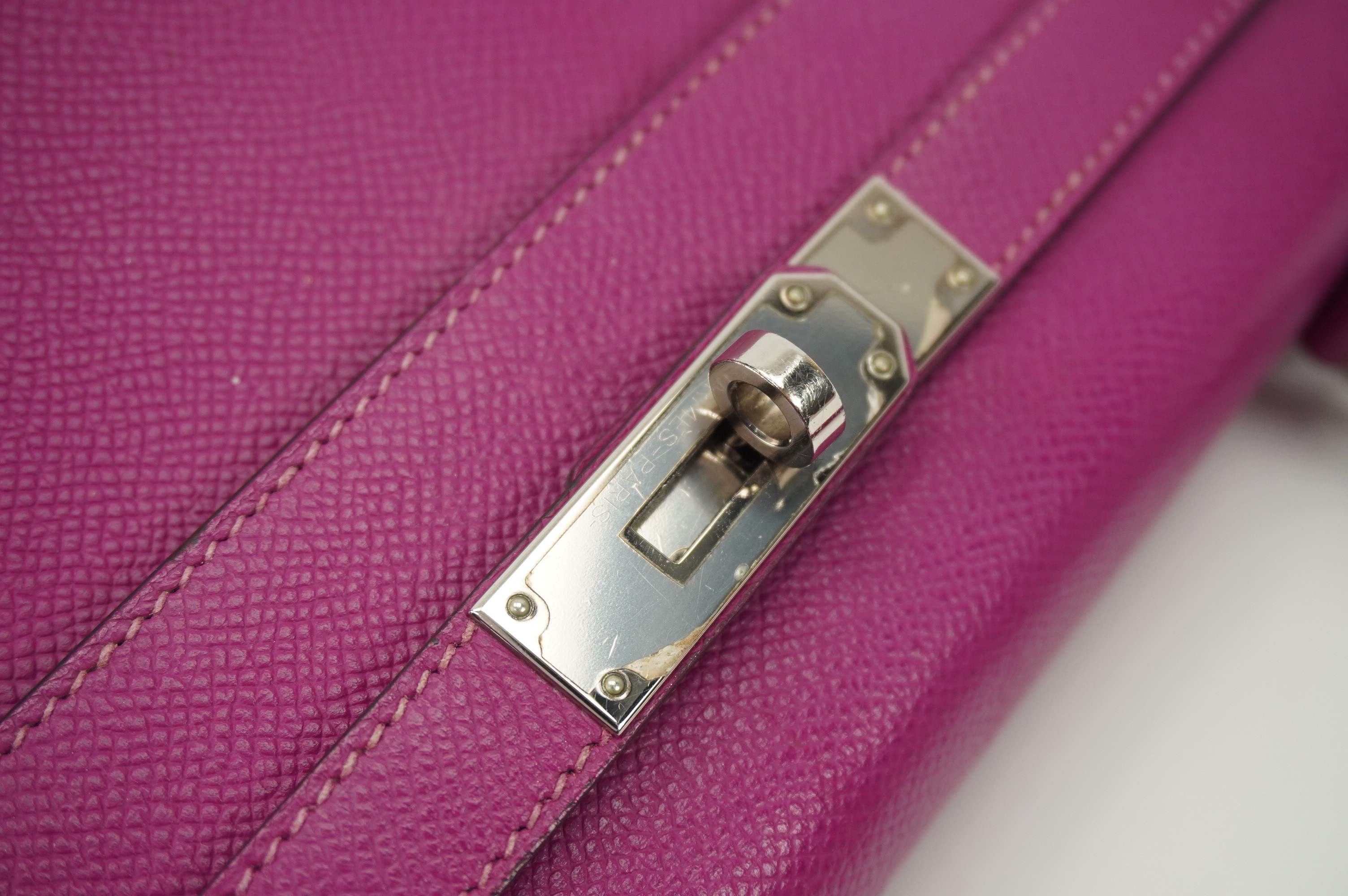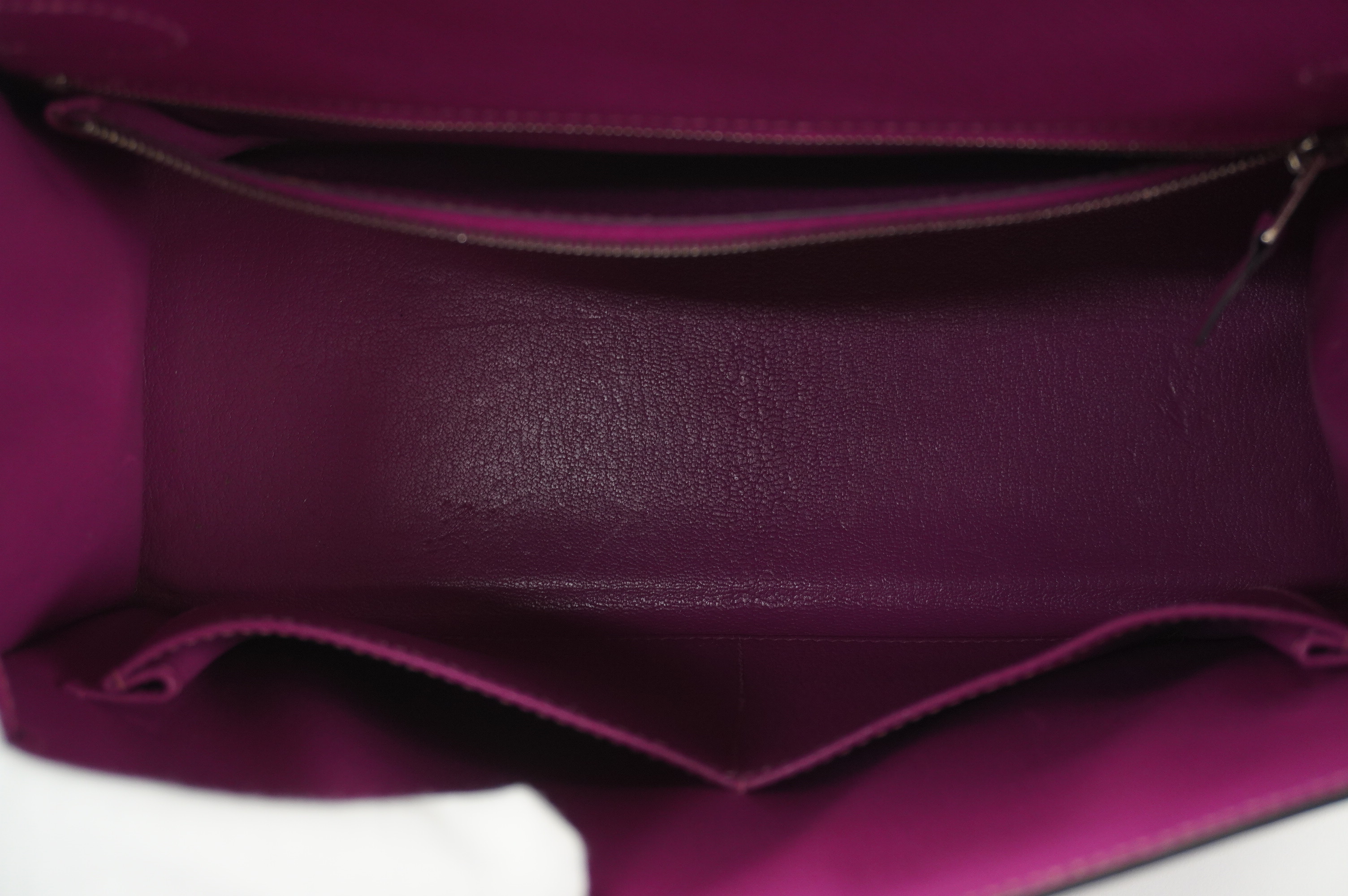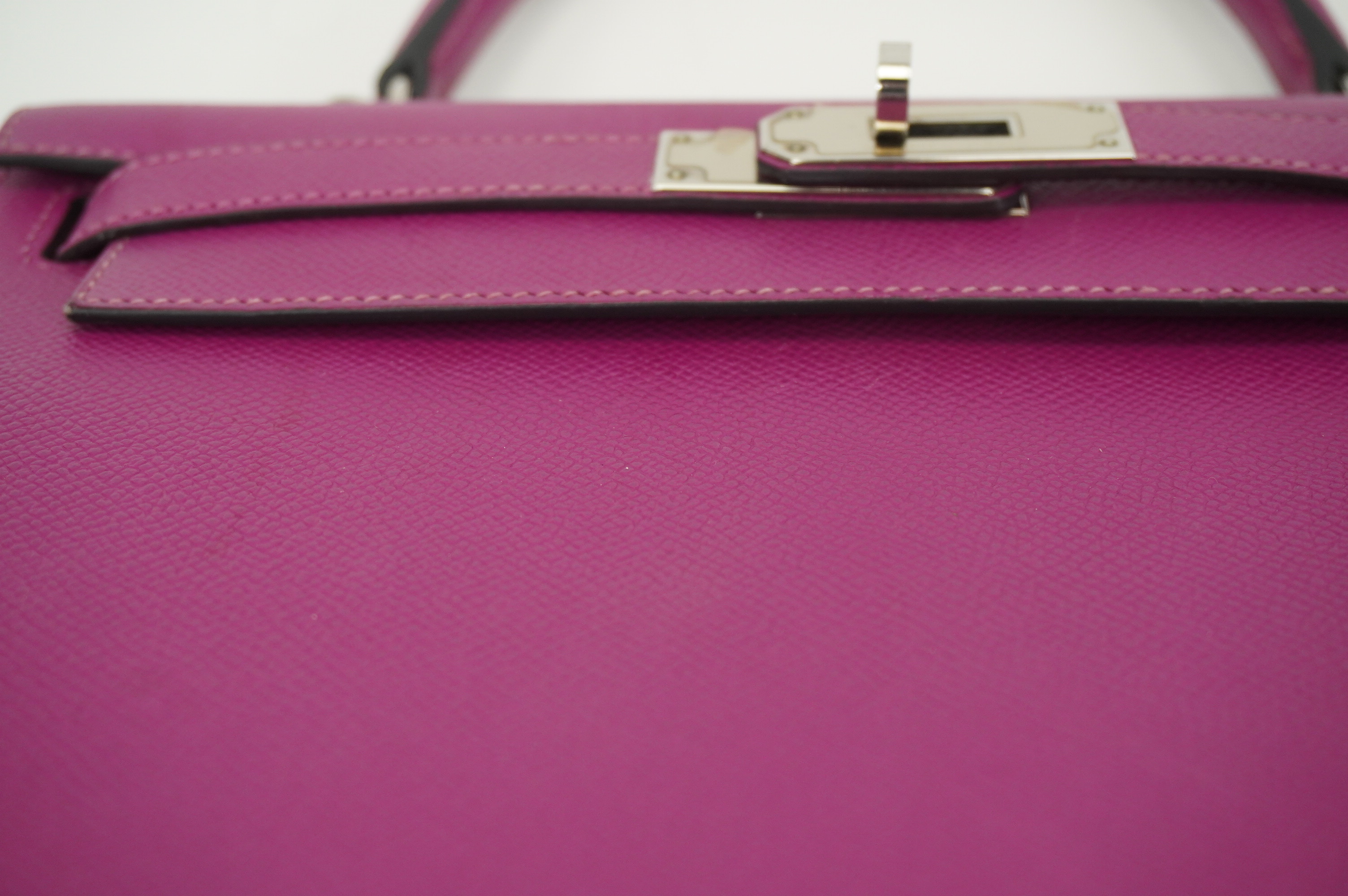 An icon of timeless elegance, the Hermès Kelly 28 Sellier in Rose Pourpre Epsom leather is a striking blend of classic craftsmanship and modern sophistication. Rendered in the coveted Sellier construction, this handbag features crisp, structured lines that beautifully showcase the rich depth of the Rose Pourpre hue—a refined, jewel-toned purple with subtle warmth.