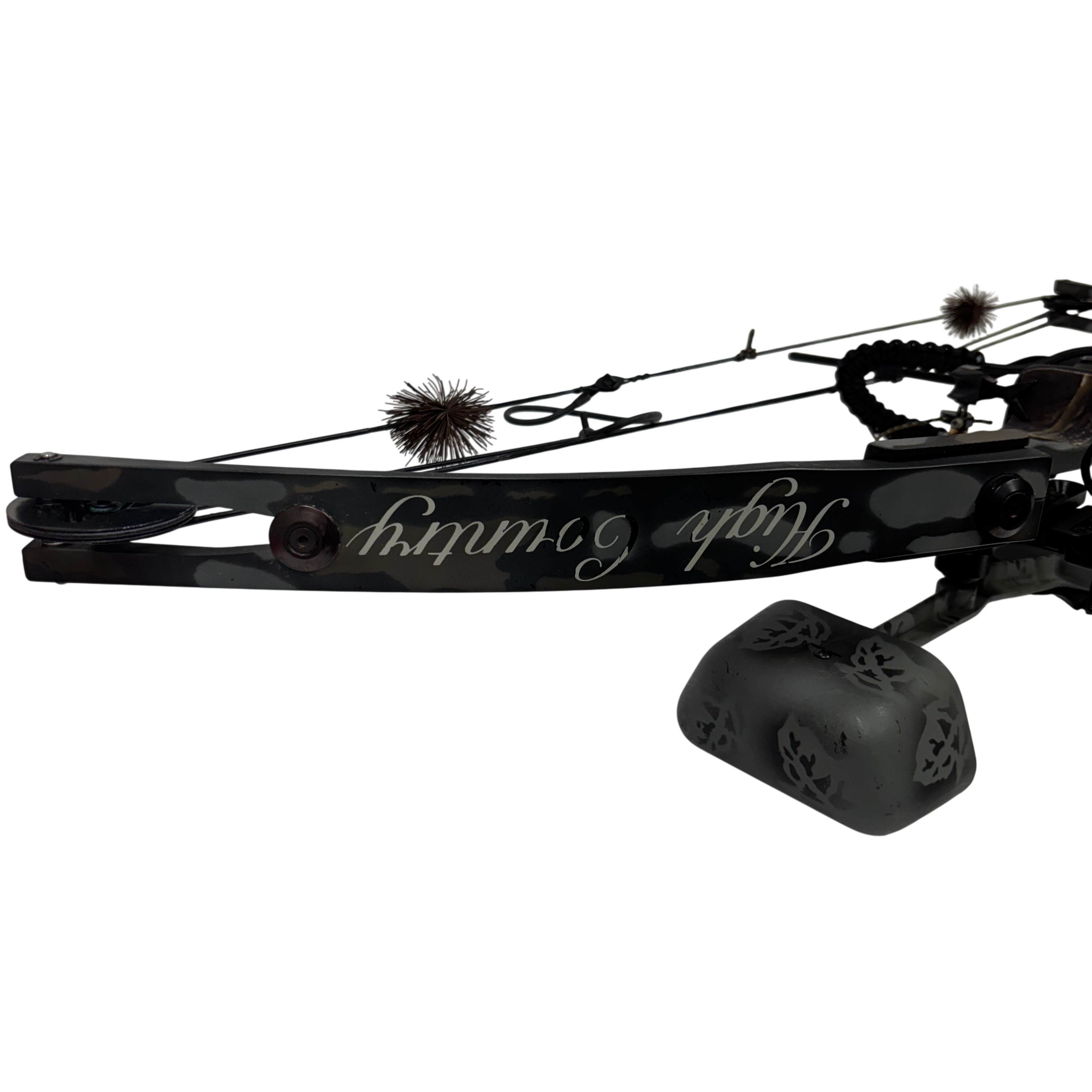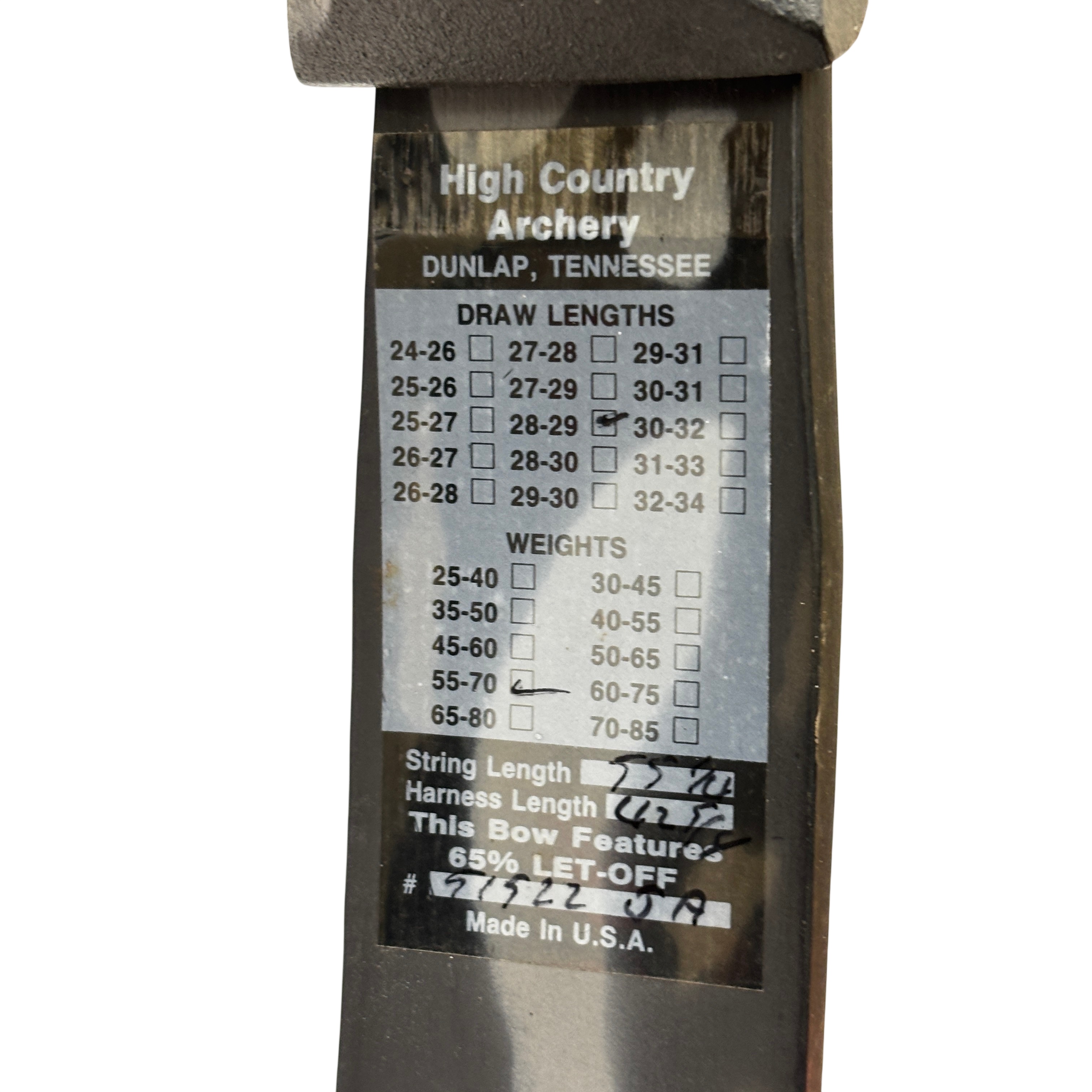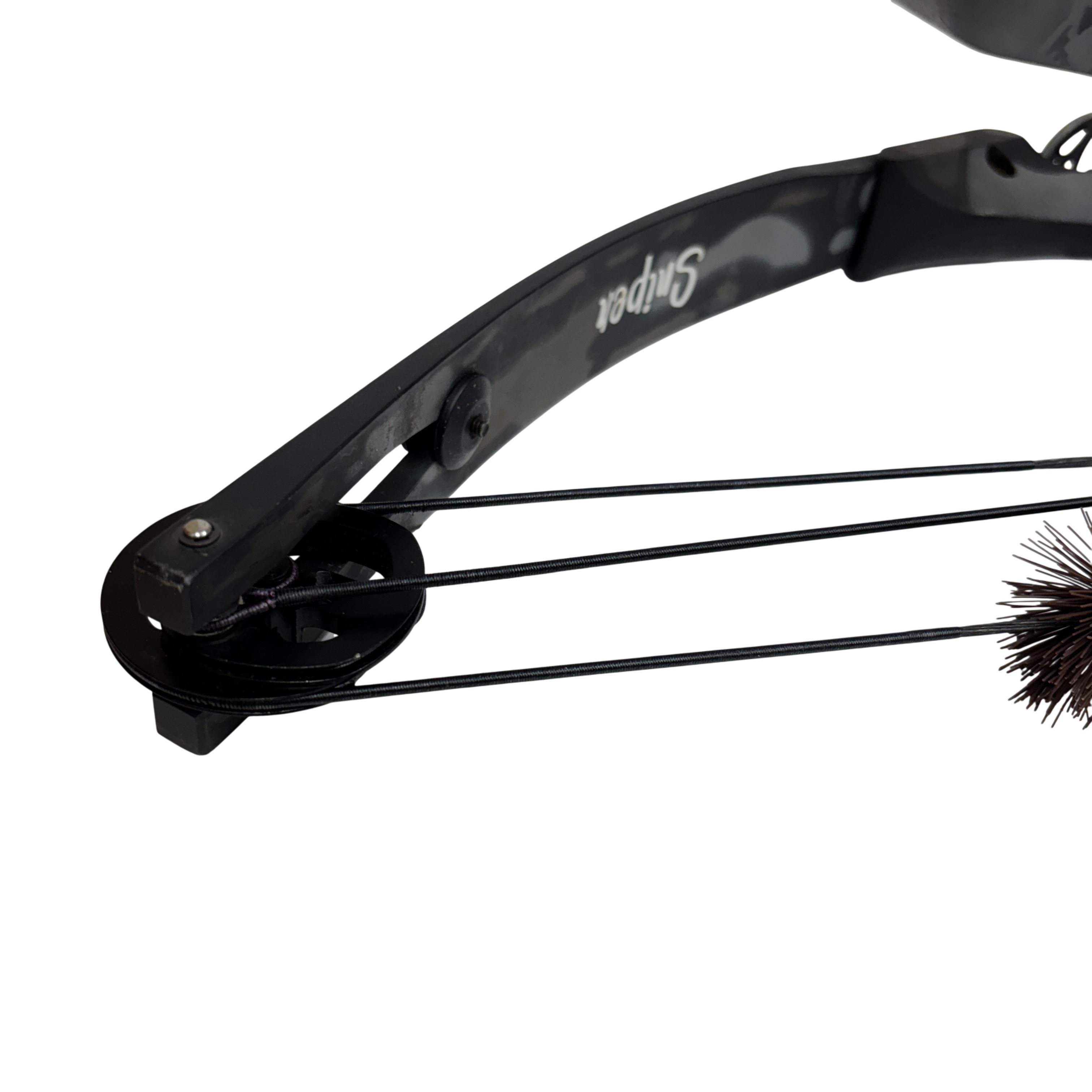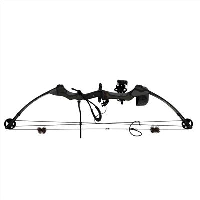 The High Country Sniper Bow with Quiver is a compound bow designed for archery enthusiasts seeking precision and power. Featuring an adjustable draw length of 28-29 inches and a draw weight range of 55-70 pounds, this bow offers a 65% let-off to reduce holding effort at full draw. Made in the USA, it comes with an attached quiver for convenient arrow storage. Ideal for hunting or target shooting, this bow combines durability with performance in a sleek black and gray camouflage finish.
