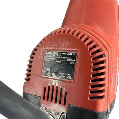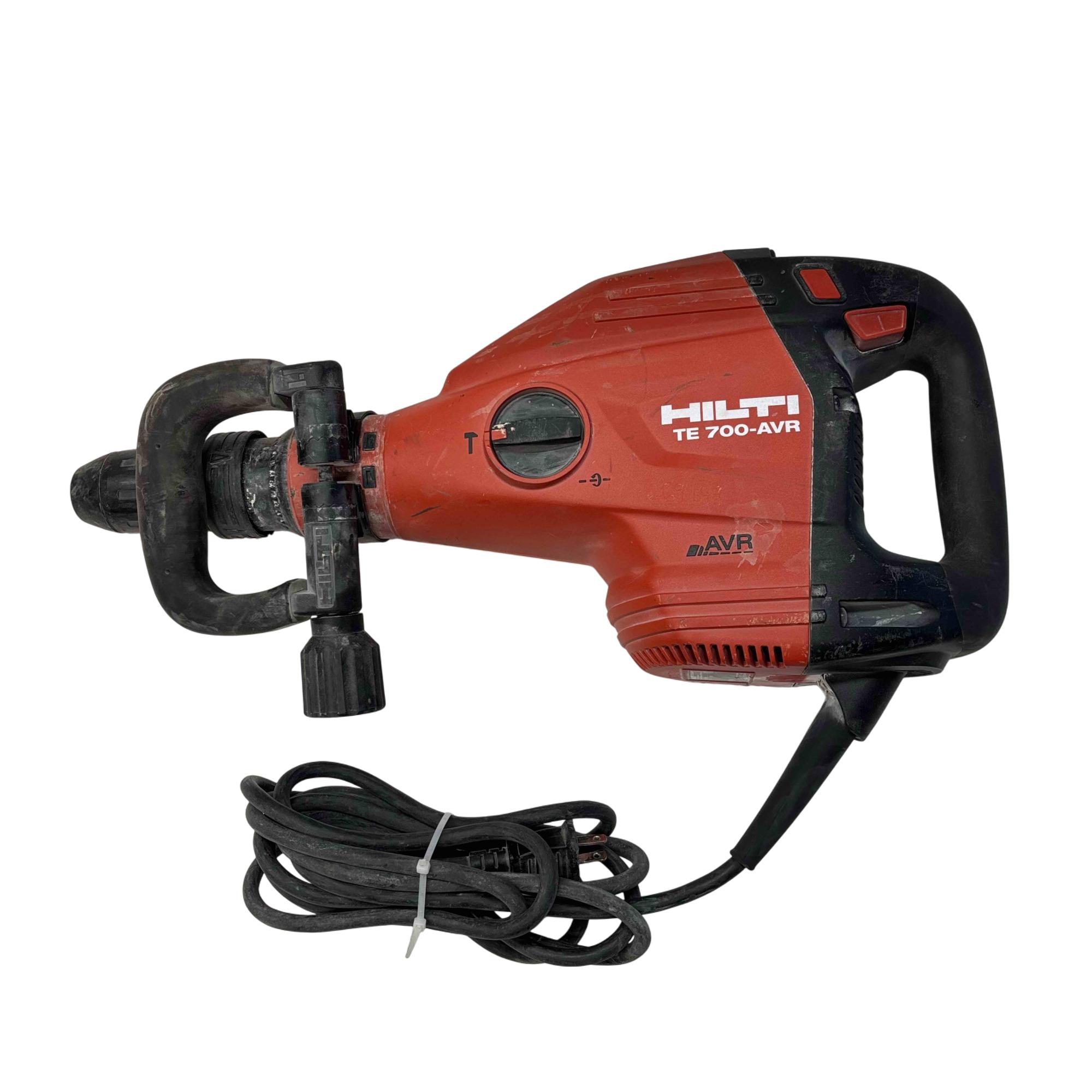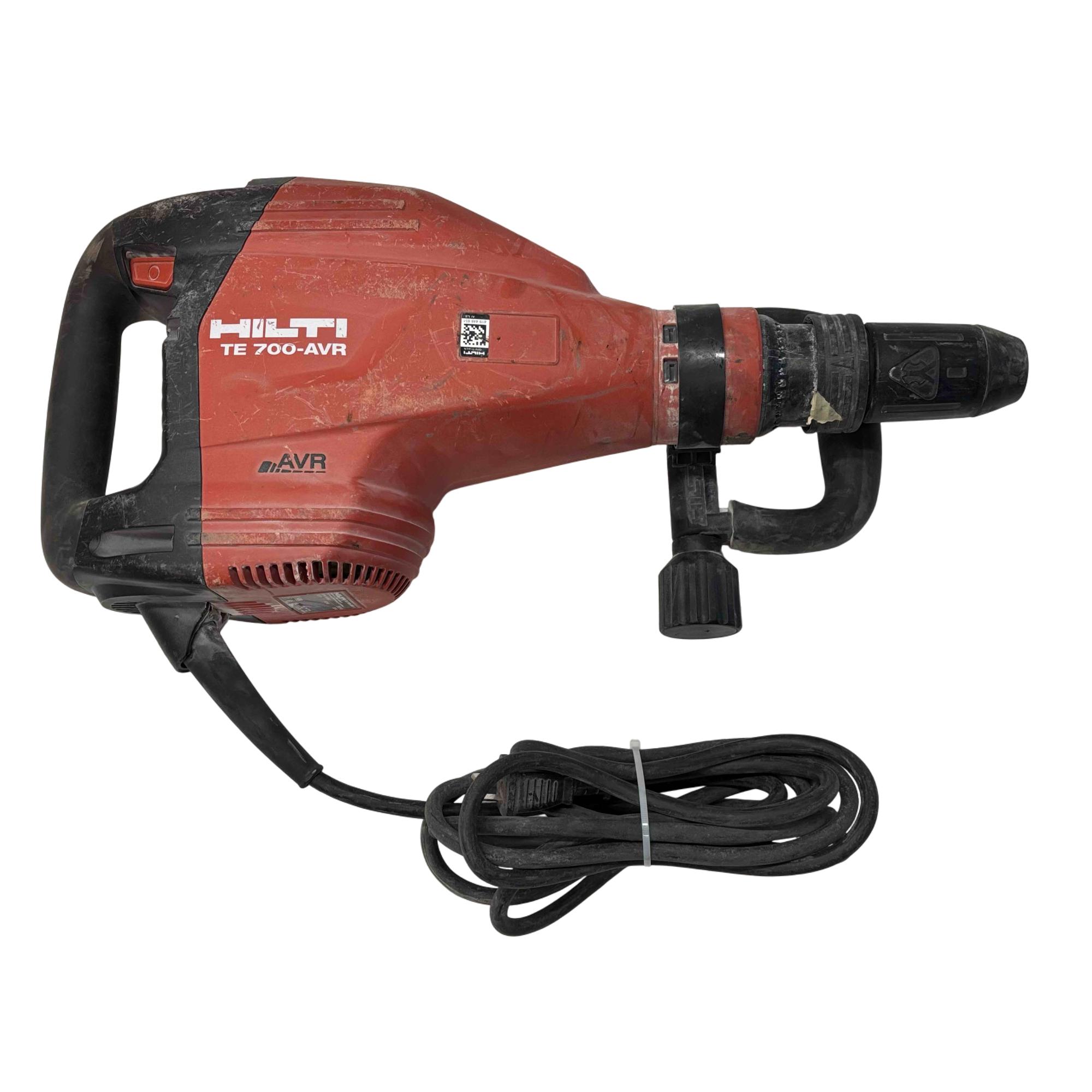 Hilti TE 700-AVR SDS-Max Demolition Hammer delivers powerful 120V, 10.8A performance optimized for heavy-duty demolition tasks. This red and black professional-grade tool features active vibration reduction technology to enhance operator comfort during prolonged use. Designed for efficiency and durability, it excels in breaking concrete and masonry with precision and strength.